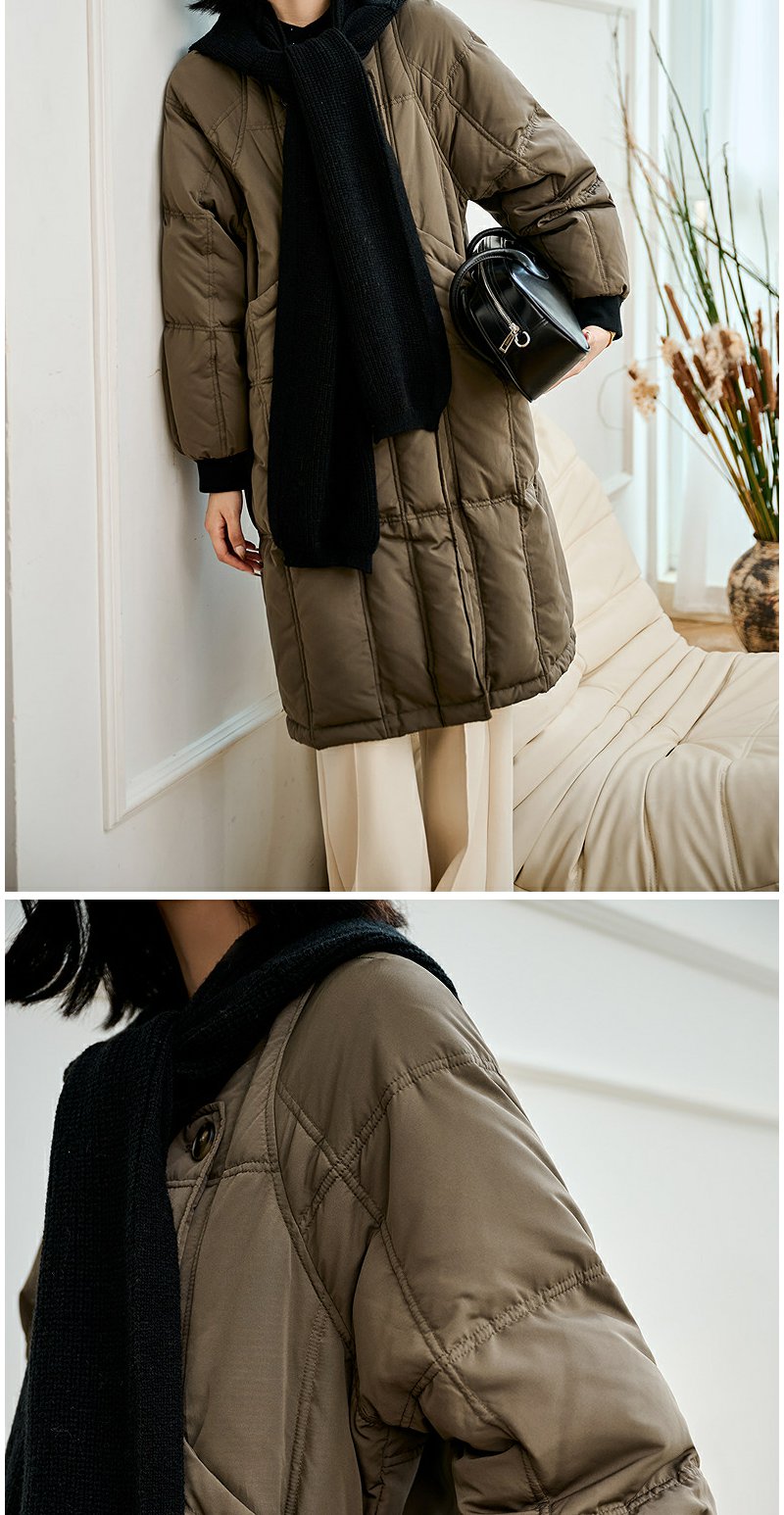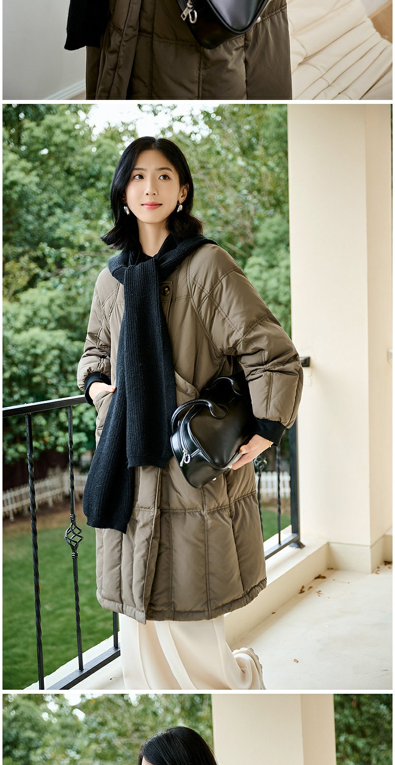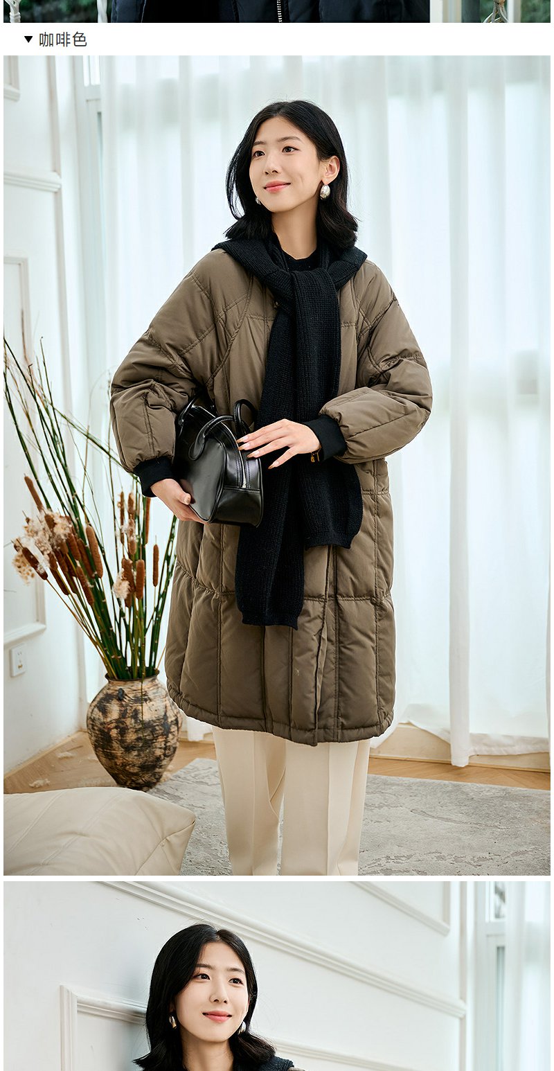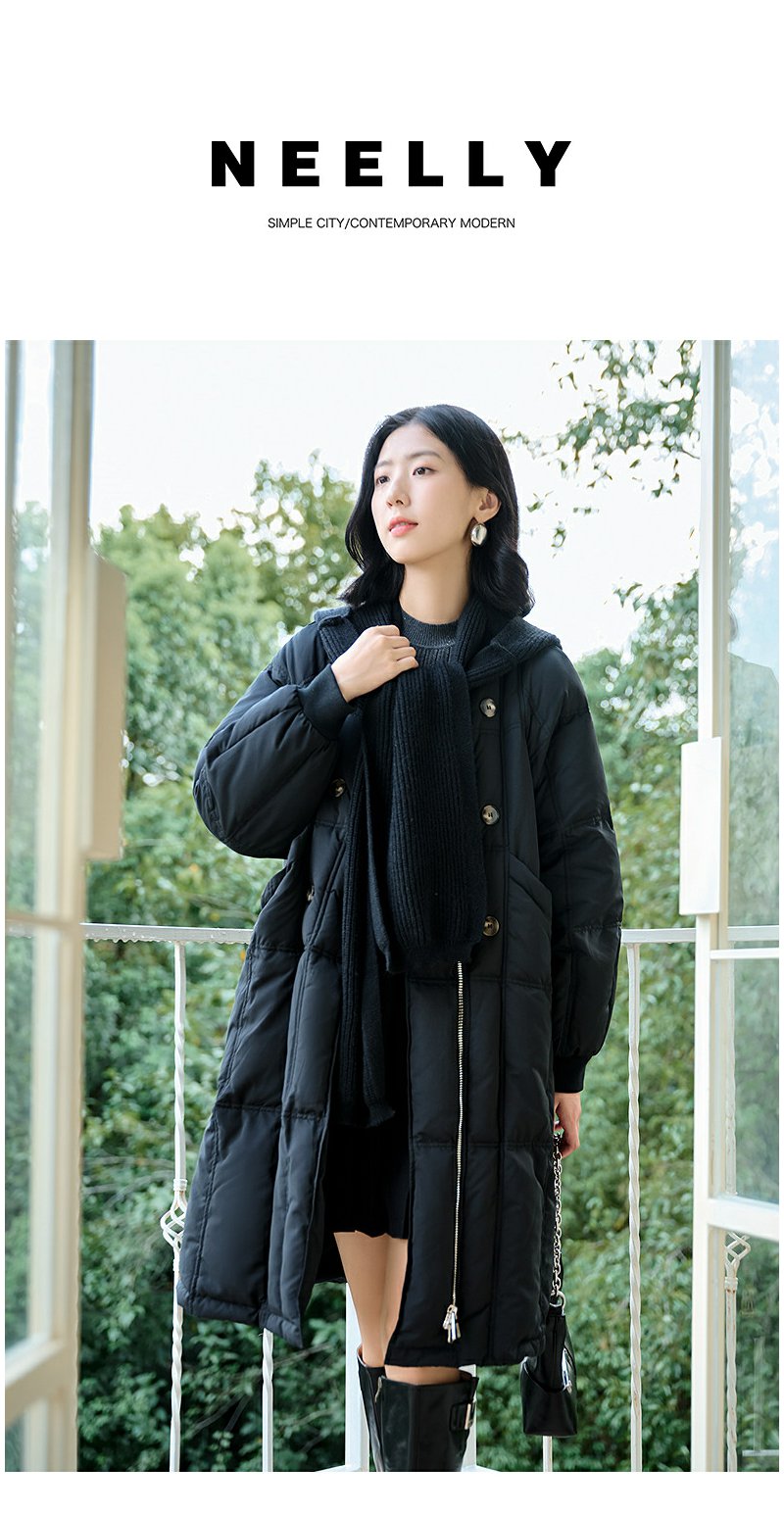NEELLY纳俪商场同款冬季新款通勤简约毛领长款羽绒服女保暖外套N24104L07737