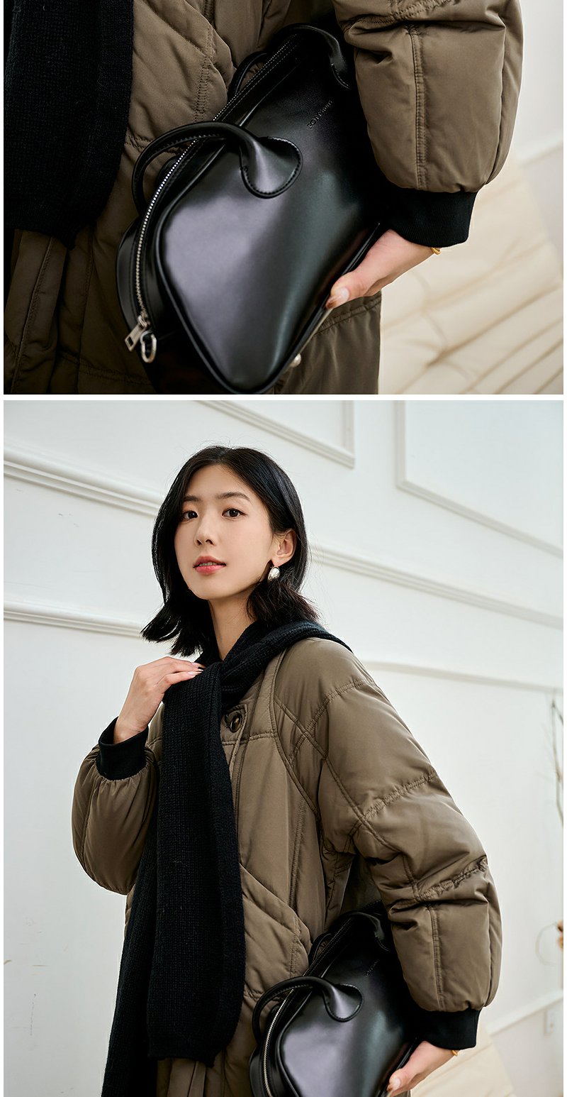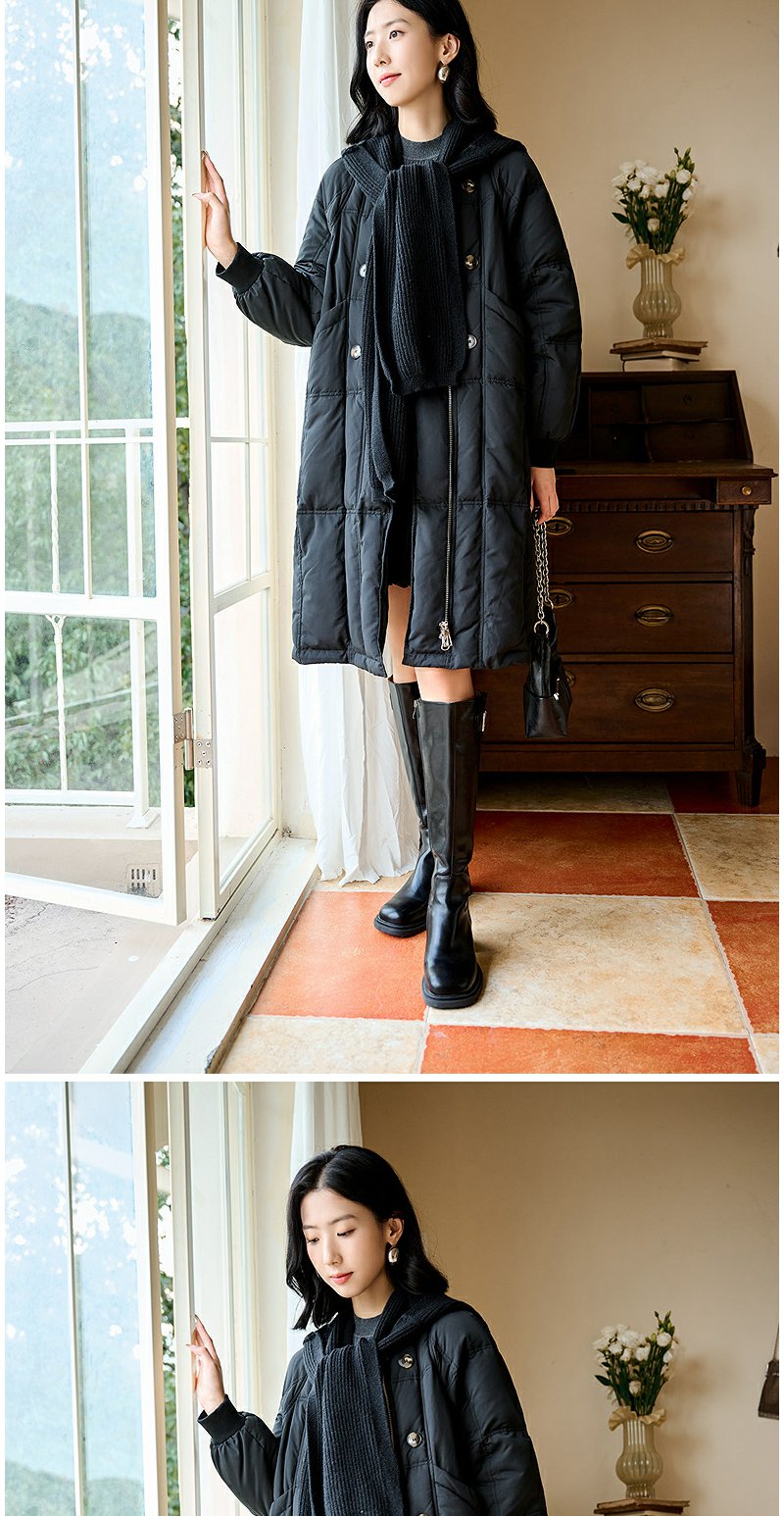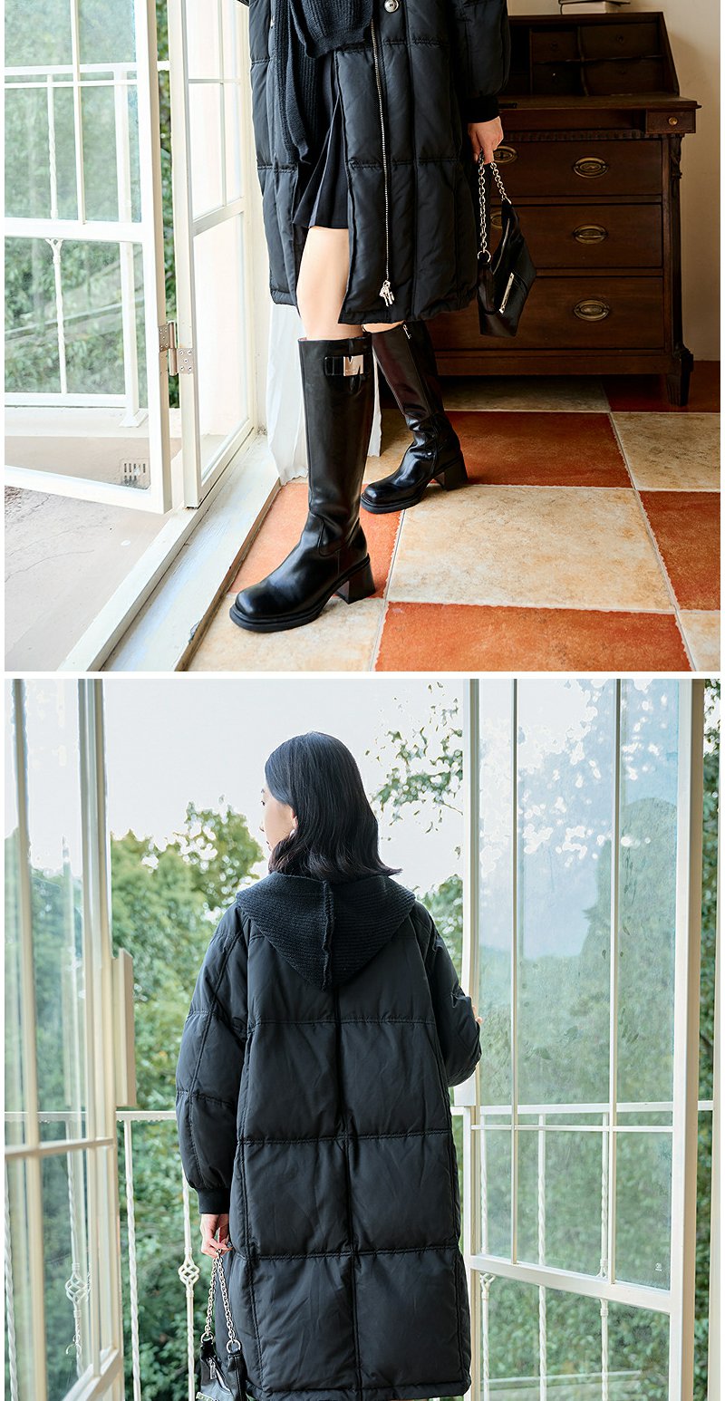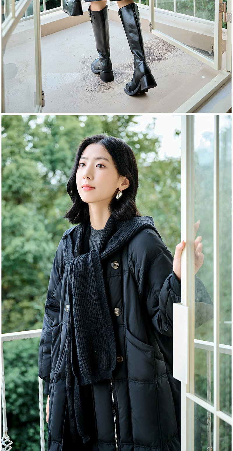 NEELLY纳俪商场同款冬季新款通勤简约毛领长款羽绒服女保暖外套N24104L07737