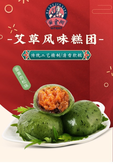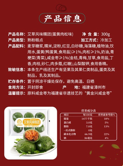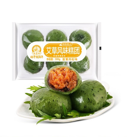 黄金兴艾草风味糕团(蛋黄肉松味)/1包(6粒,共300g)