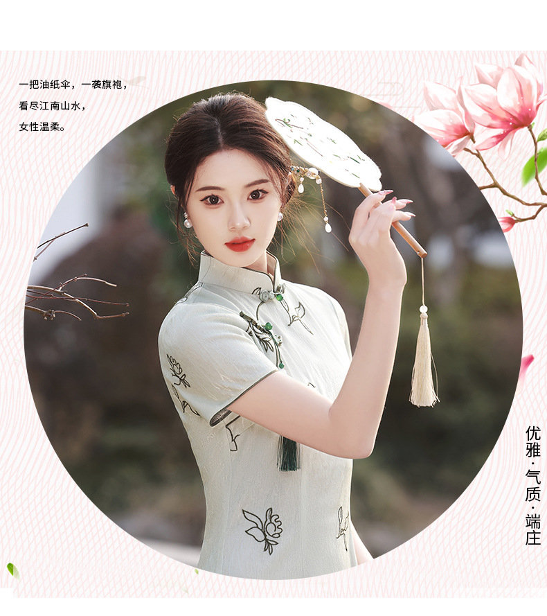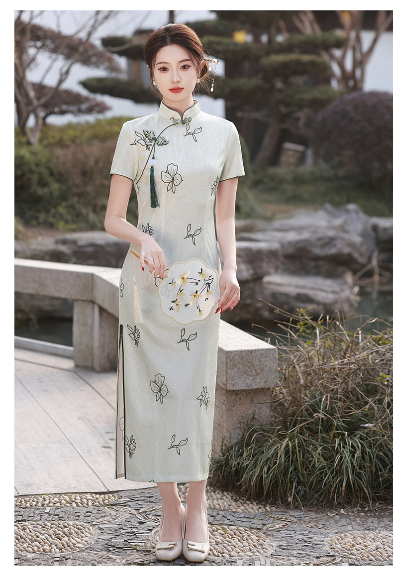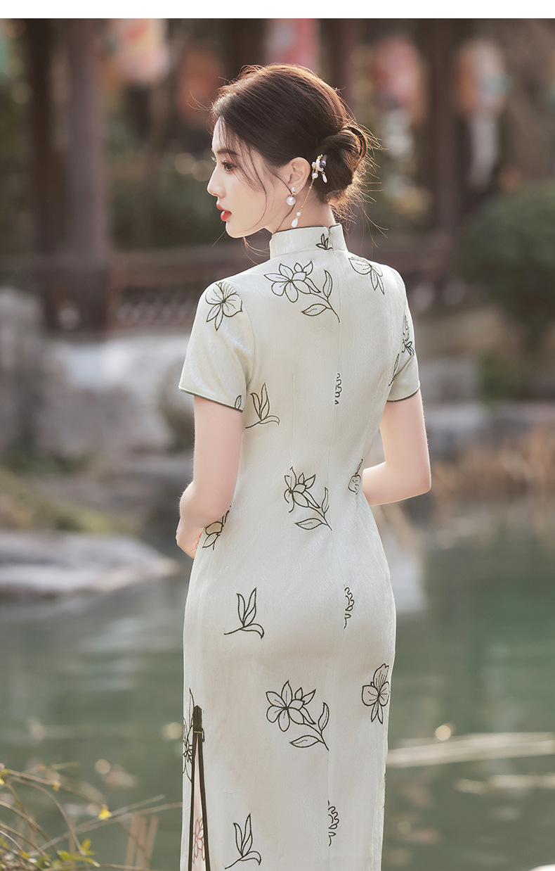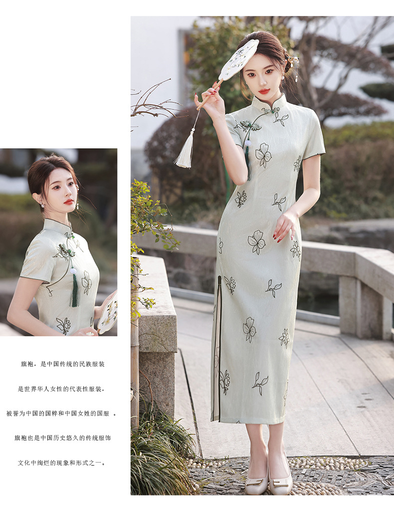气质显瘦温柔大气,多丽丝复合绣花改良长款旗袍MLS-6896