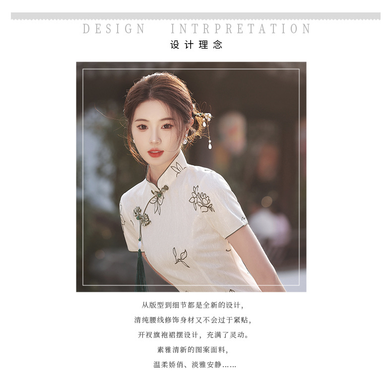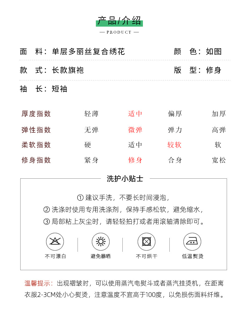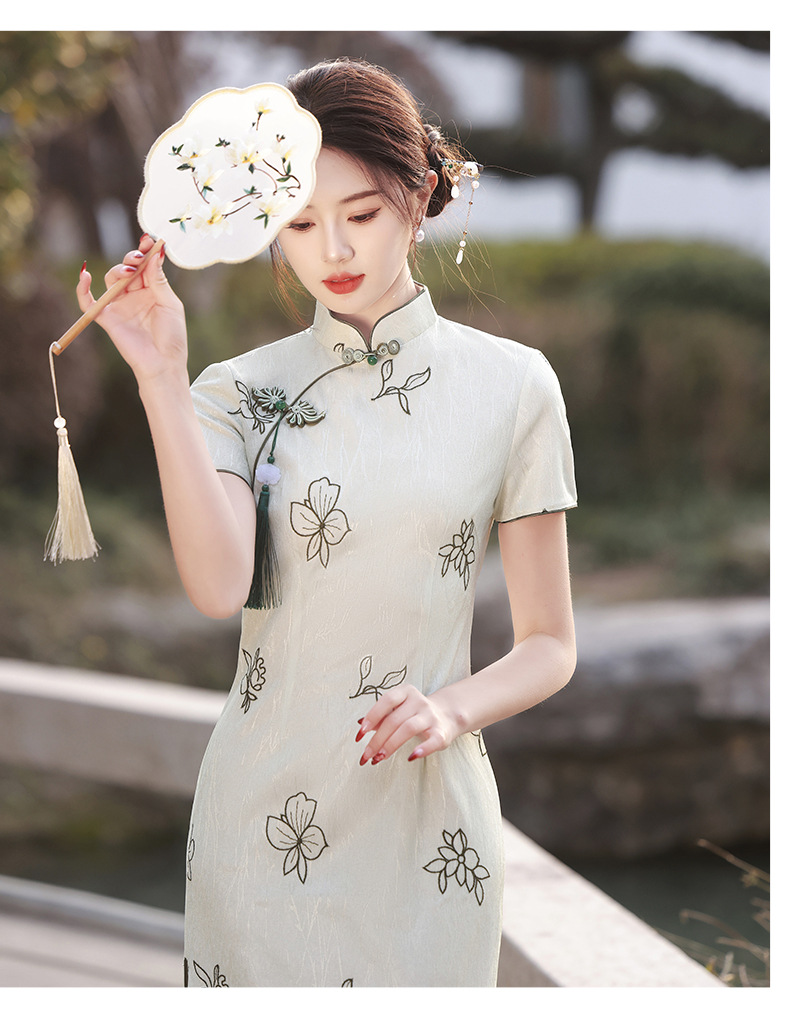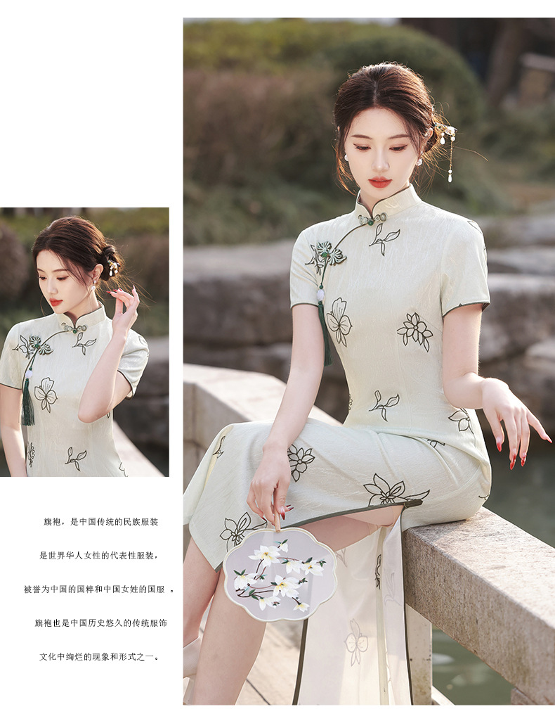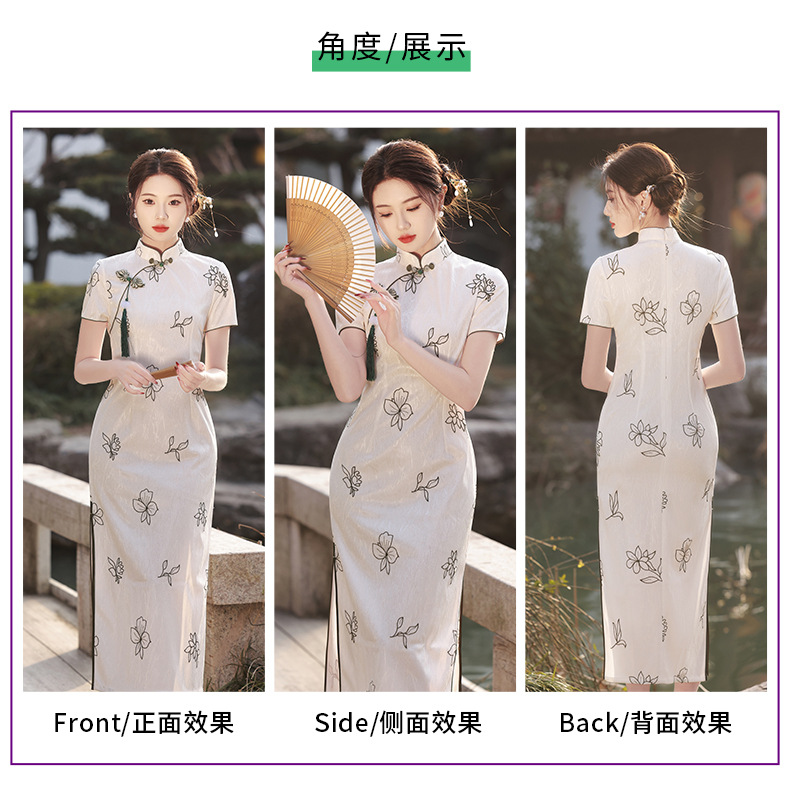 气质显瘦温柔大气,多丽丝复合绣花改良长款旗袍MLS-6896