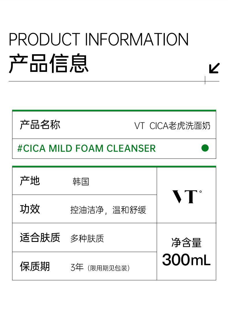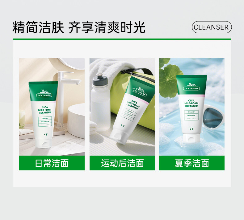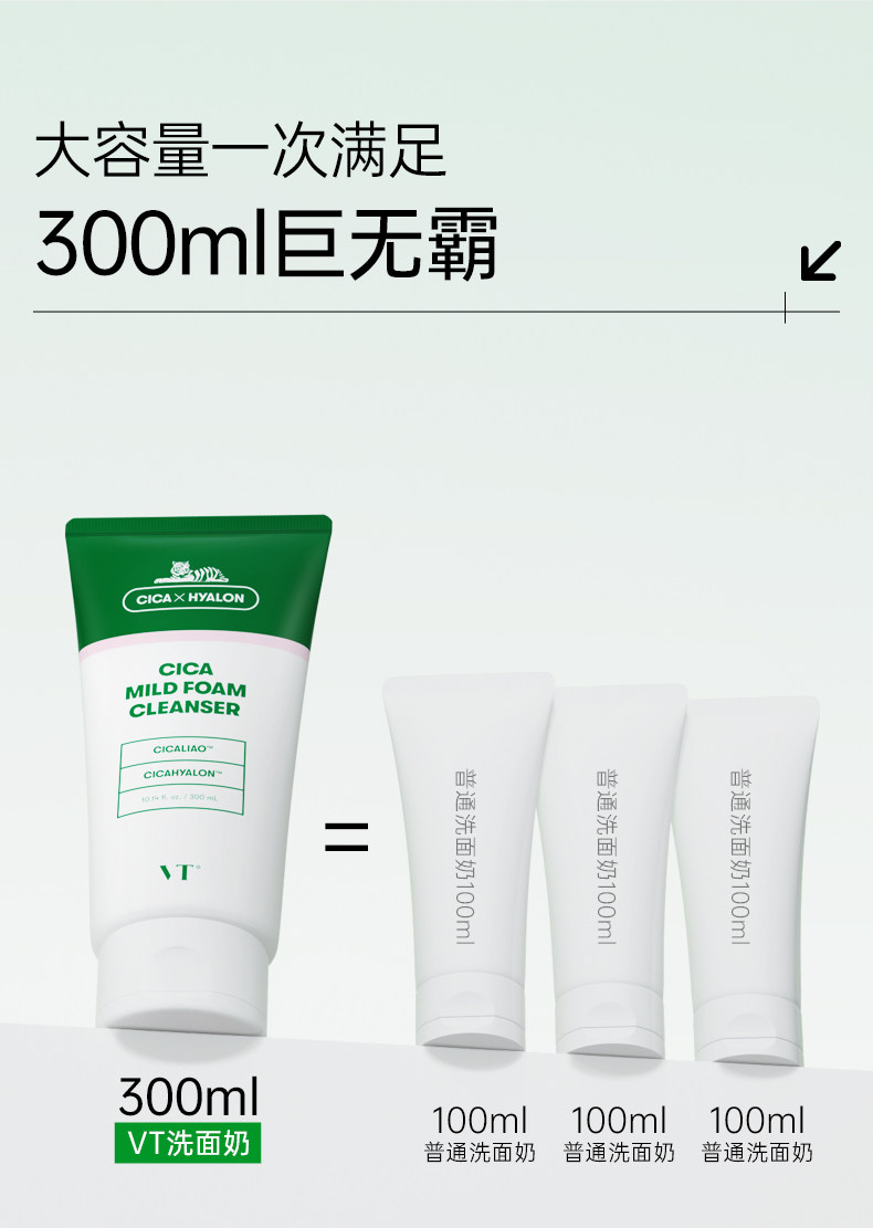 [1支顶3支] VT老虎洗面奶积雪草温和清洁舒缓洁面乳保湿补水改善干燥护肤控油