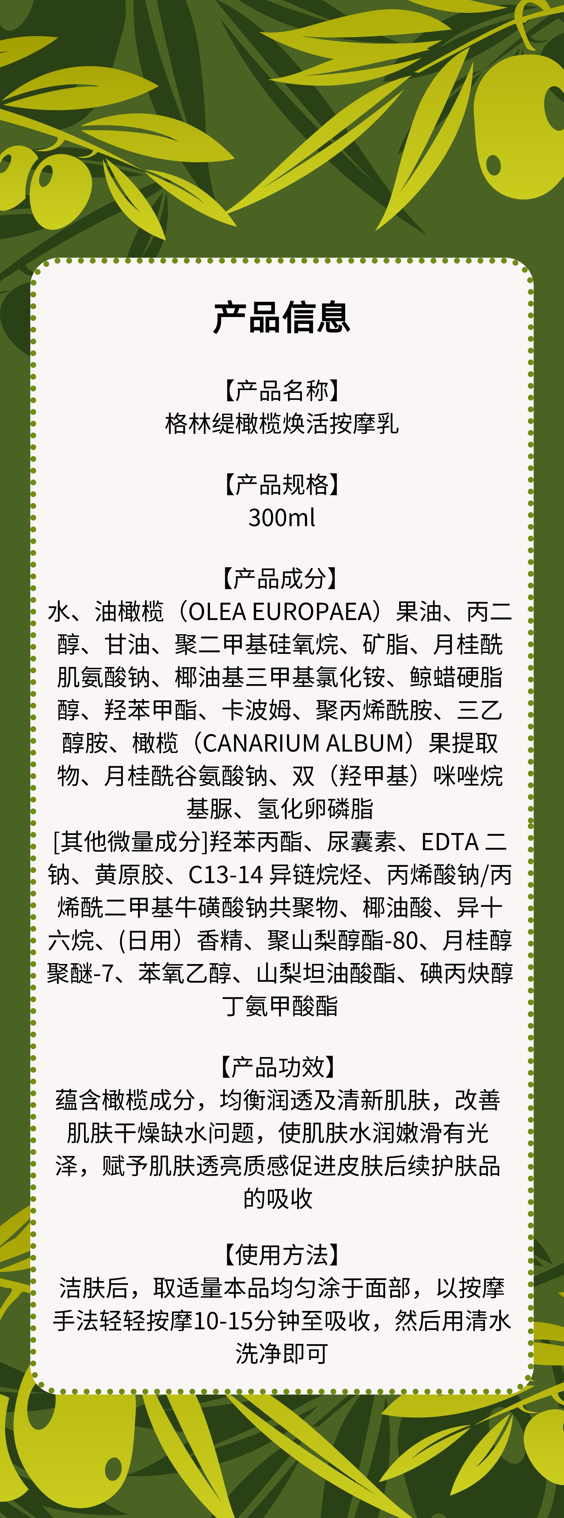 沙龙丨橄榄·焕活按摩乳300ml(原润泽按摩乳)(按摩膏)【格林缇】