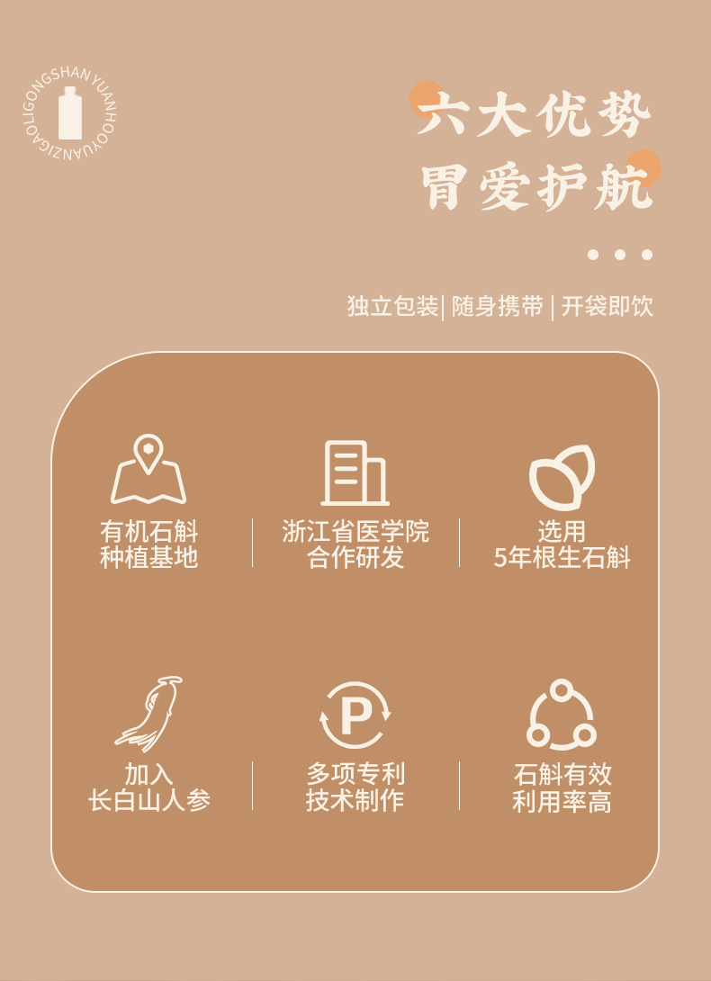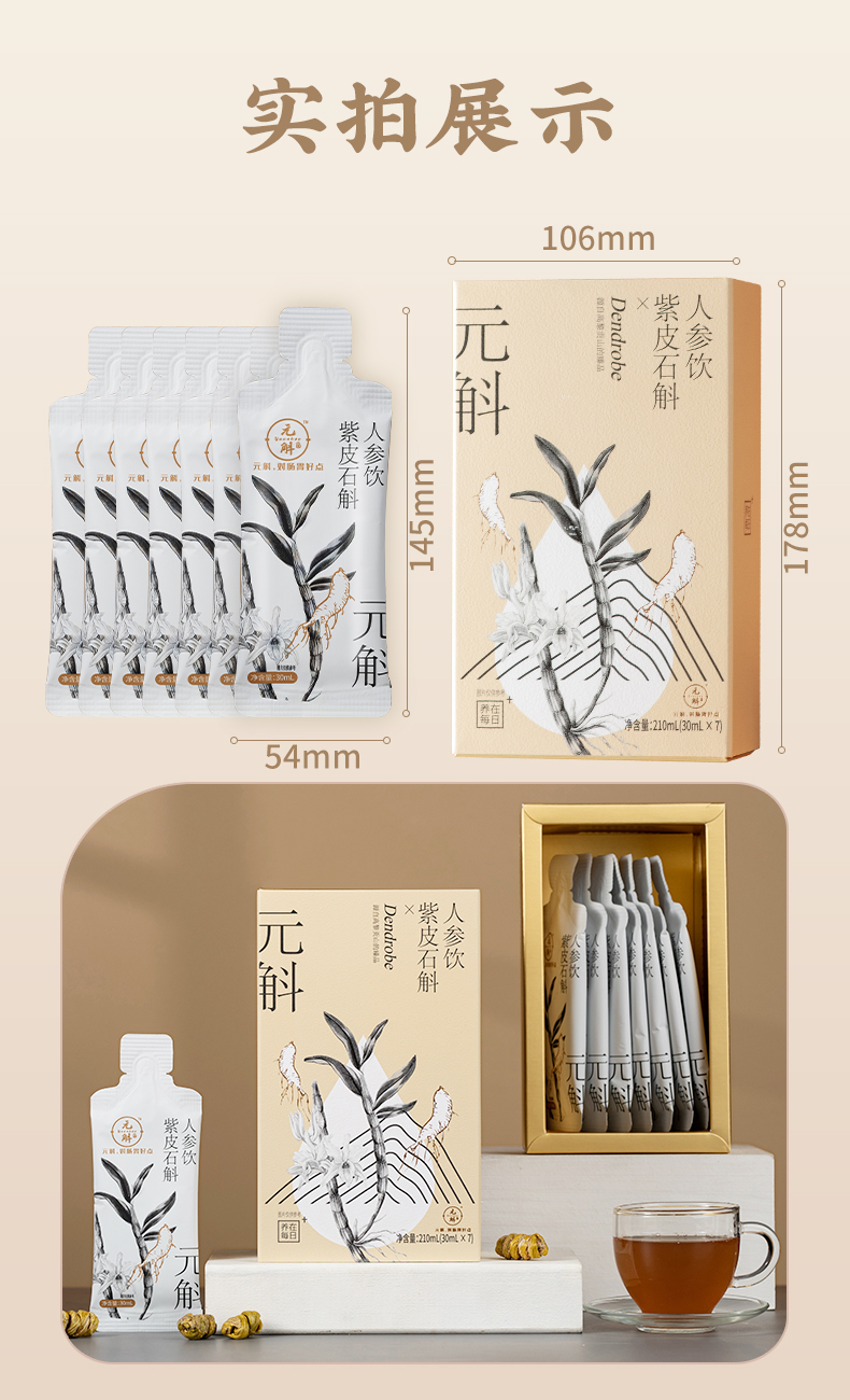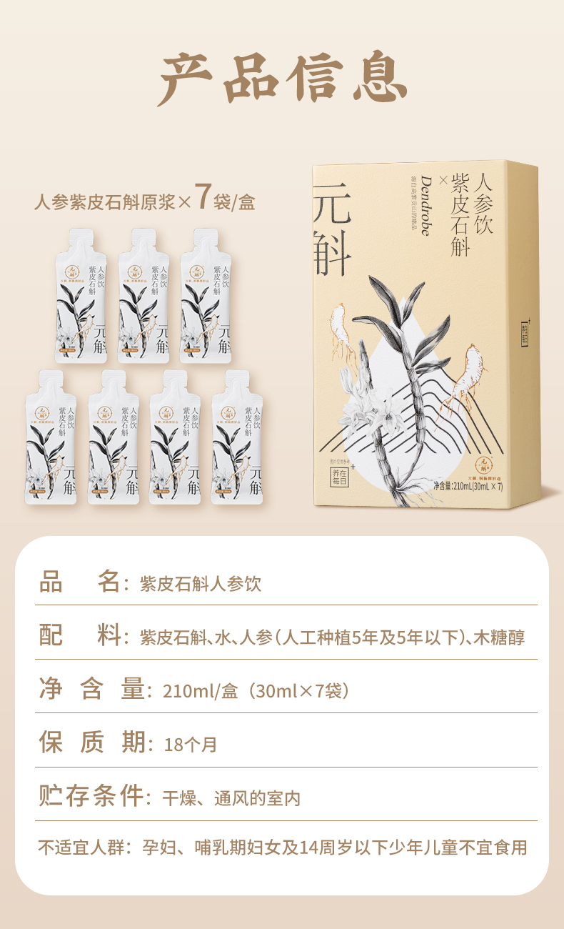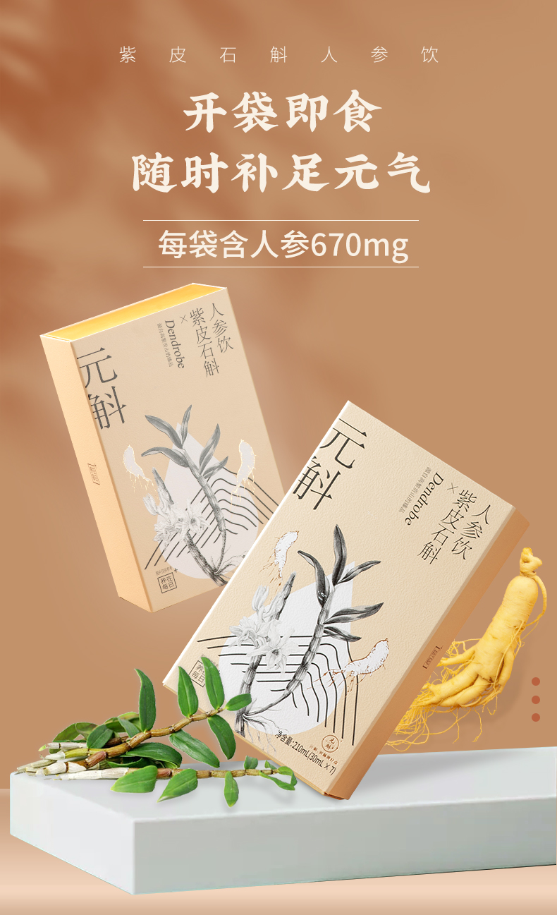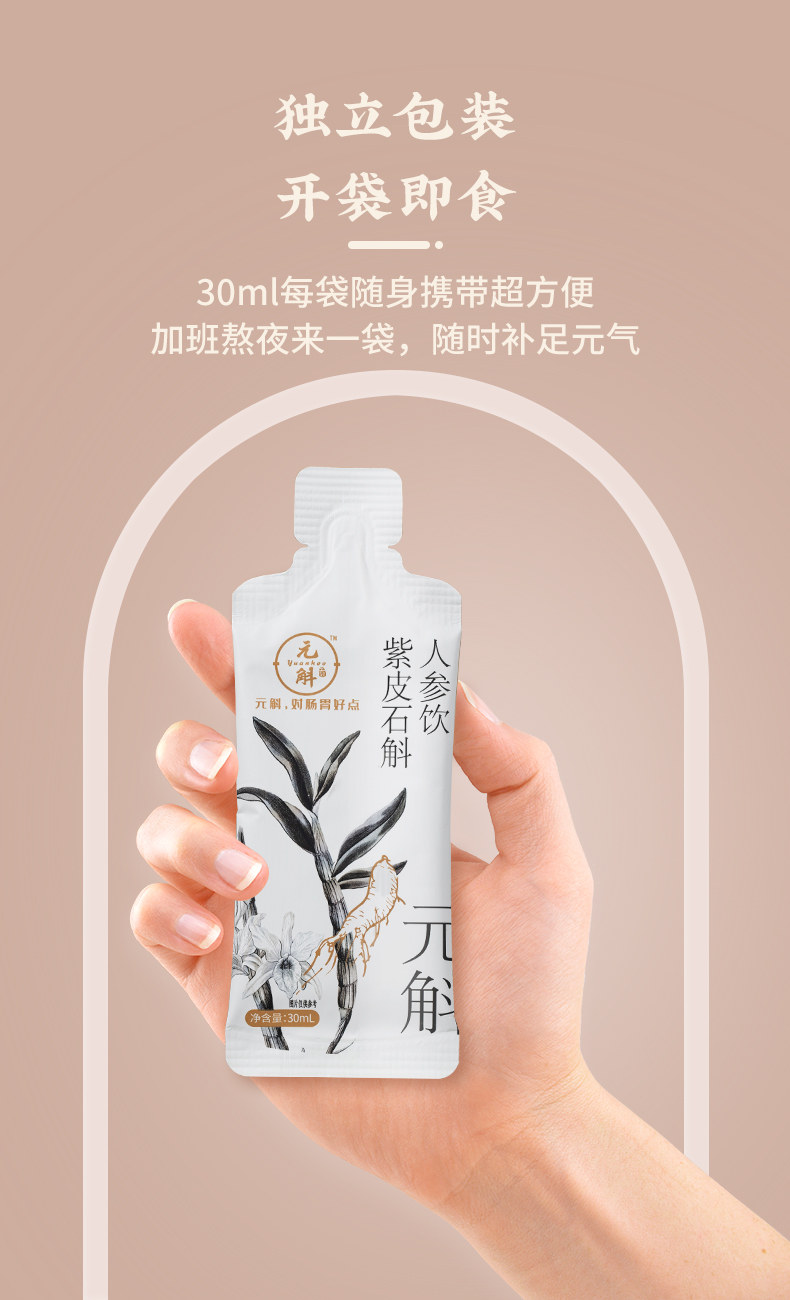 开袋即食 随时补足元气 紫皮石斛人参饮 30ml*7袋/盒