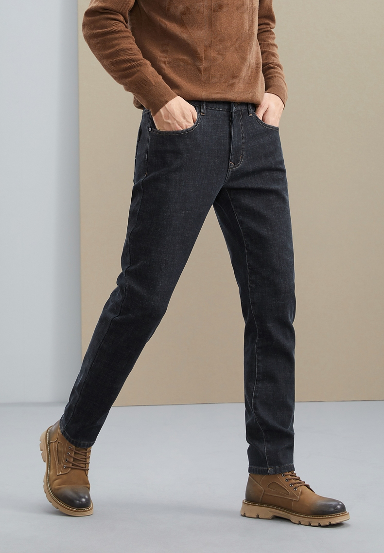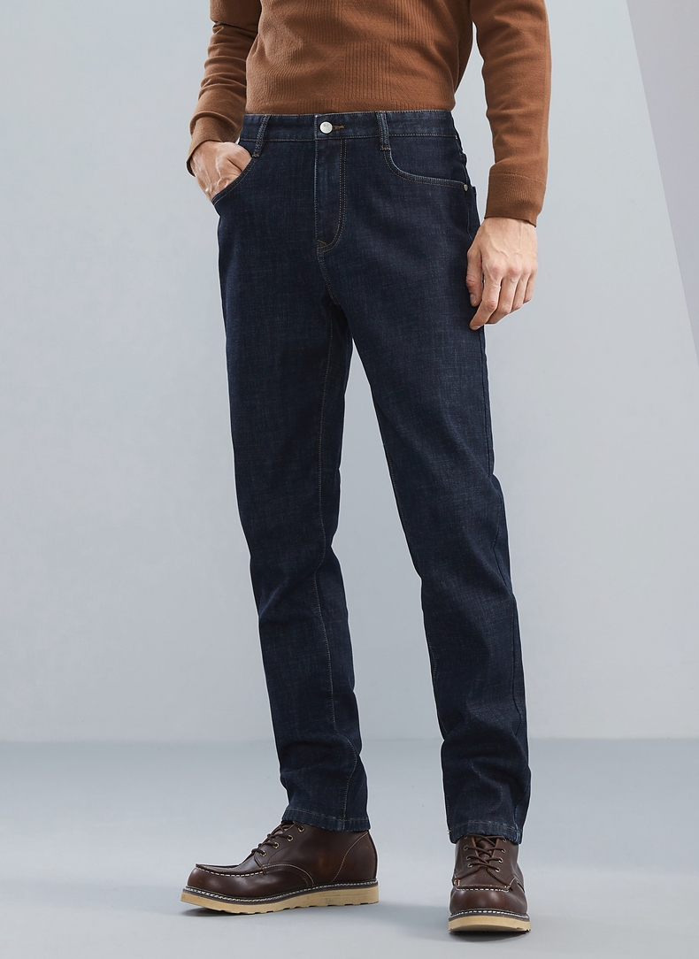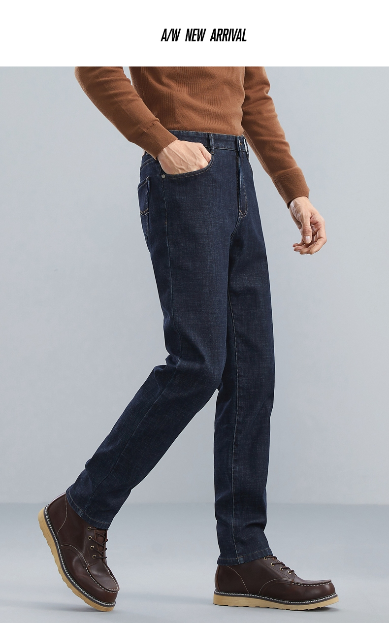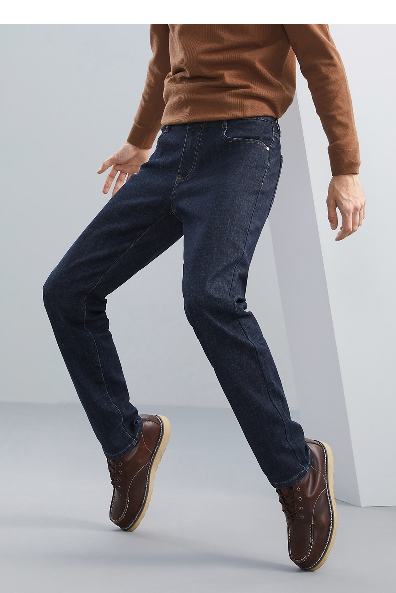 【含羊毛】柒牌直筒牛仔裤男冬季厚款商务休闲通勤加绒保暖长裤子 125H71030