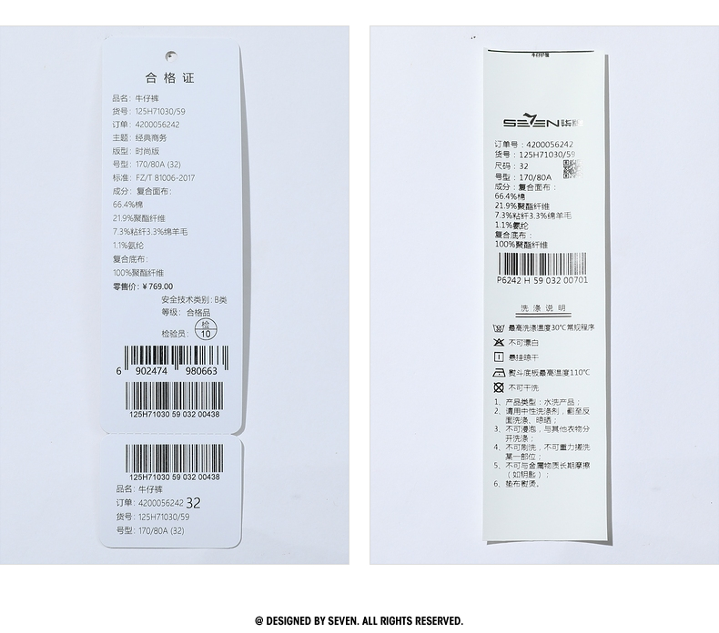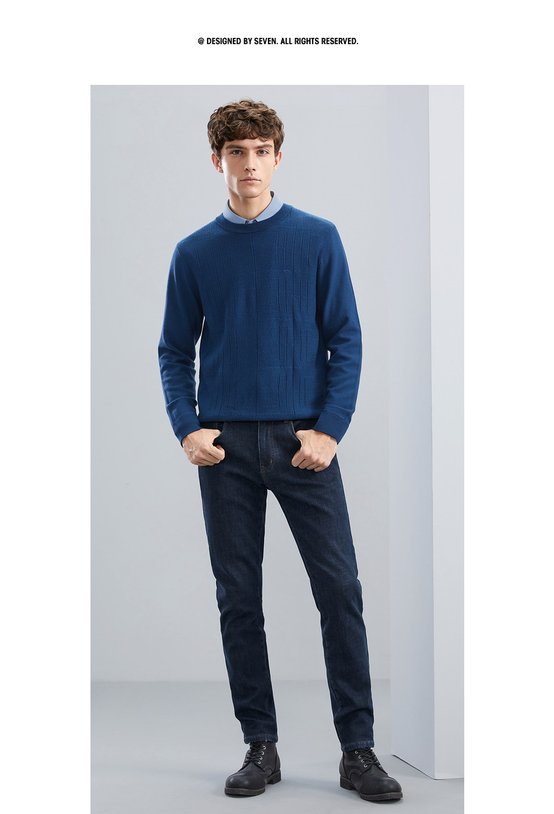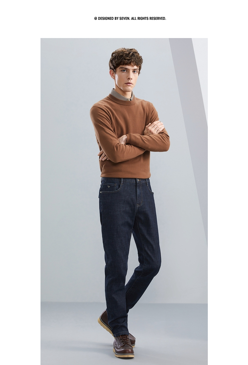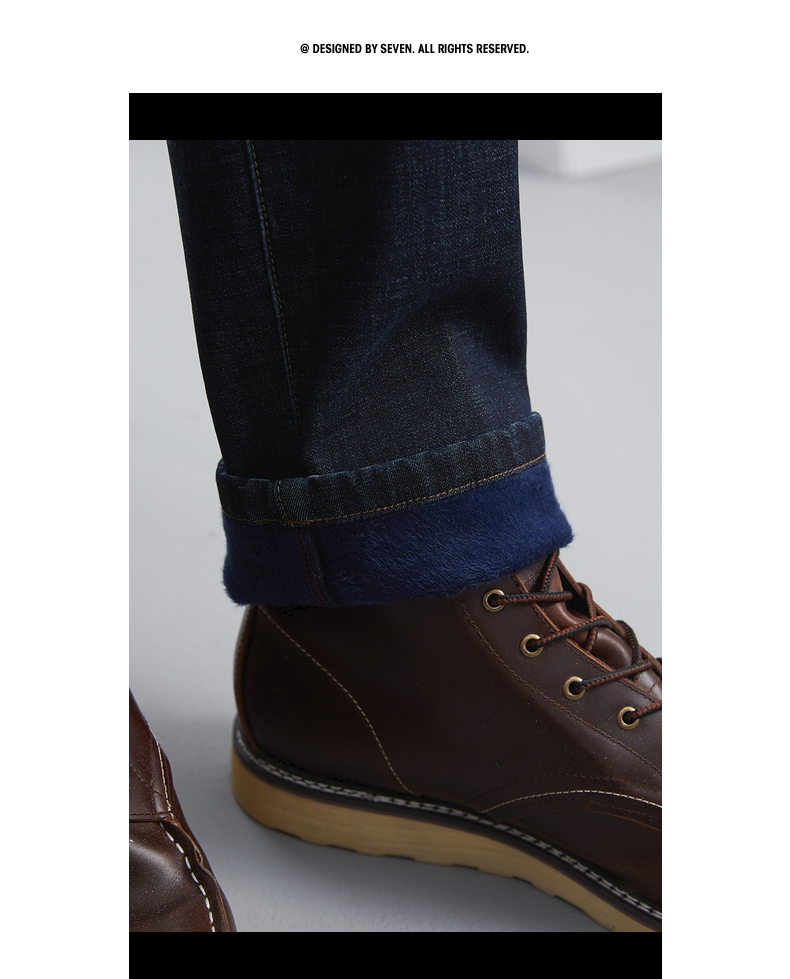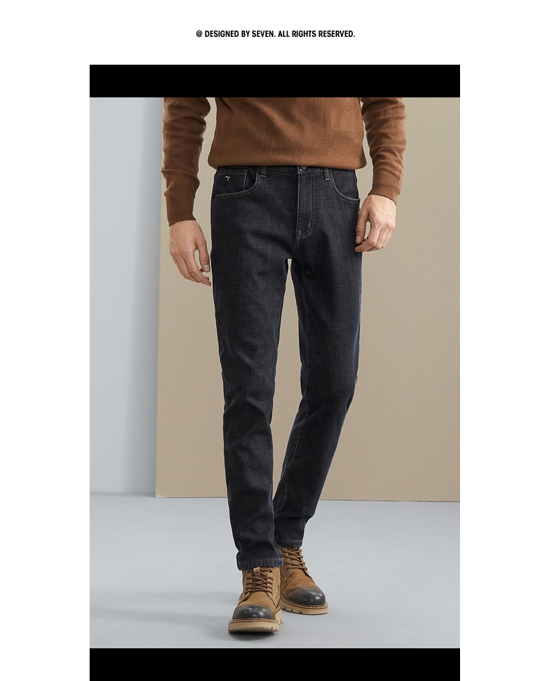 【含羊毛】柒牌直筒牛仔裤男冬季厚款商务休闲通勤加绒保暖长裤子 125H71030