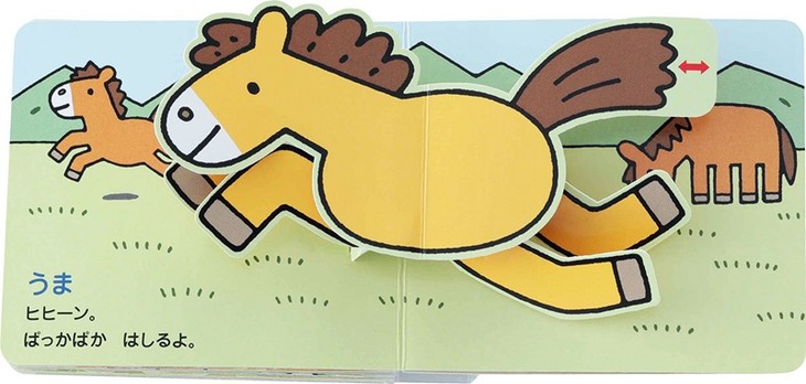 馬や馬や羊、ニワトリたちがページををめくるごとに飛び出し、動く、しかけが楽しい1冊です。