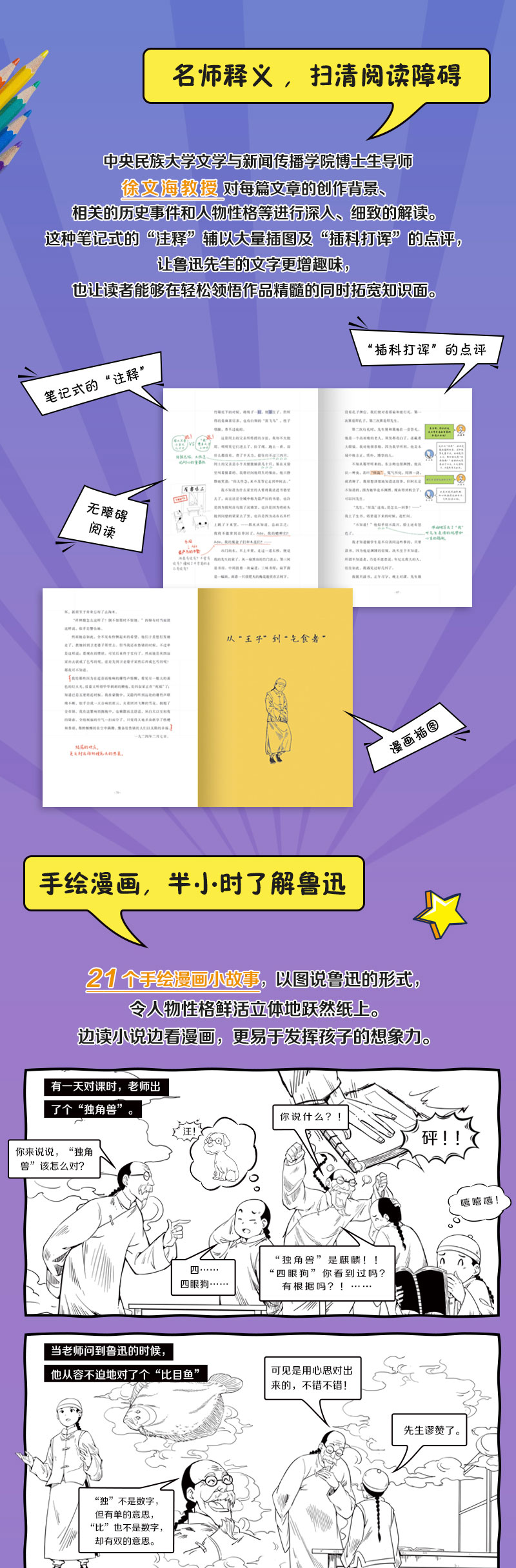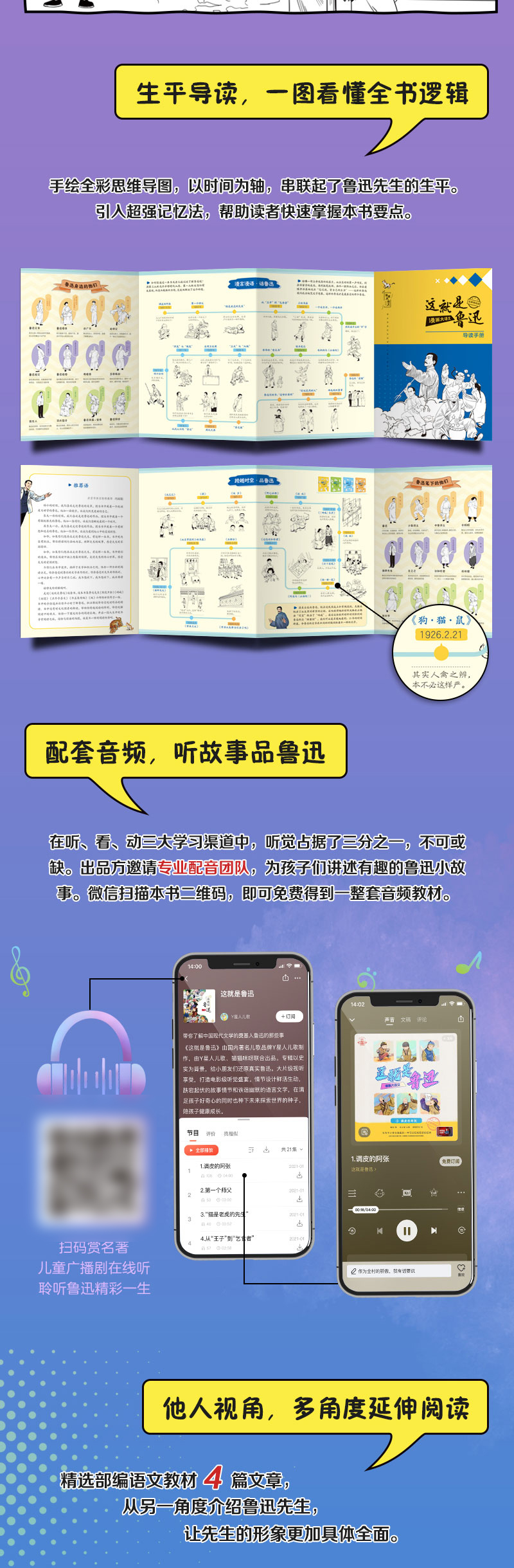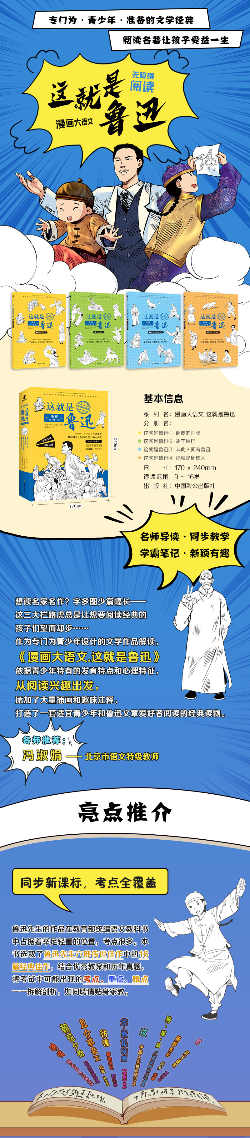 《漫画大语文.这就是鲁迅》手绘漫画,半小时了解鲁迅生平 名师导读、学霸笔记,考点重点全覆盖 还有精彩音频故事,边听边学