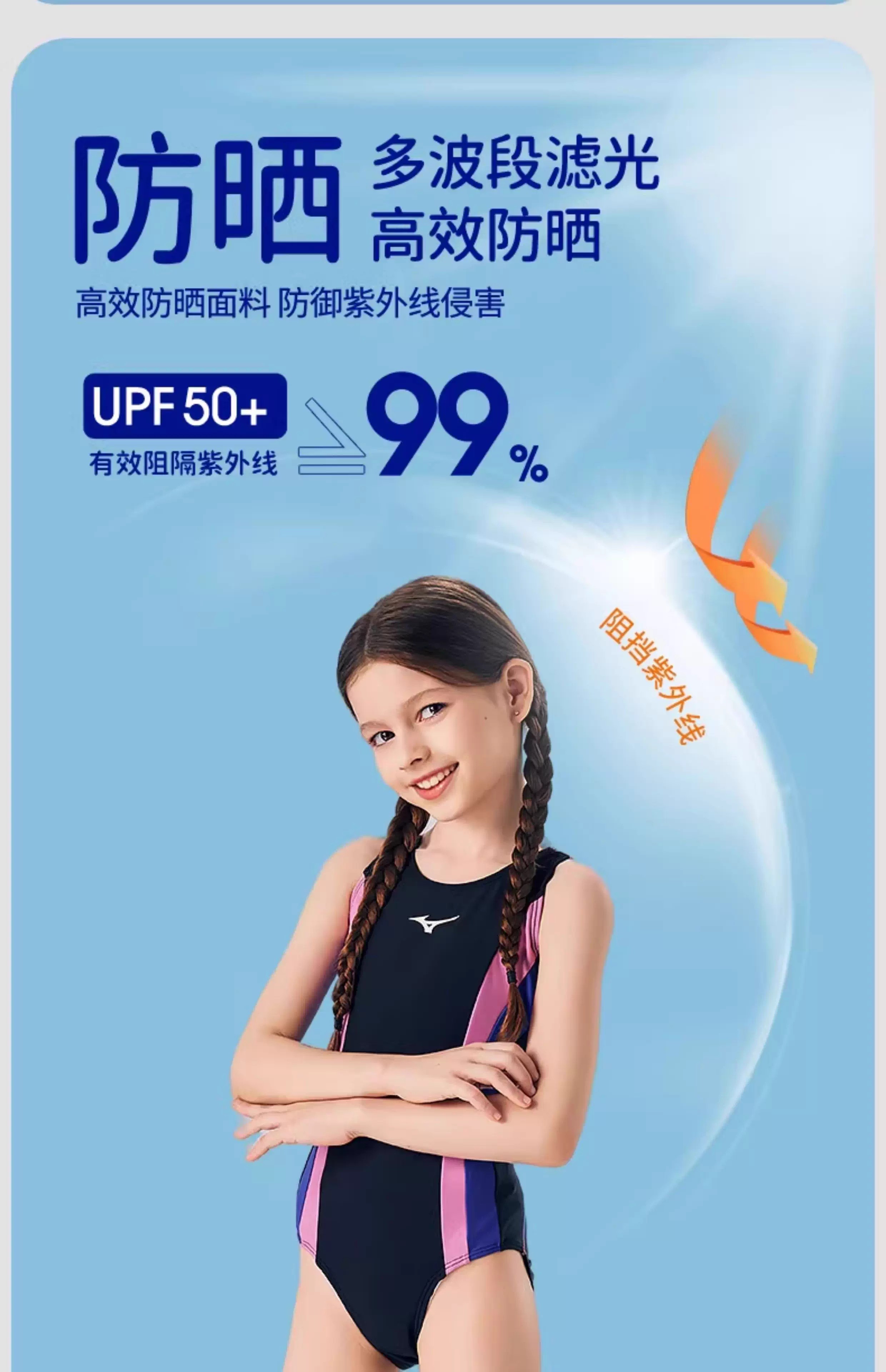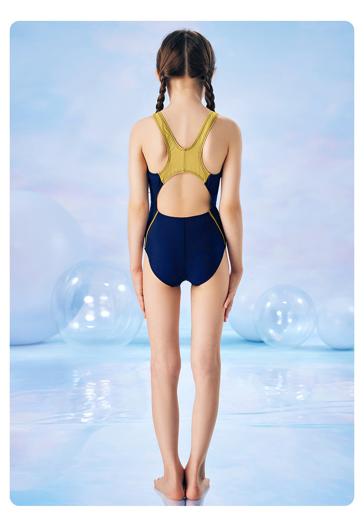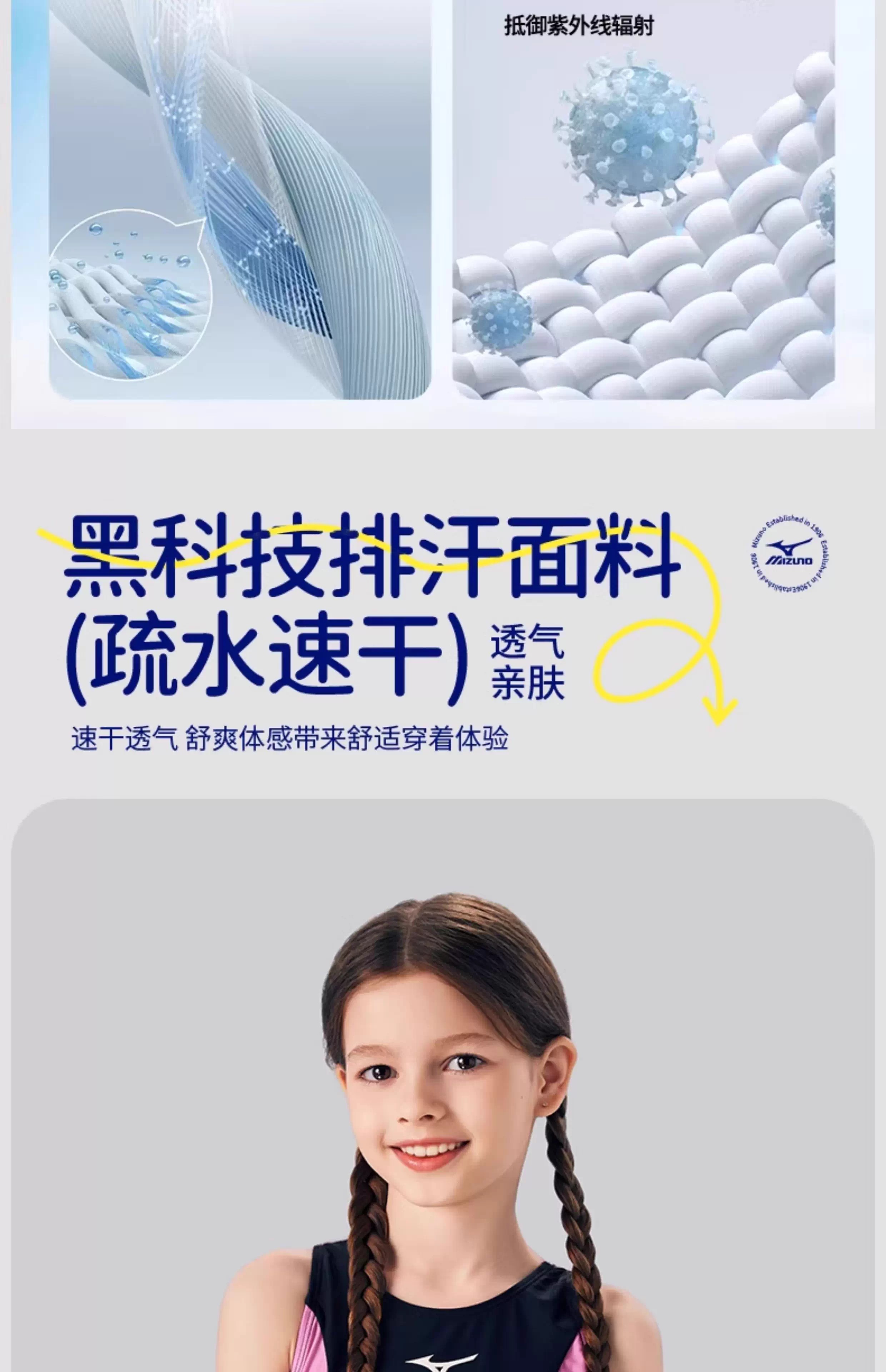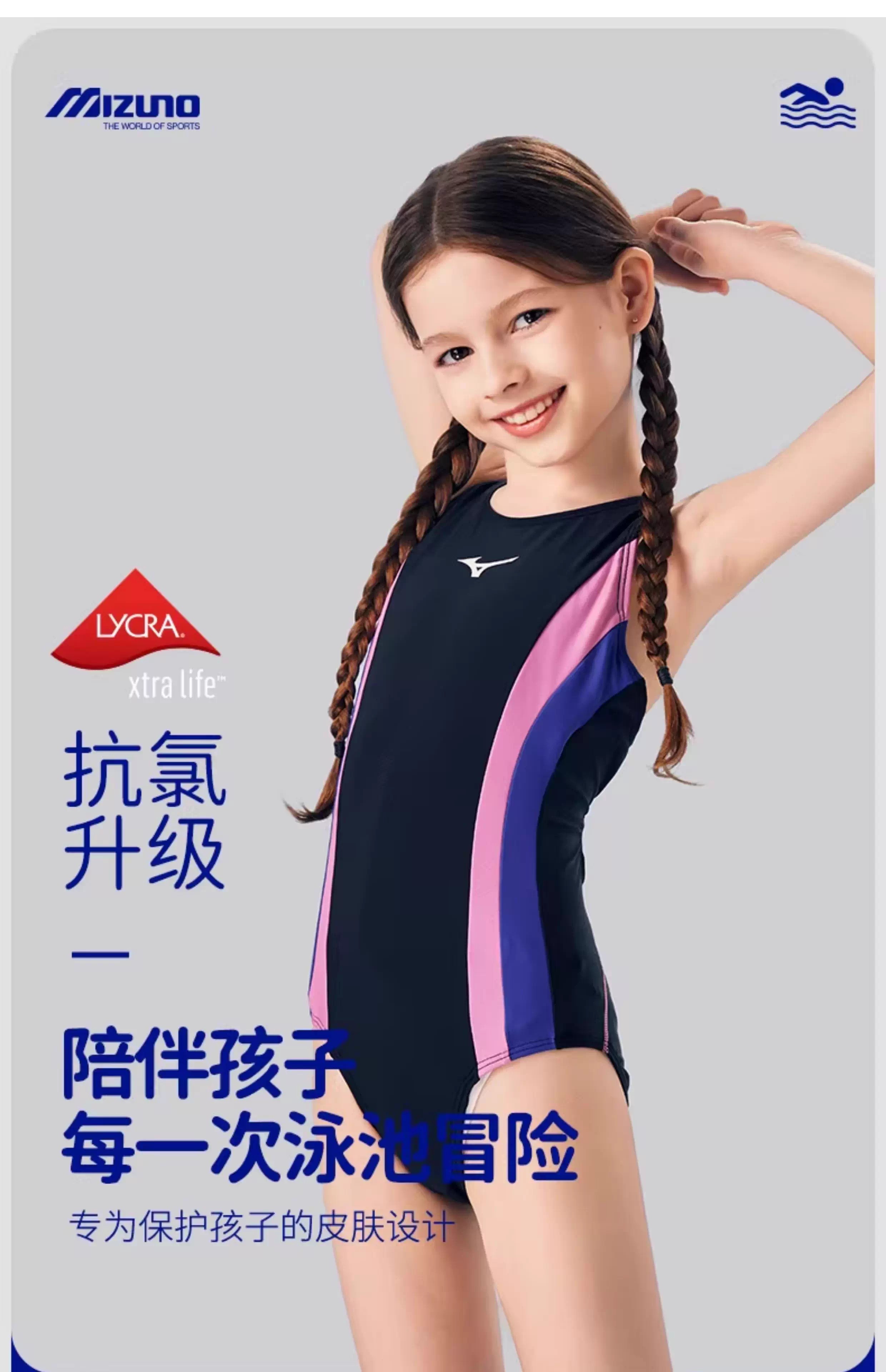 【美津浓】新款糖果色女童抗氯速干中大童连体三角泳衣N2CA1403