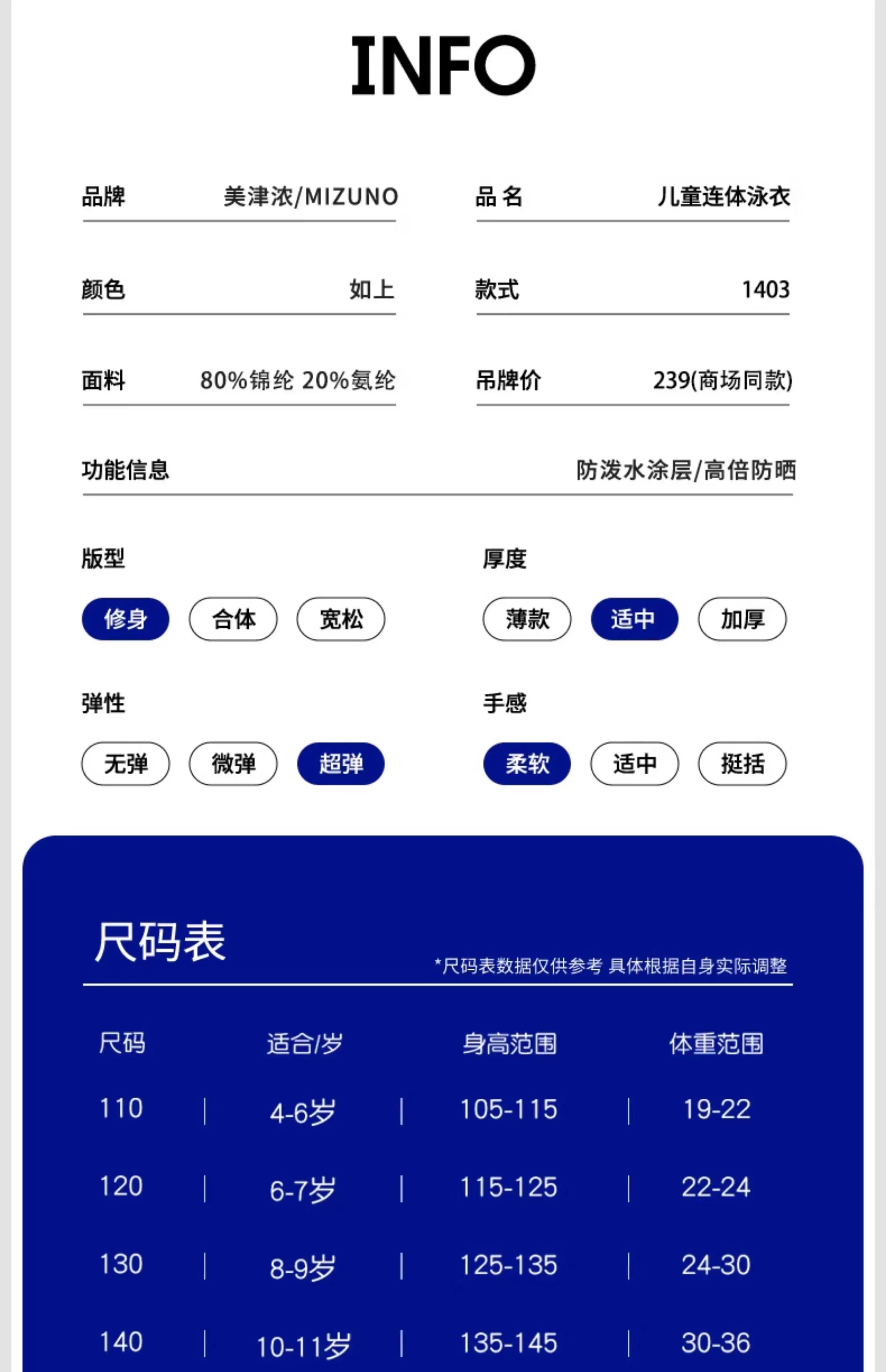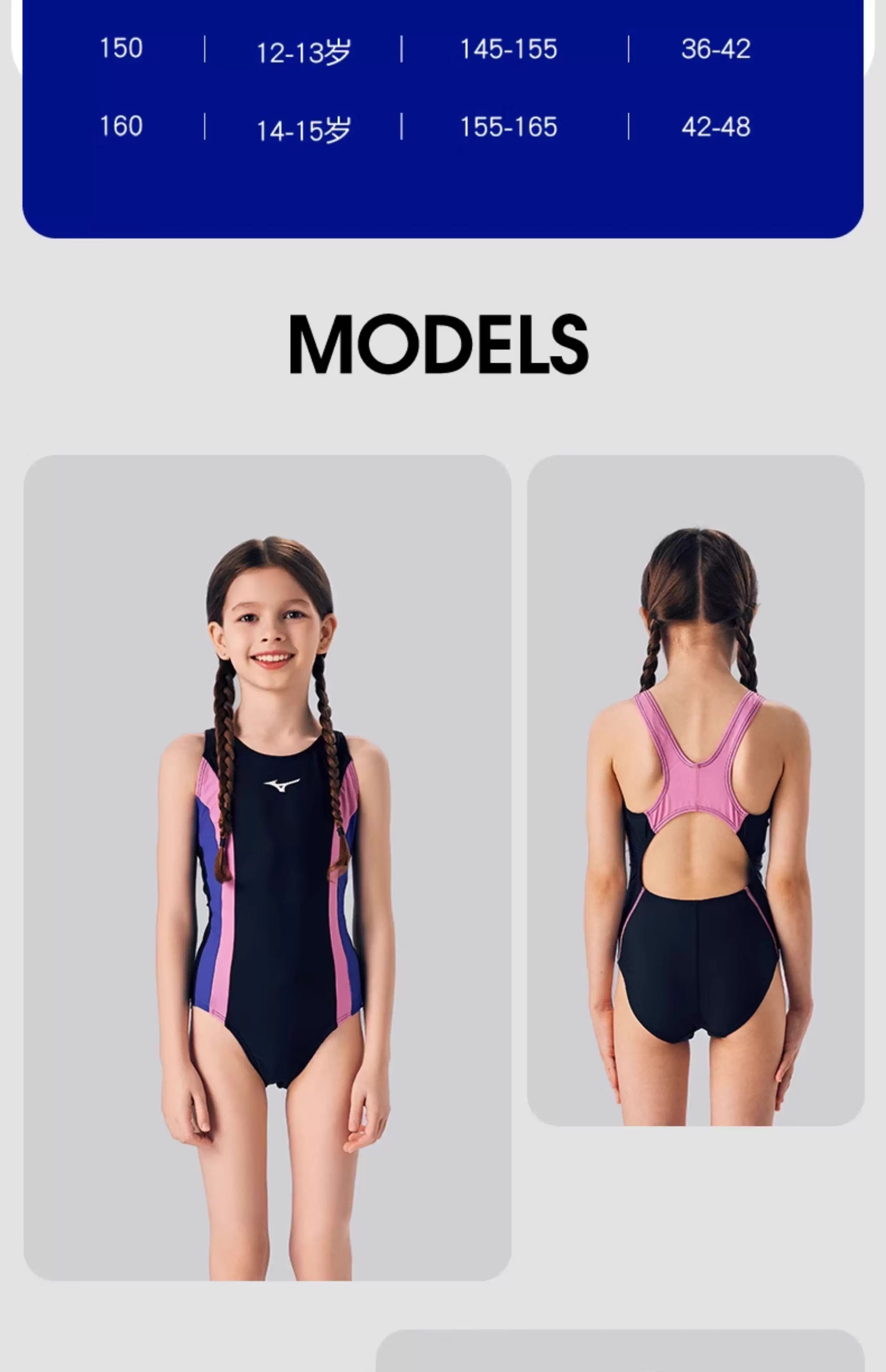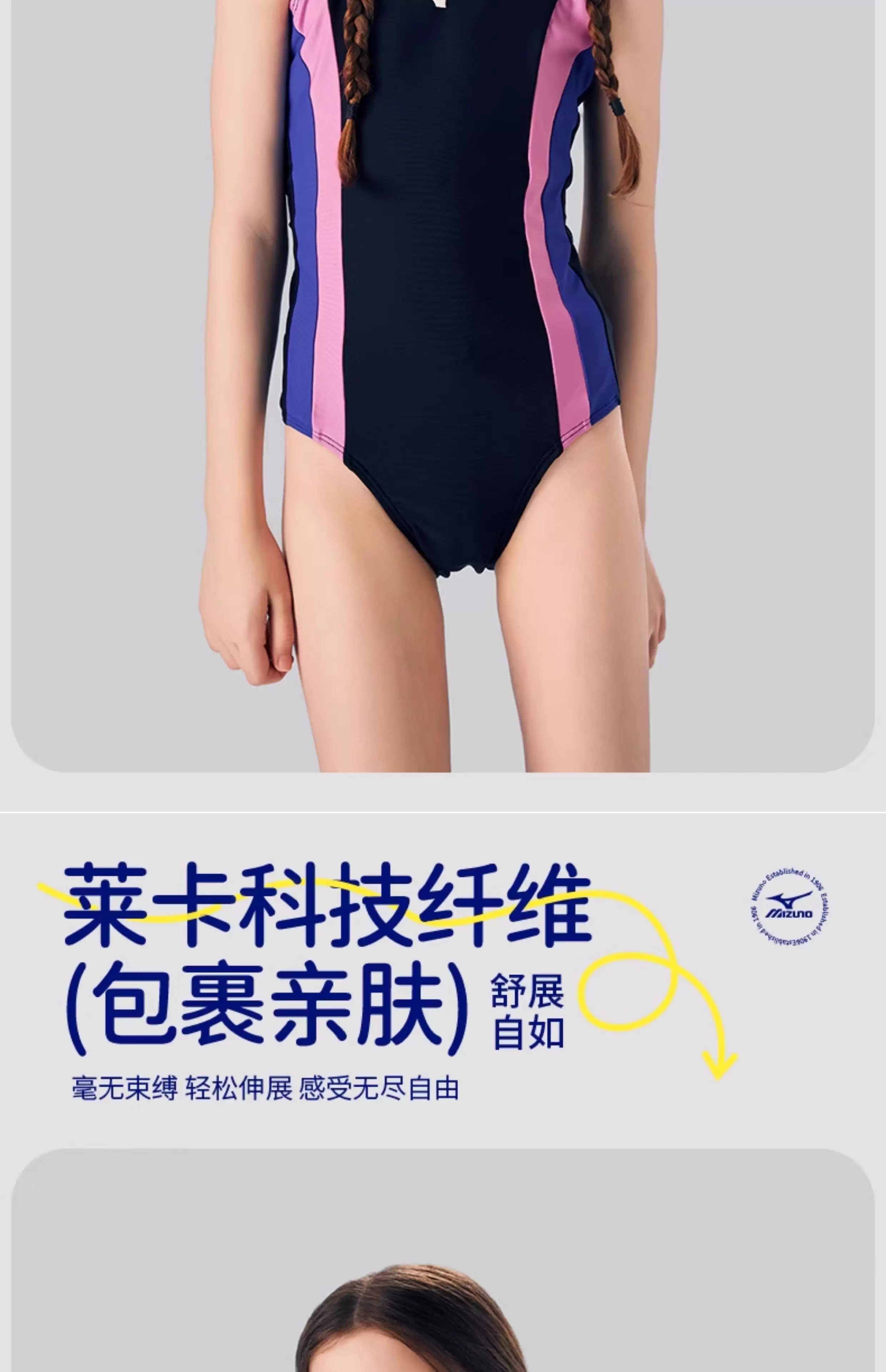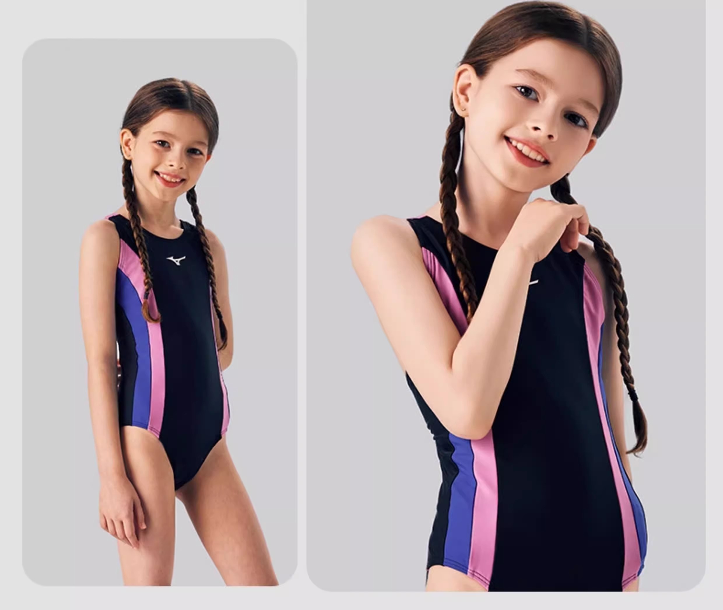 【美津浓】新款糖果色女童抗氯速干中大童连体三角泳衣N2CA1403