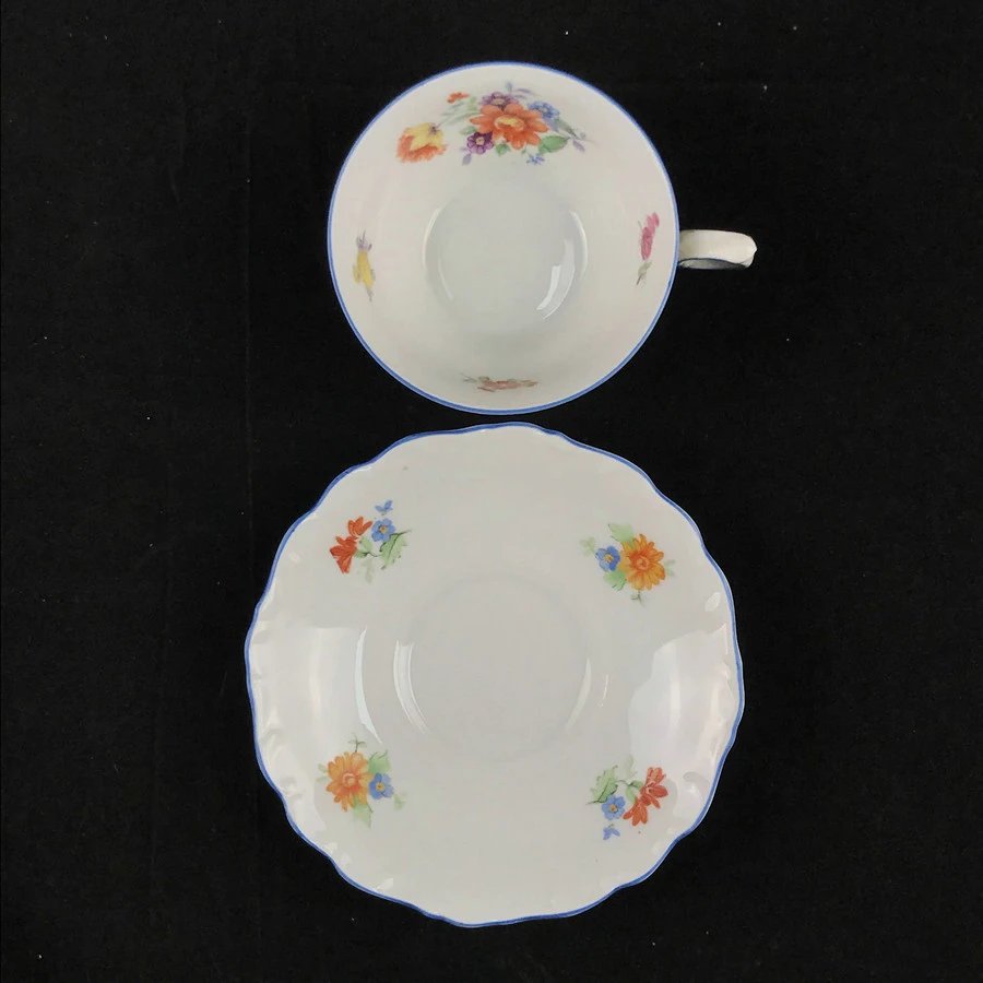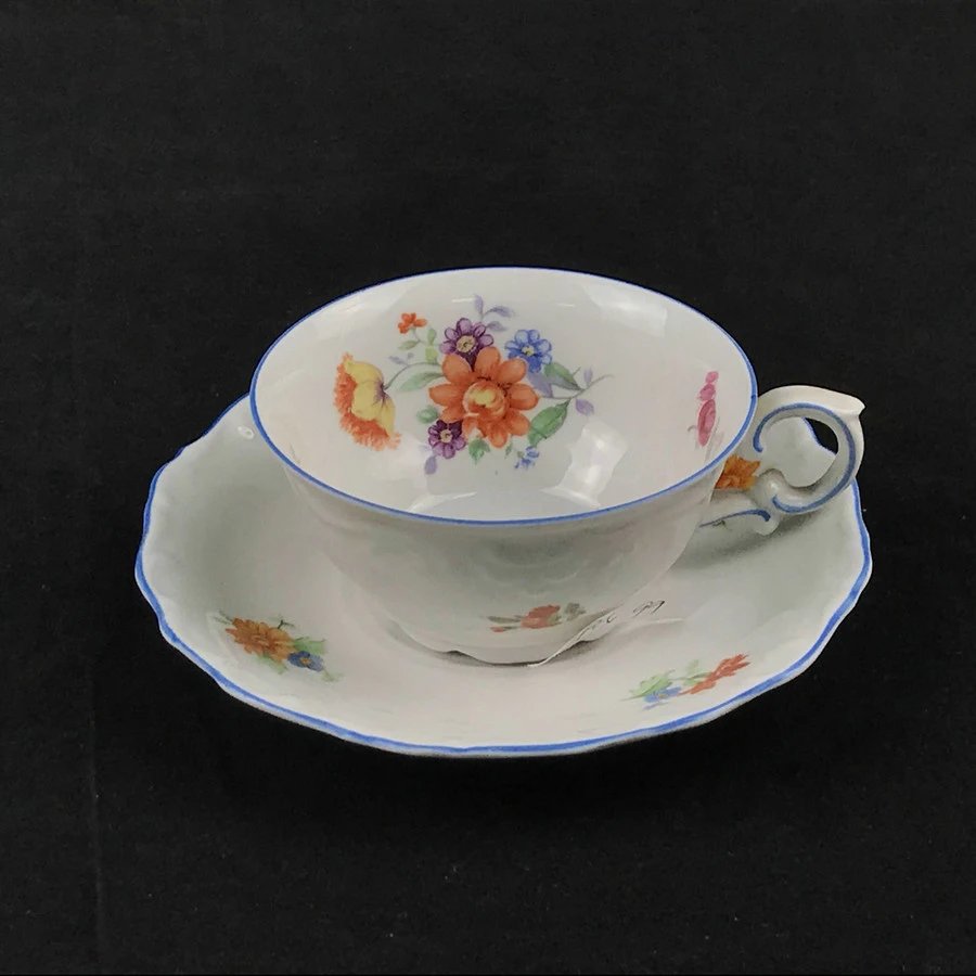 德国巴伐利亚舒曼红花开骨瓷杯具 一杯一碟尺寸(杯高/杯口直径/碟直径):3.5/7.5/11.5cm产地:德国品牌:舒曼杯身有一处小冲线