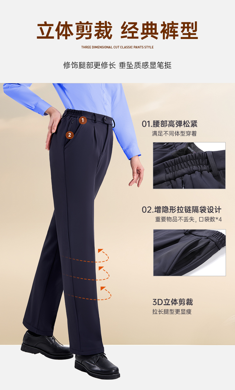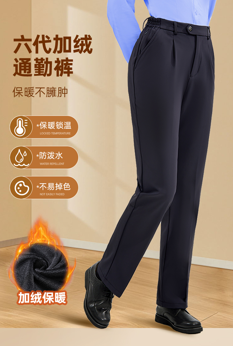 【女款六代加绒通勤裤/清仓】加绒防泼水通勤长裤加厚保暖休闲西裤 弹力修身直筒裤