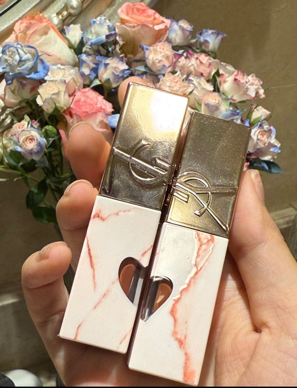 救命!YSL这次七夕限定也太会了吧!!粉金+大理石纹的包装直接戳中我心巴,摆在化妆台上都像艺术品,拿在手里补妆回头率百分百💥