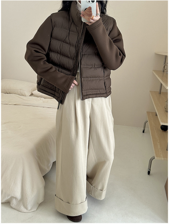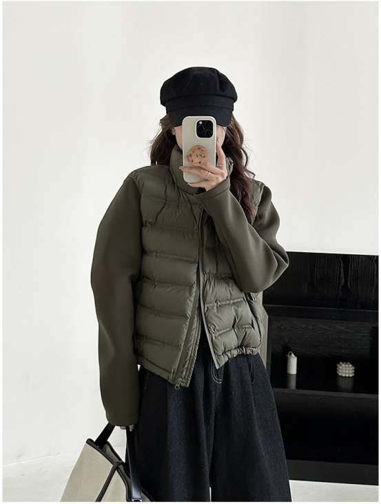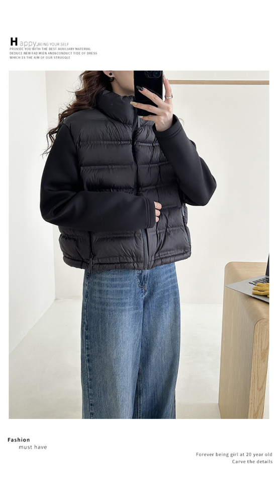这款棉衣外套小野采用了经典的韩版设计,简约而不失时尚感。 短款设计让你的身材更加修长,无论是搭配牛仔裤还是半身裙,都能轻松驾驭各种场合。 加厚立领设计不仅增强了保暖效果,还能修饰脸型,让你的脸庞更加小巧精致。