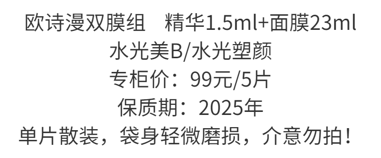【爆款超低价预售 急单慎拍】欧诗漫面膜组合美白淡斑玻尿酸补水保湿提亮肤色护肤品 运损特价