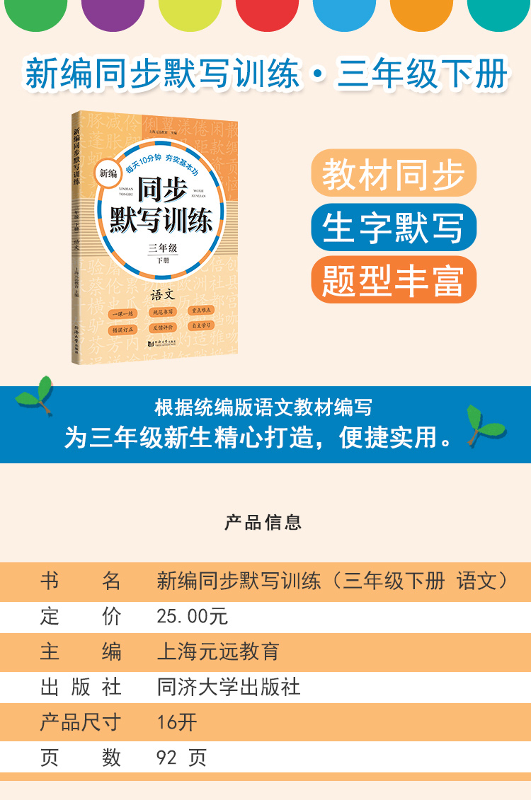 新编同步默写训练 部编版 3年级下册/三年级第二学期 语文 同济大学出版社 新编上海语文教材同步听默写训练 语文默写助手