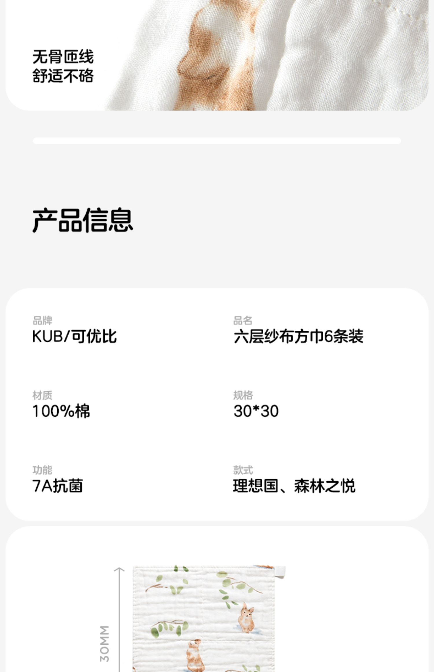 【积分兑换】KUB可优比婴儿口水巾毛巾洗脸巾宝宝拍嗝巾新生儿纯棉纱布小方巾