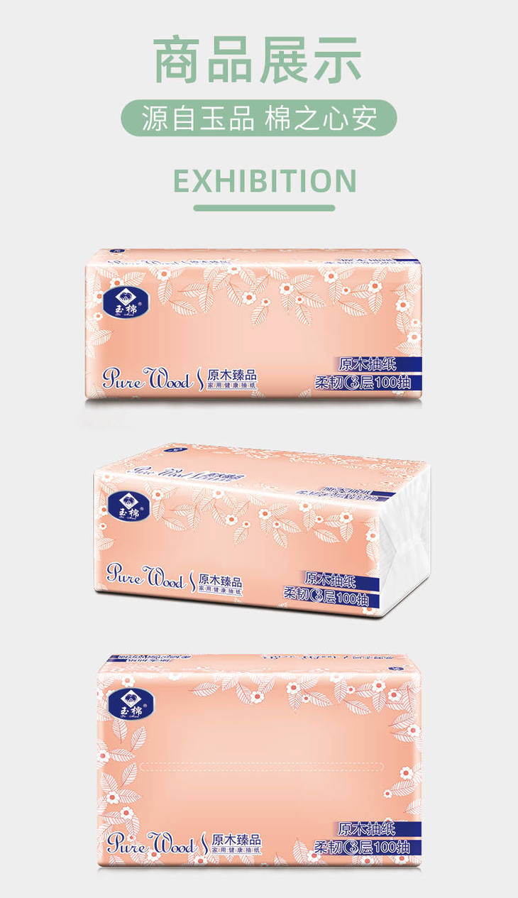 玉棉纸巾抽纸家用餐巾纸100抽 8包
