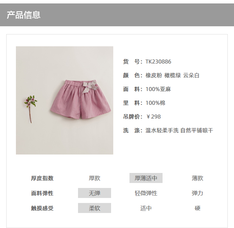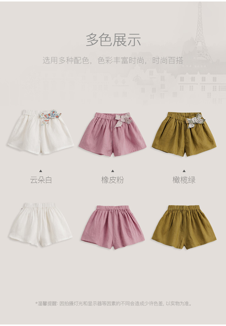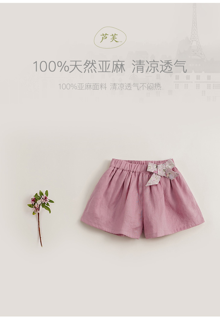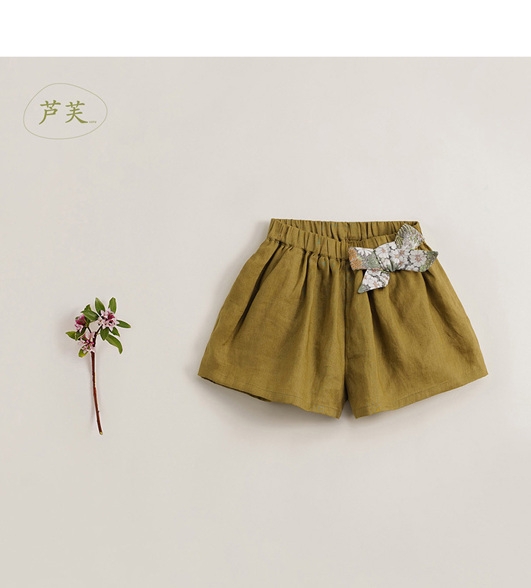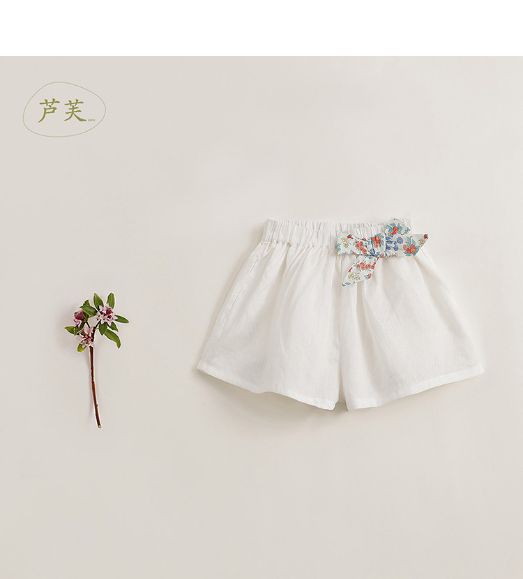 【马克珍妮 芦芙】新款夏装 女童天然亚麻透气短裤230886