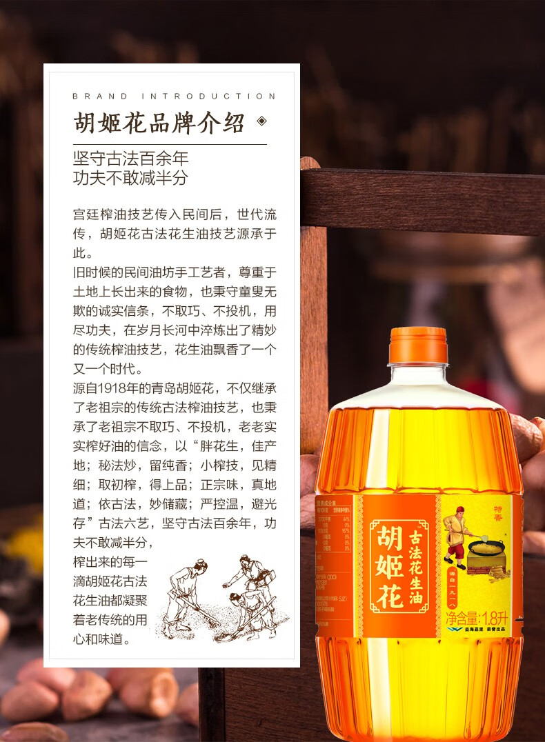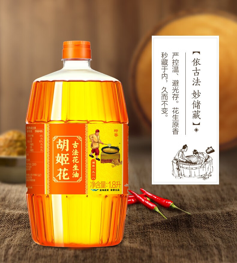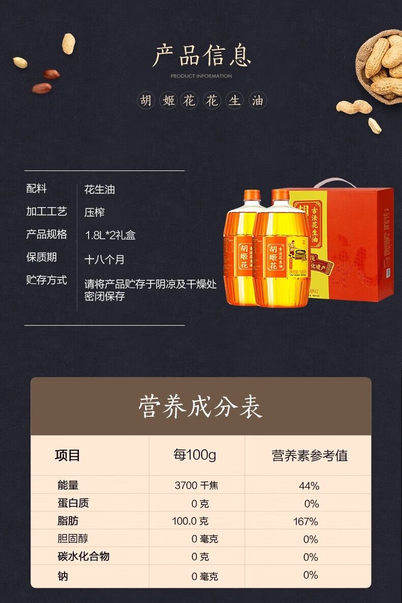 胡姬花 花生油家用食用油节日送礼 古法花生油1.8L*2礼盒