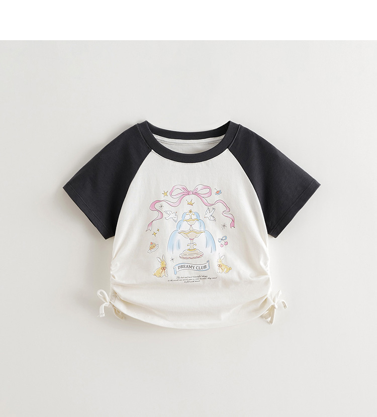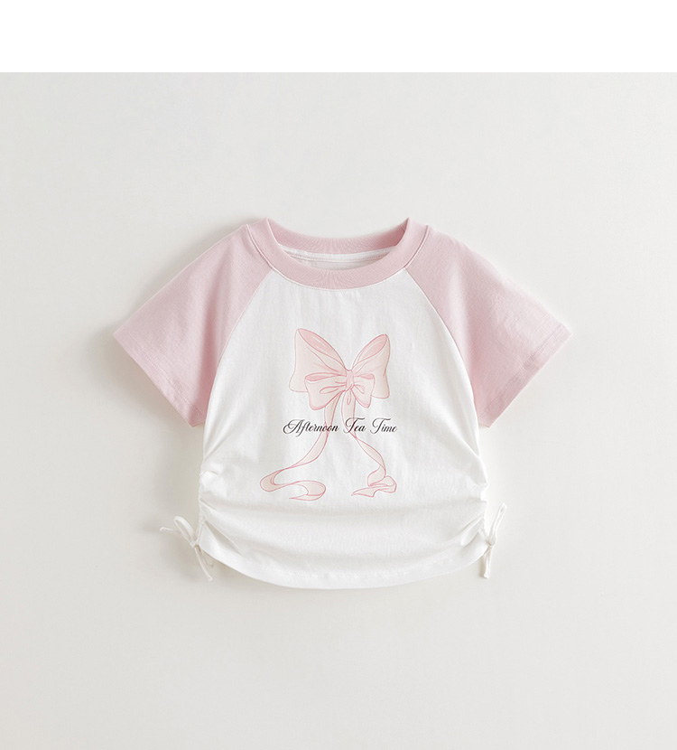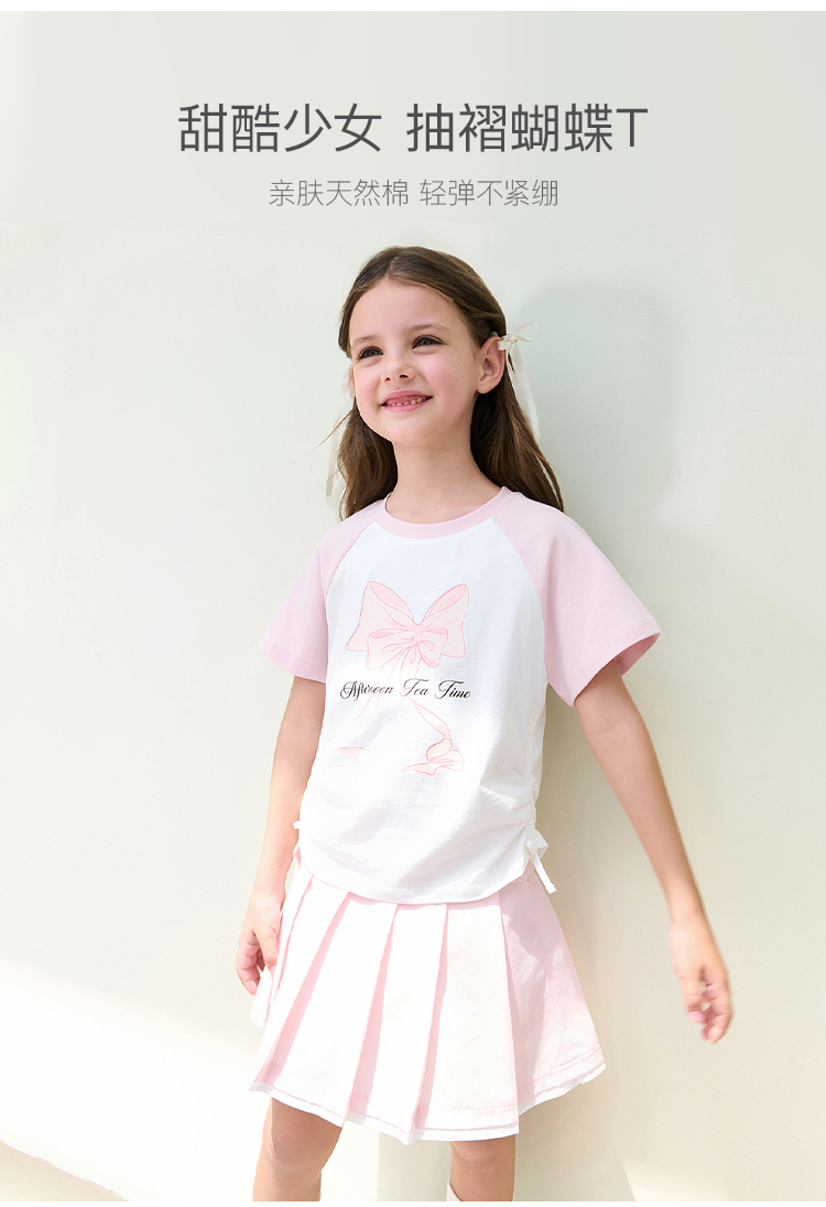马克珍妮女童甜酷少女抽褶T恤 儿童蝴蝶印花上衣春装新款250167/551101