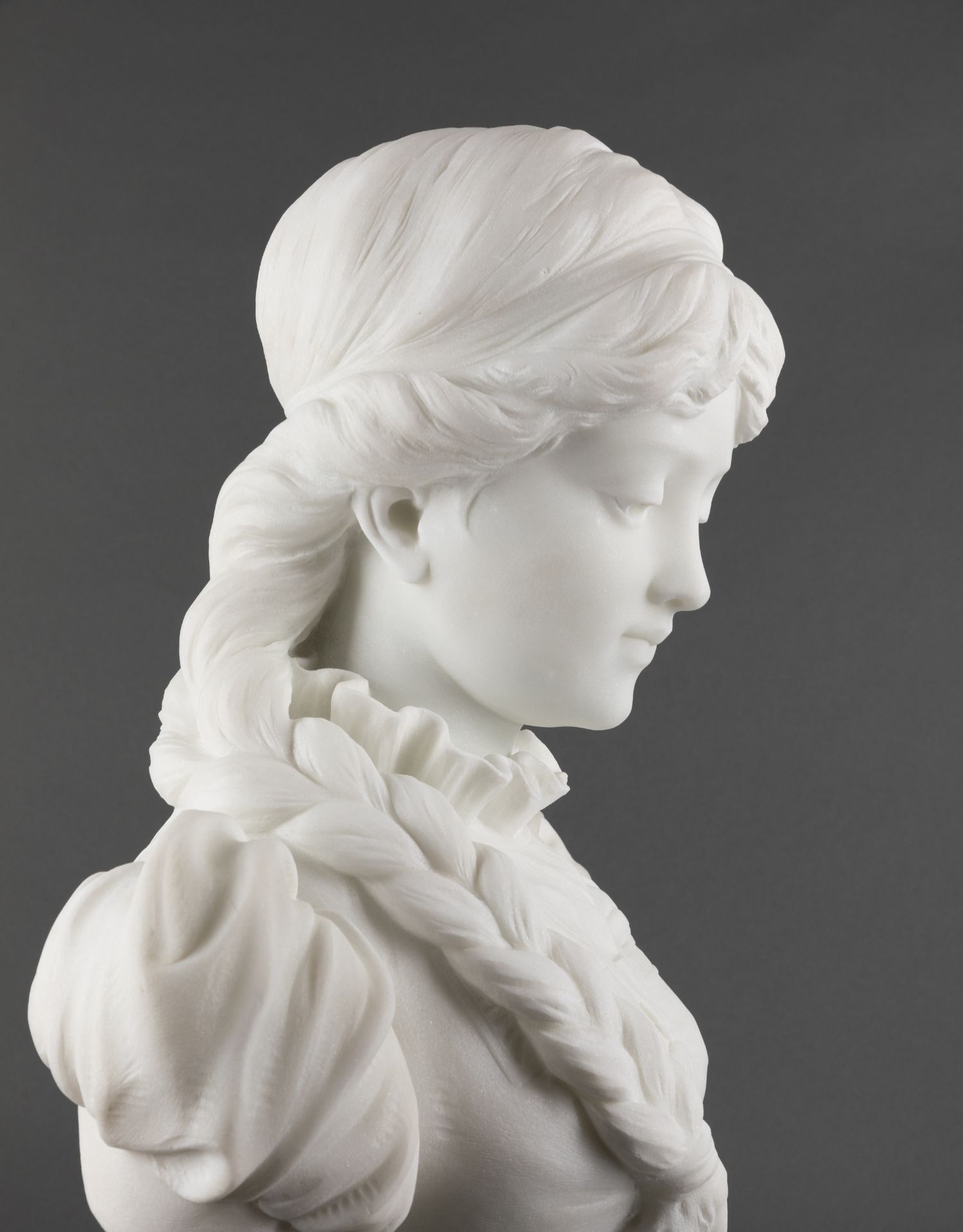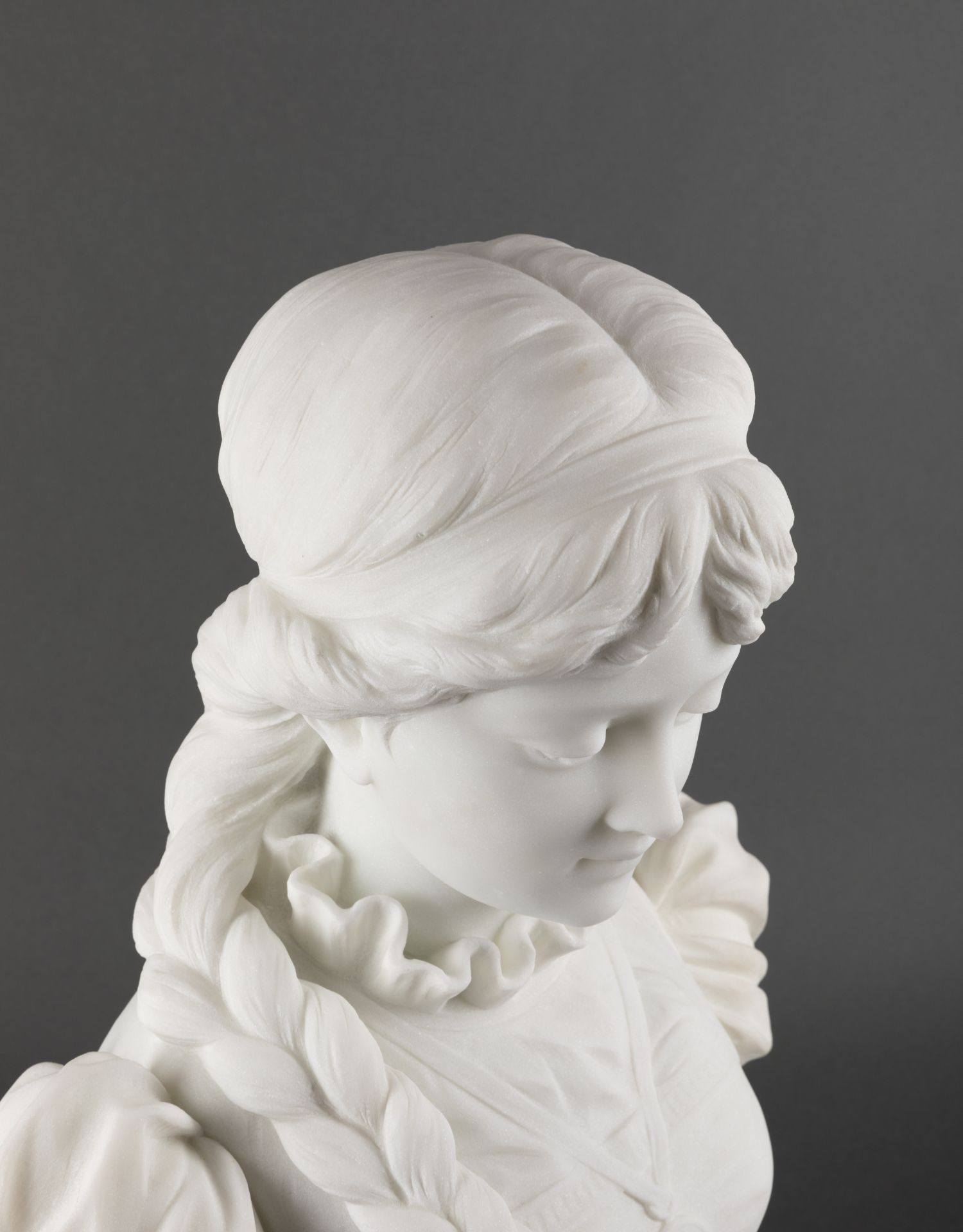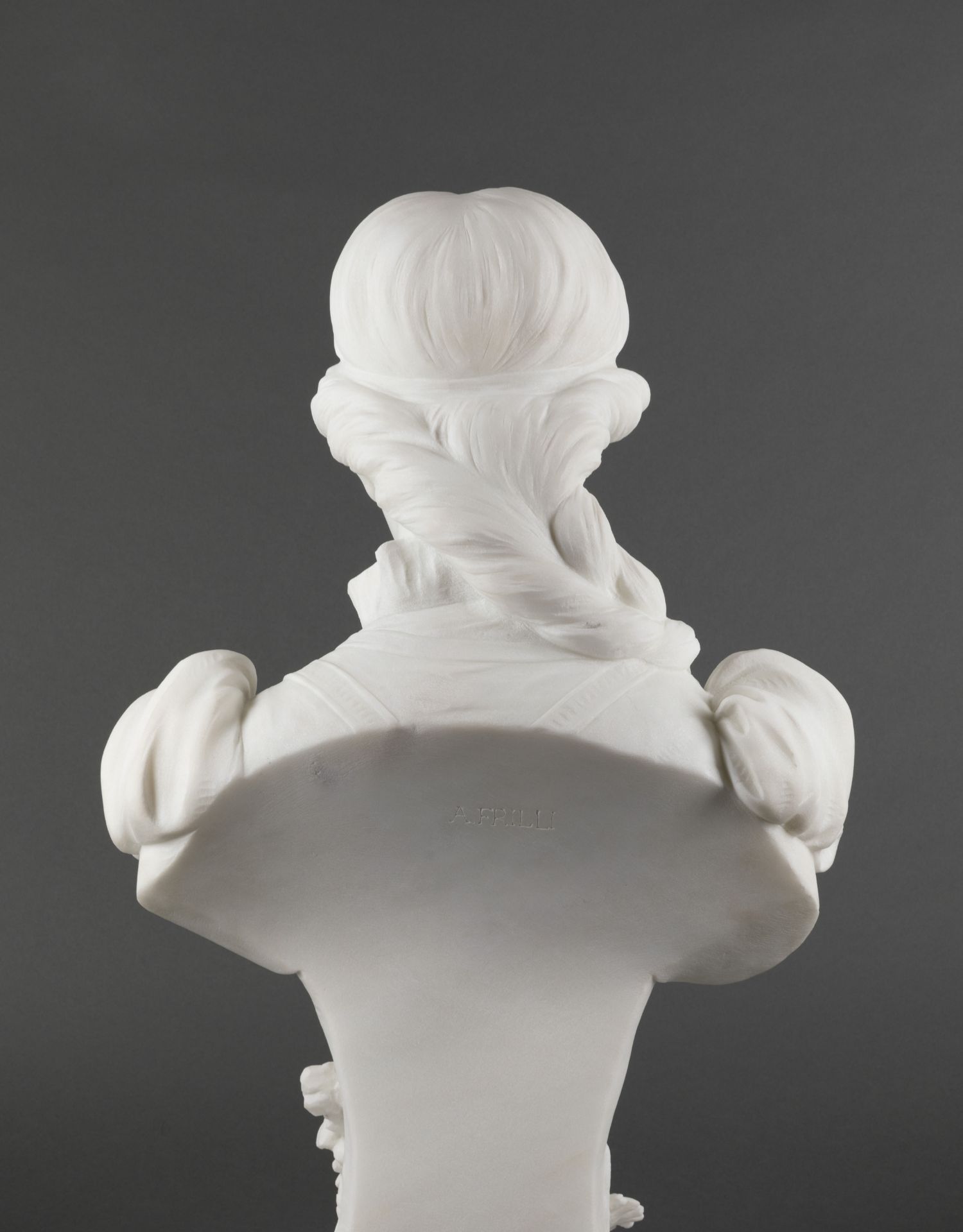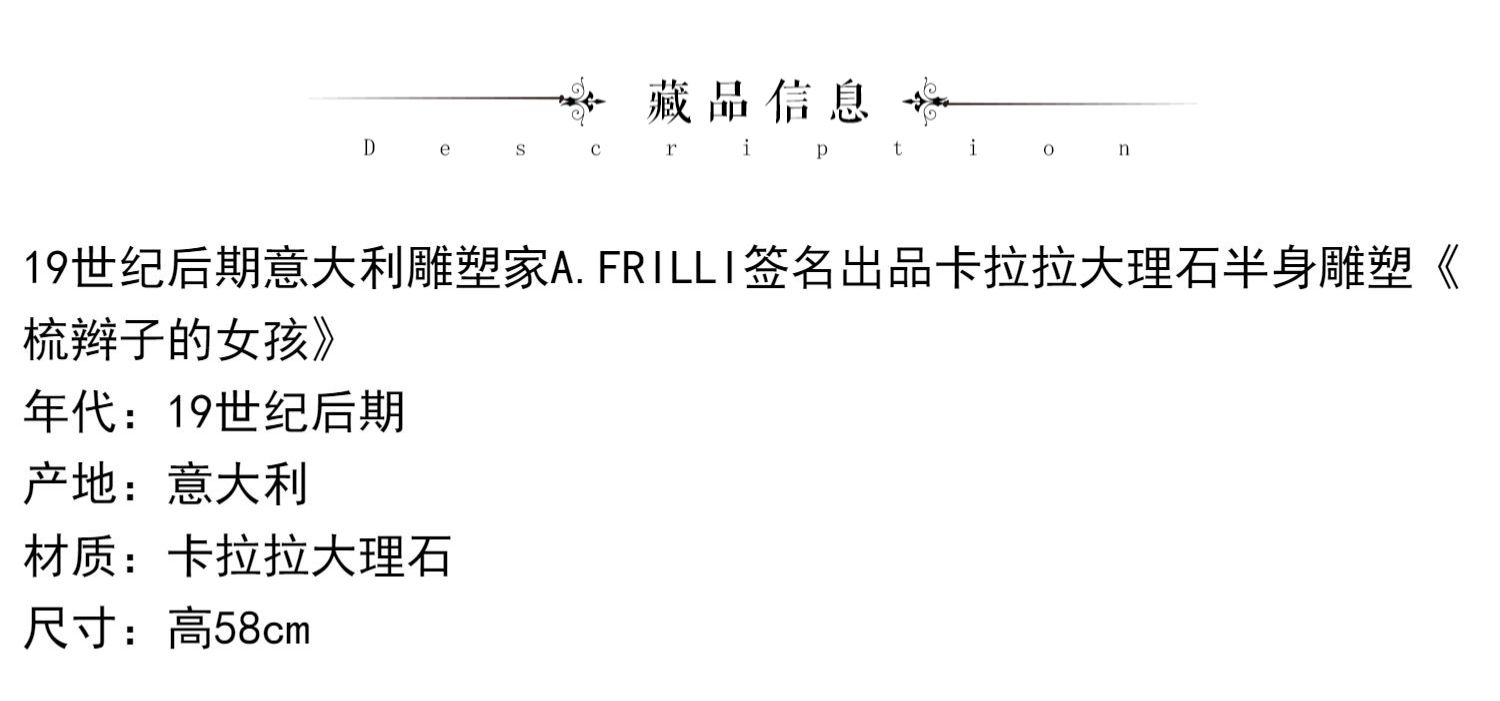 独角鹿西洋古董A.FRILLI签名梳辫子的女孩卡拉拉大理石半身雕塑