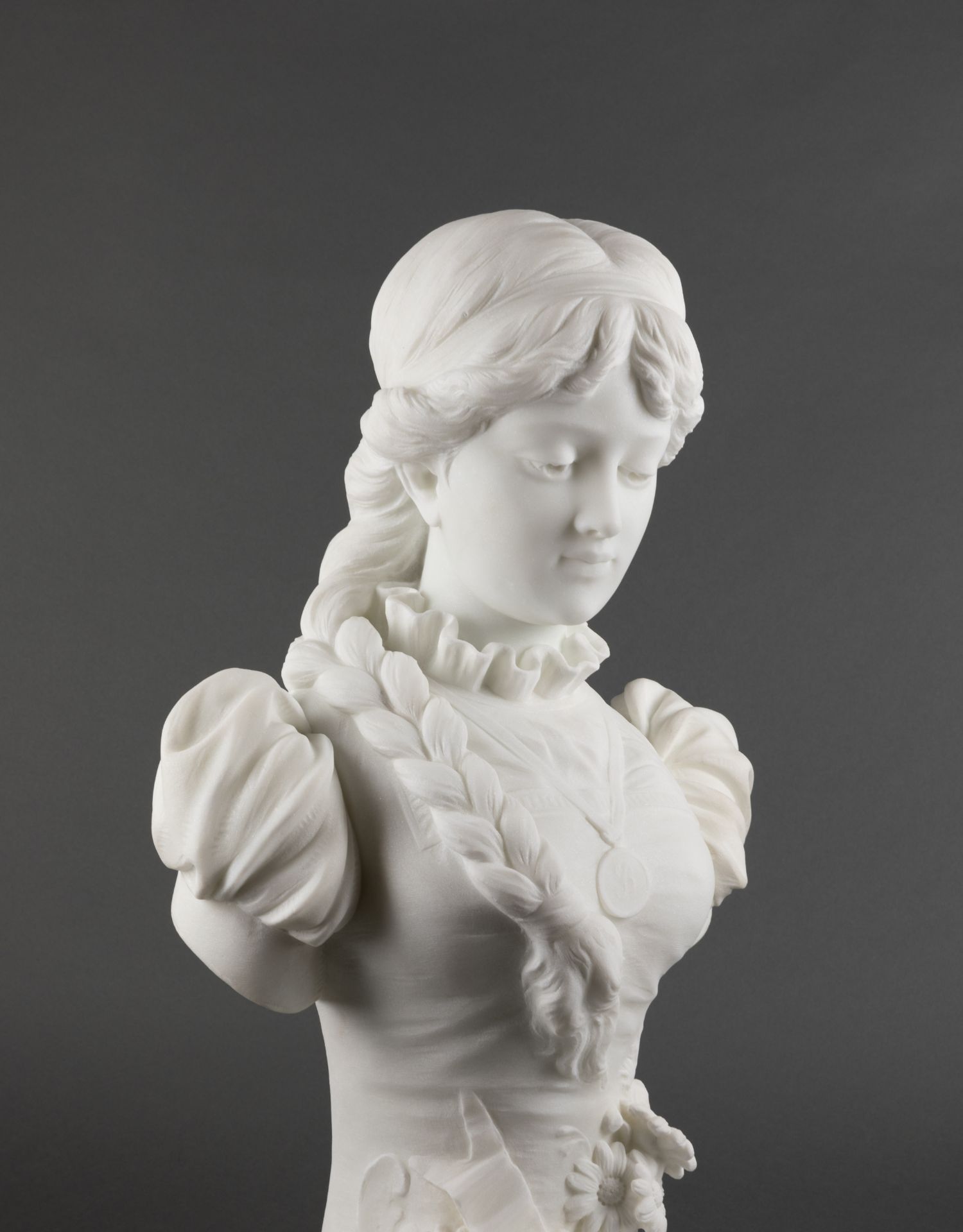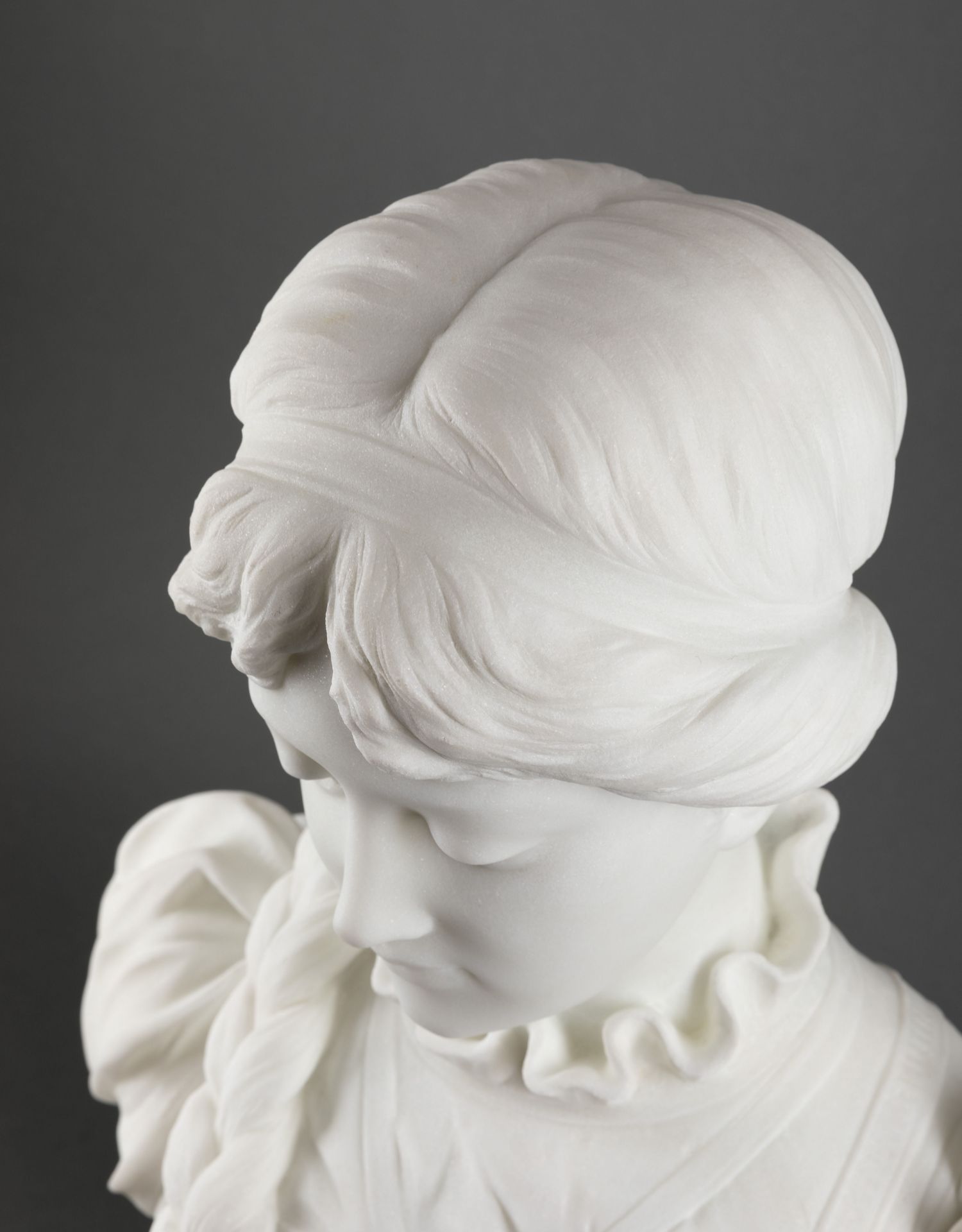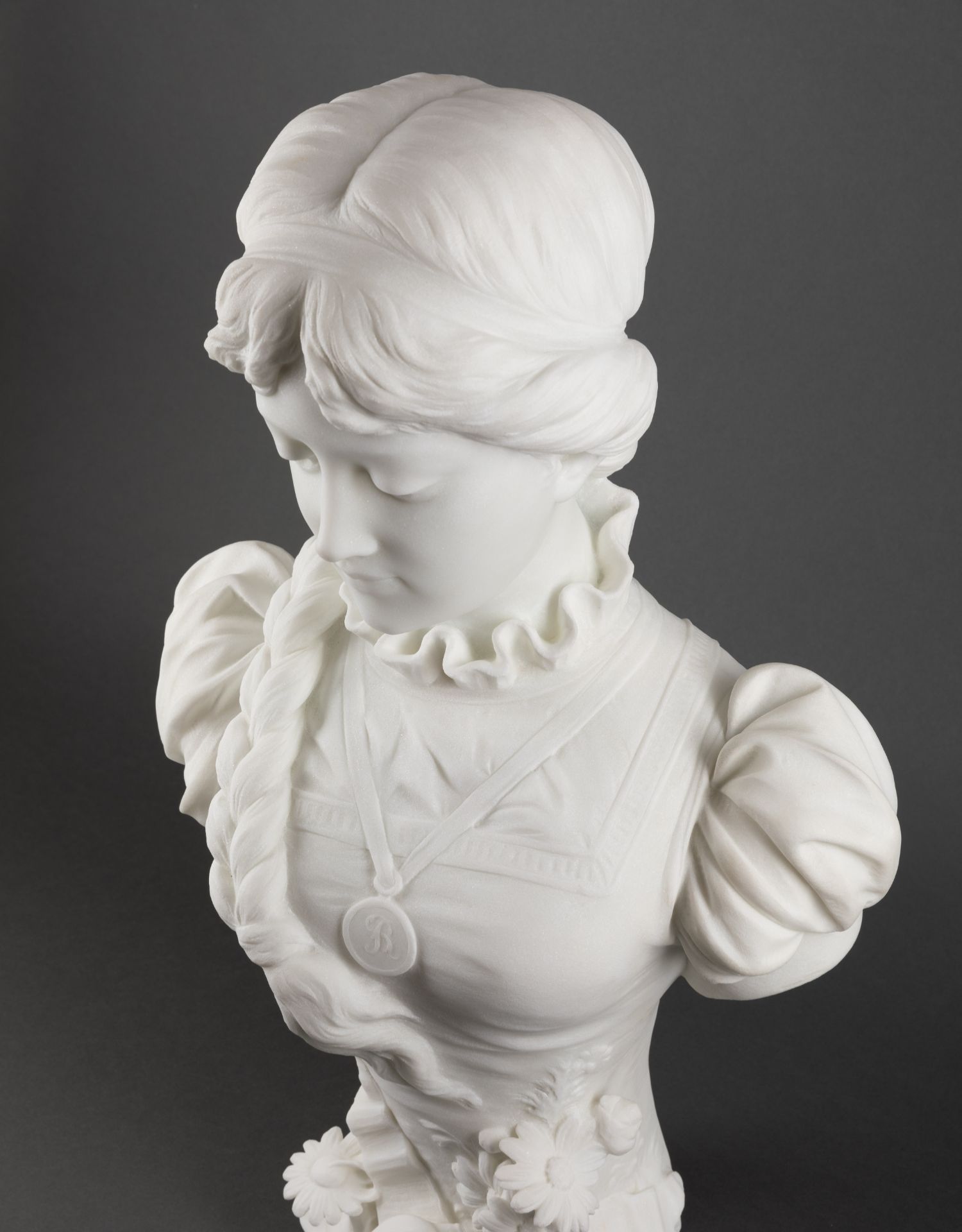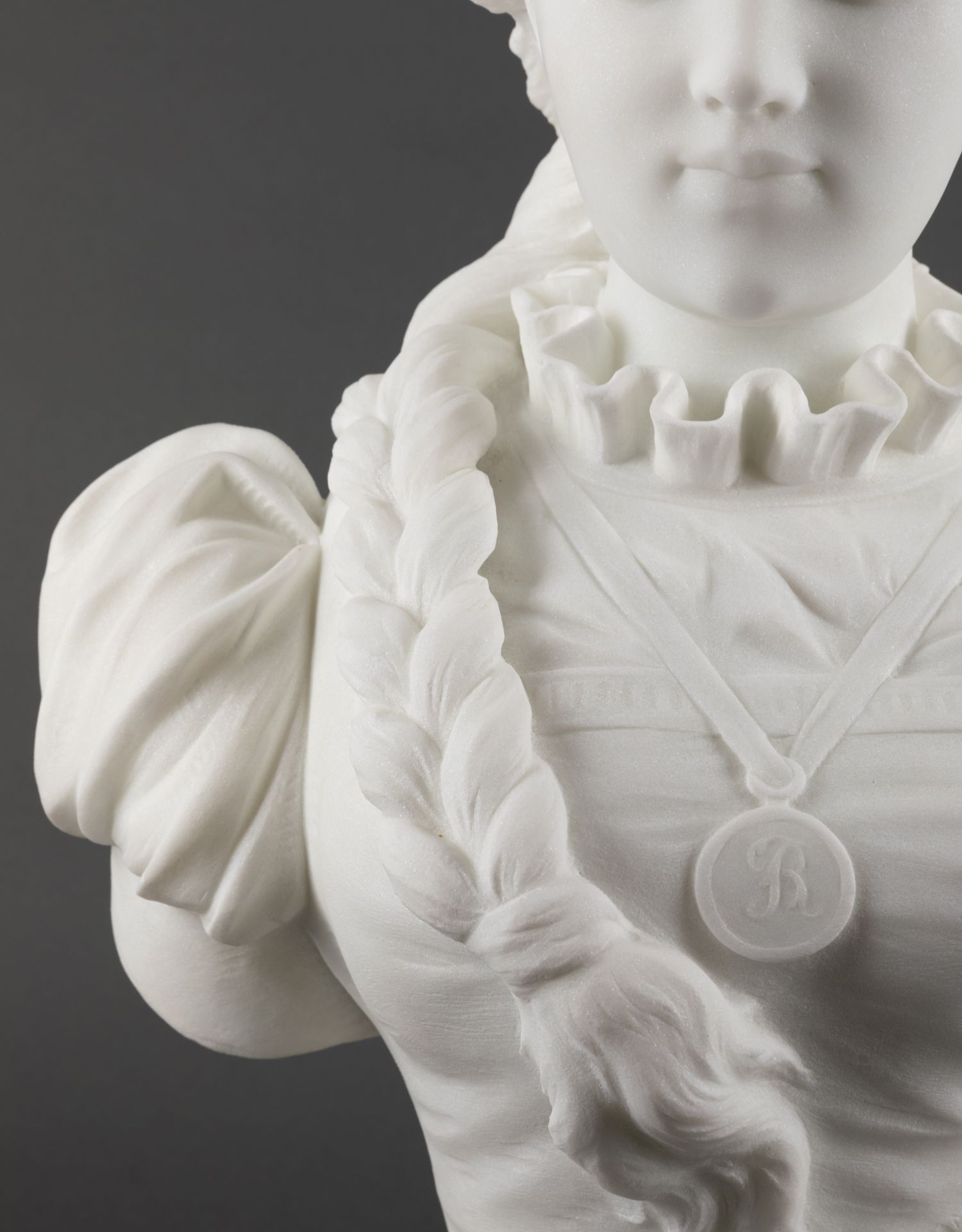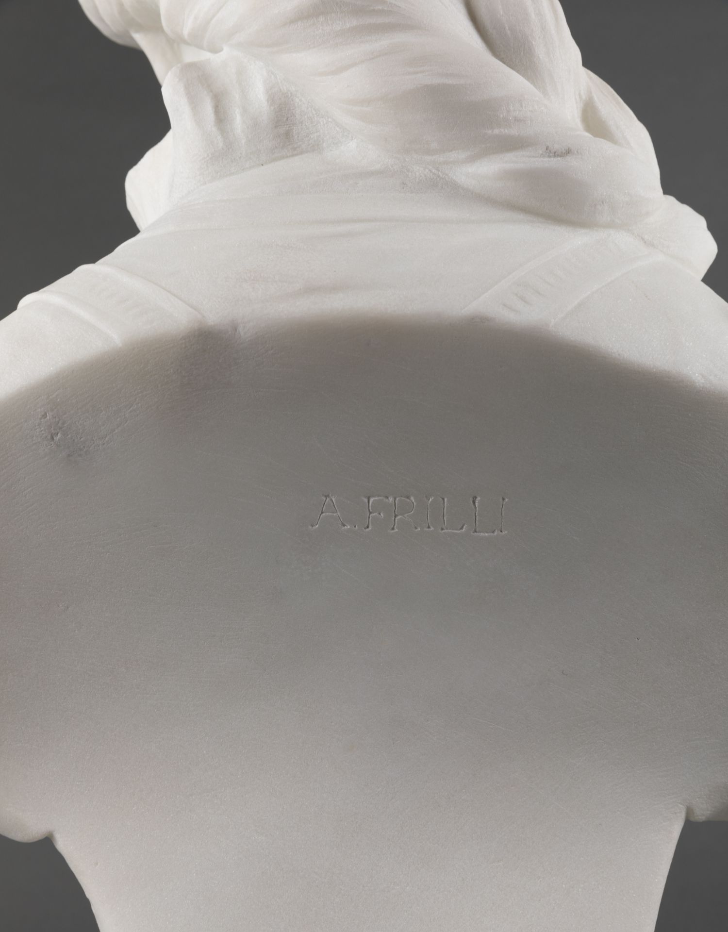 独角鹿西洋古董A.FRILLI签名梳辫子的女孩卡拉拉大理石半身雕塑
