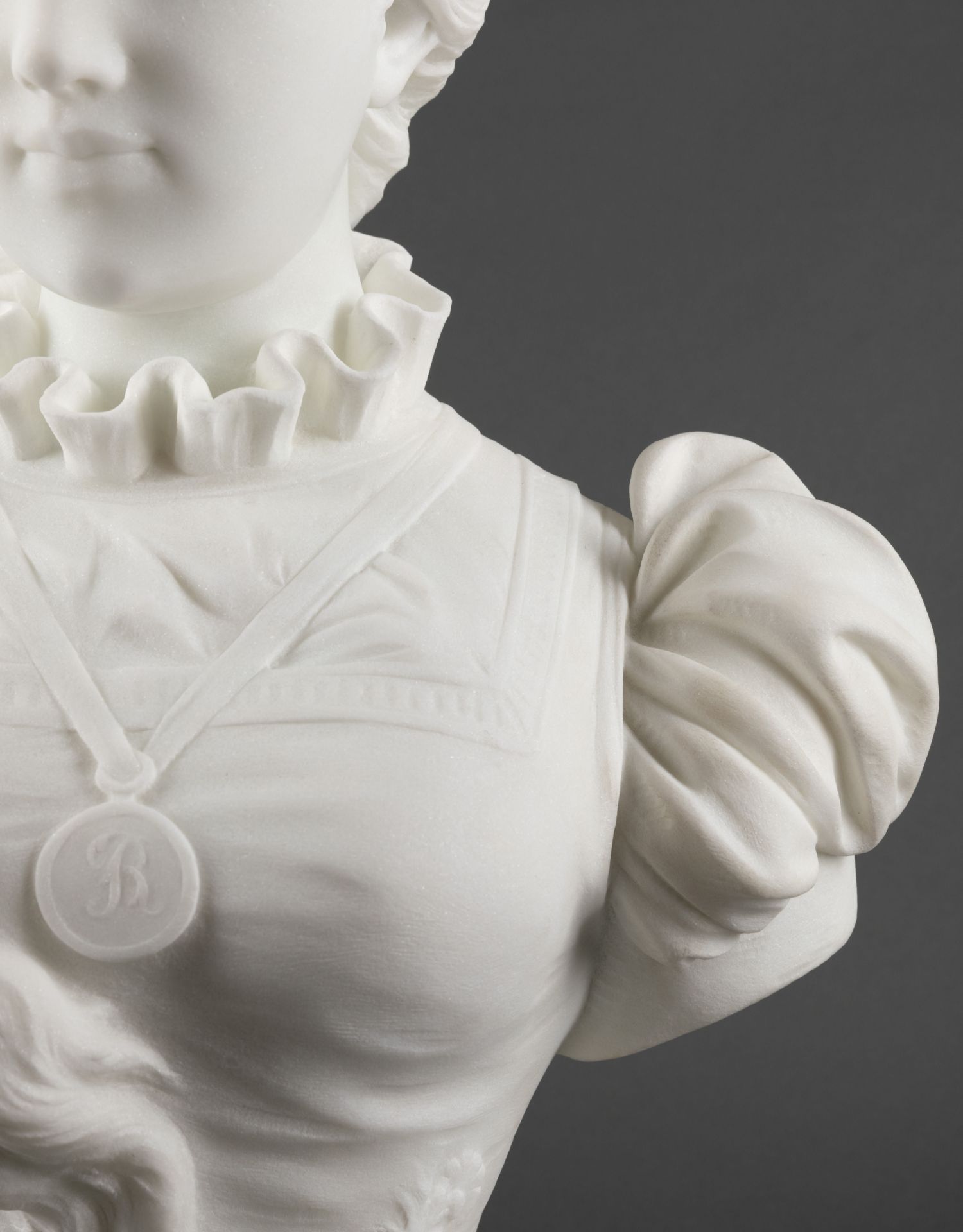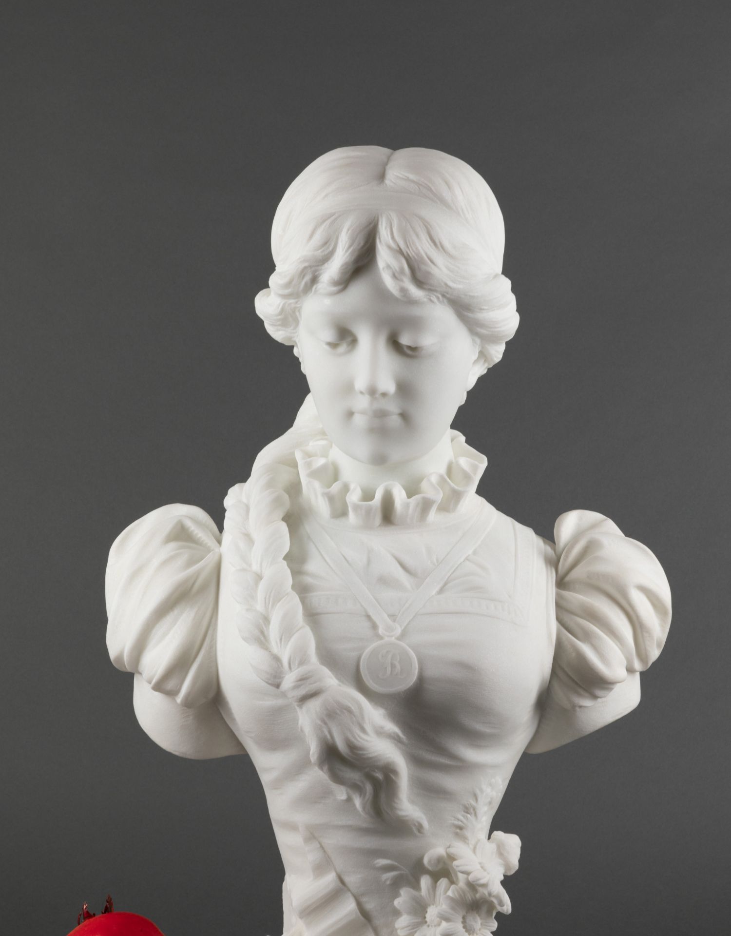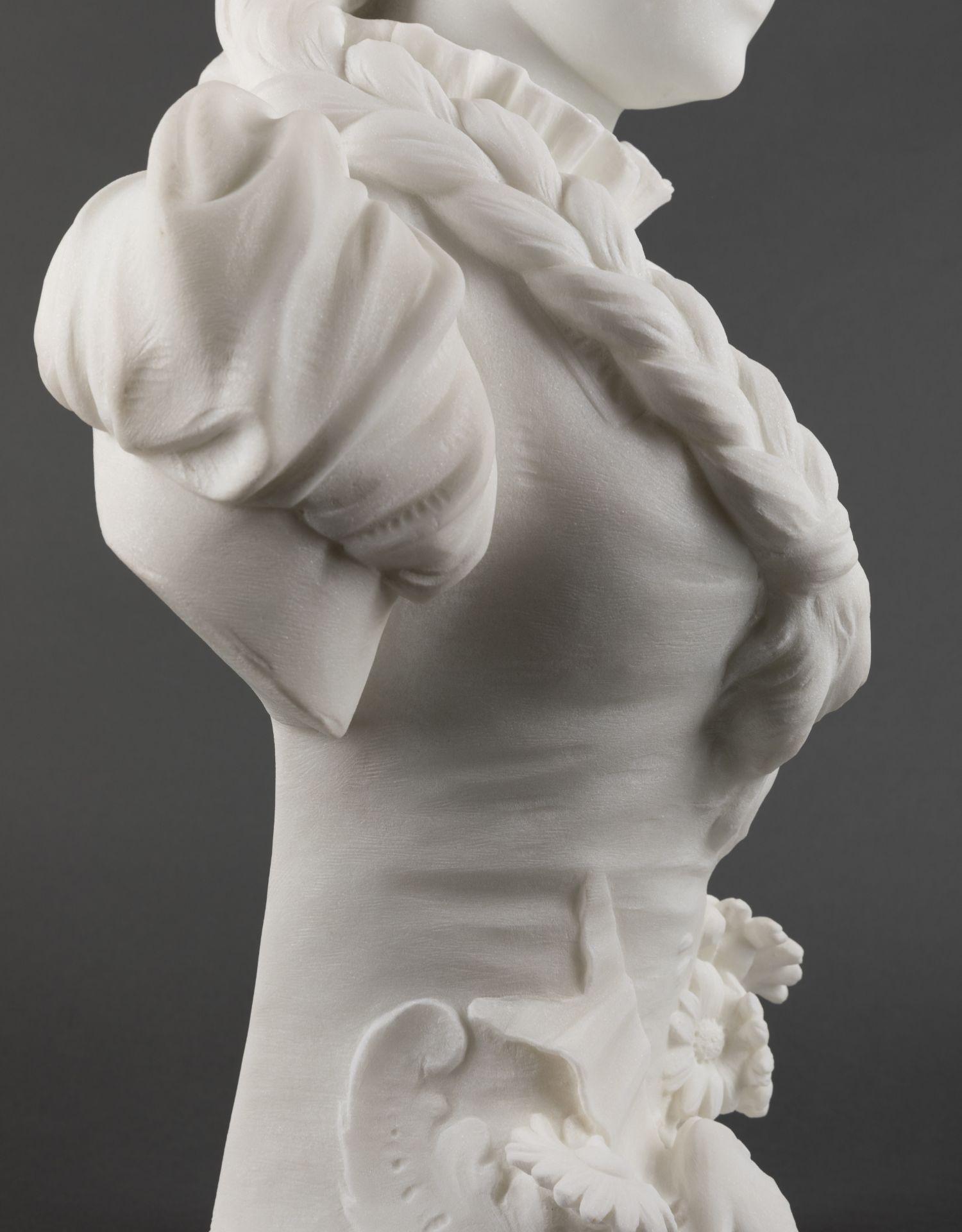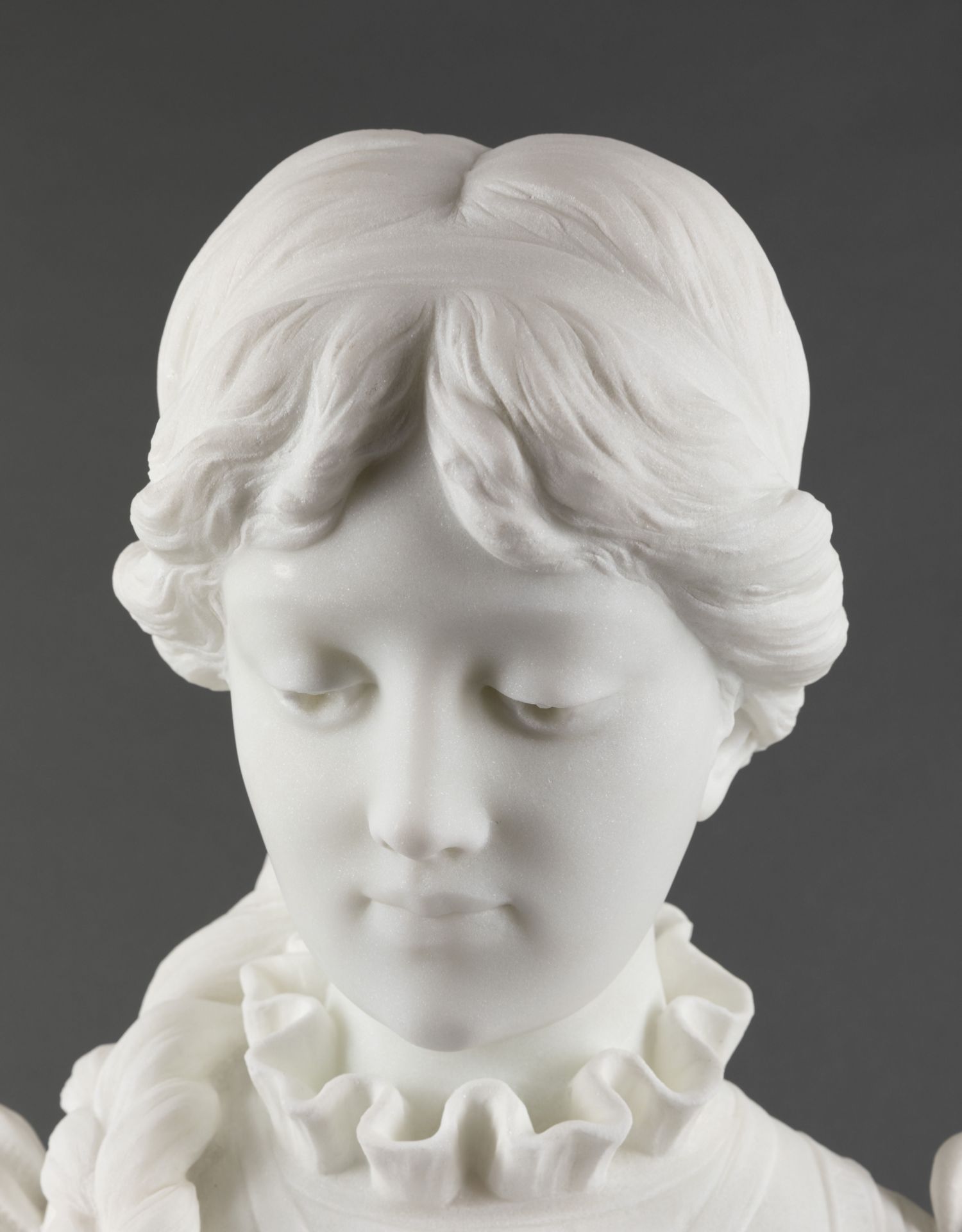 独角鹿西洋古董A.FRILLI签名梳辫子的女孩卡拉拉大理石半身雕塑
