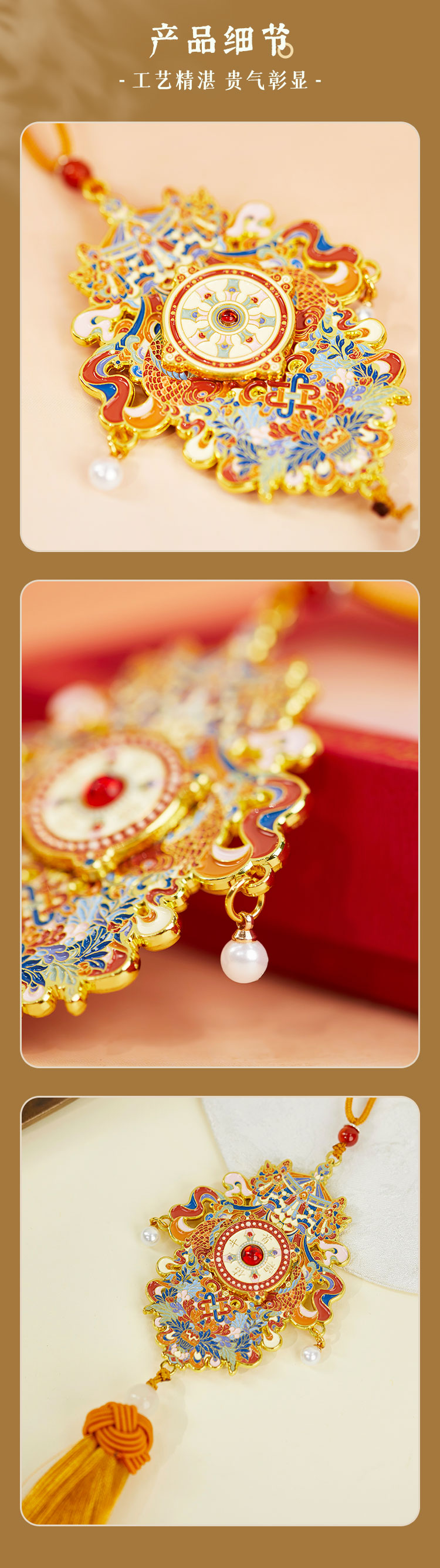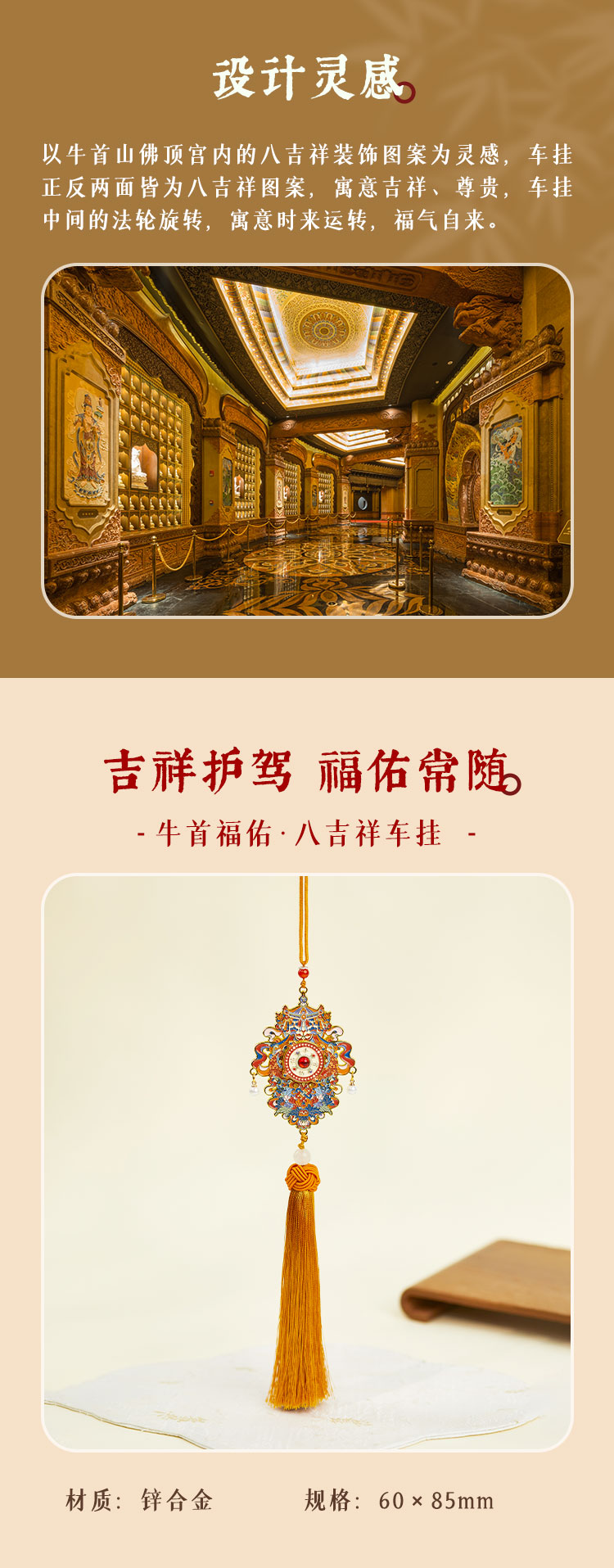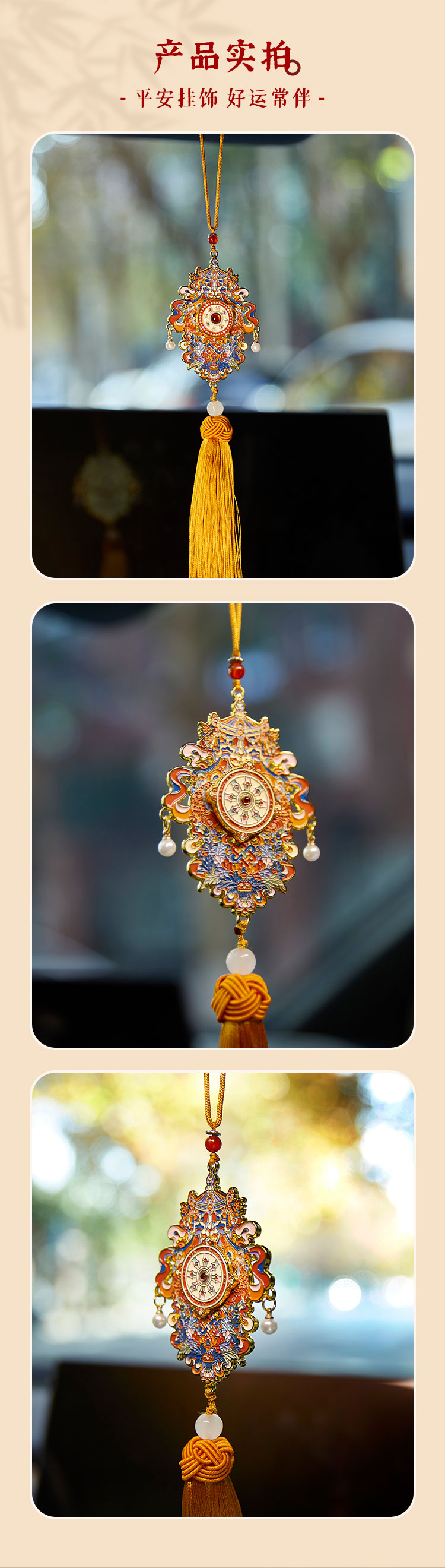 牛首山文创牛首福佑八吉祥车挂精致复古吉祥车载挂饰金色中式风格