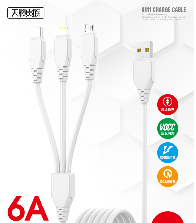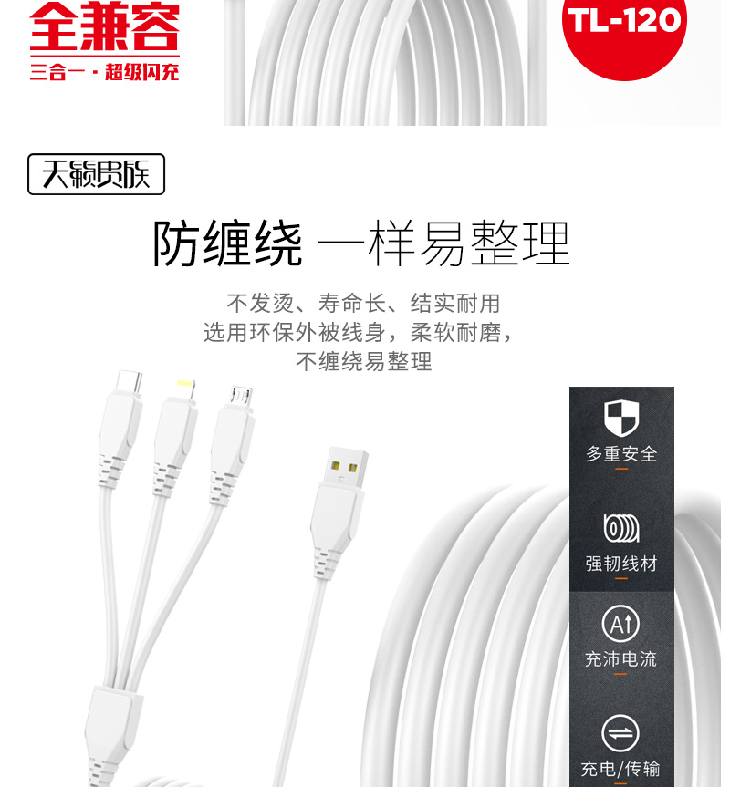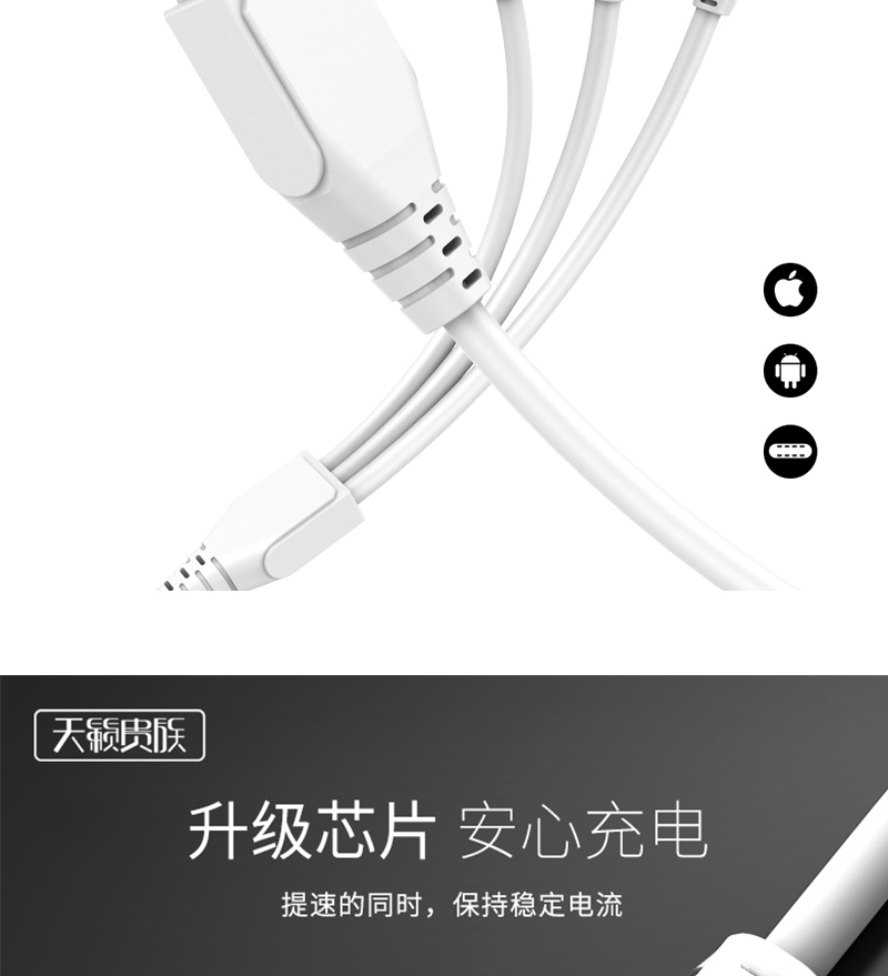 声顿品牌 金属 1拖3 一分三手机数据线一分3数据线 3合1数据线