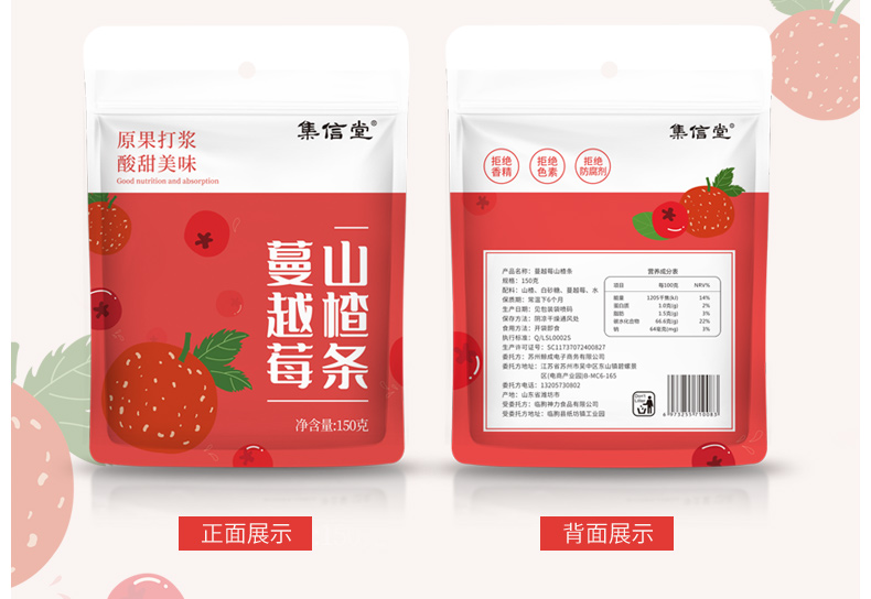 酸甜绵密,口感沙沙~集信堂蔓越莓山楂条 健康小零食 酸甜可口 150g/袋
