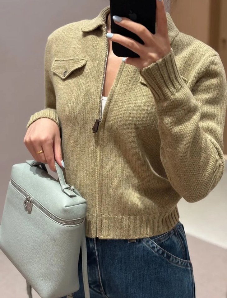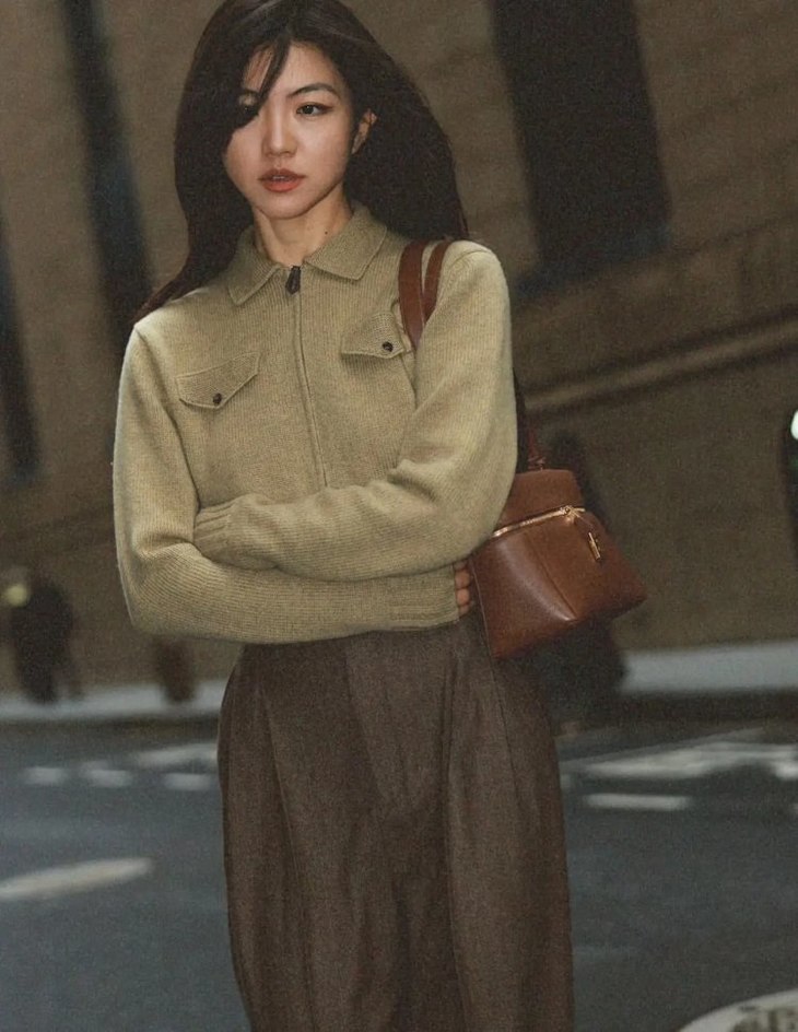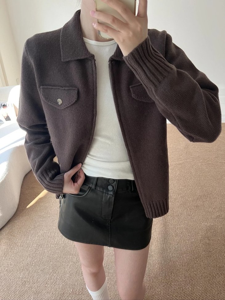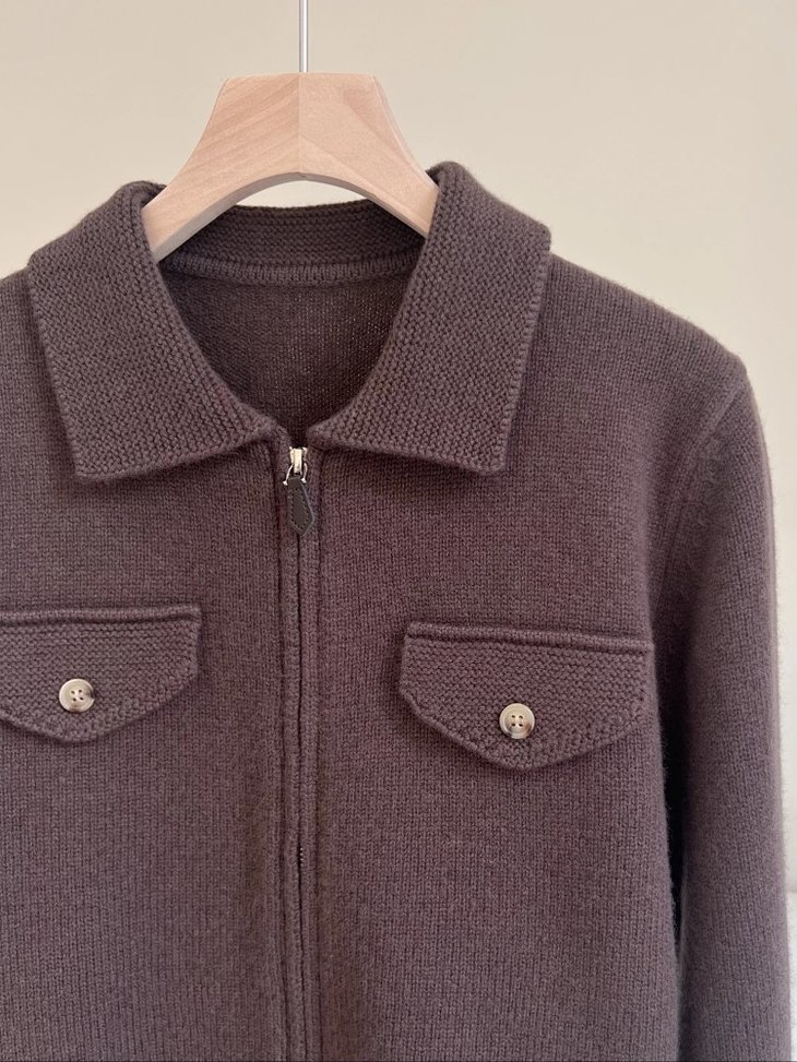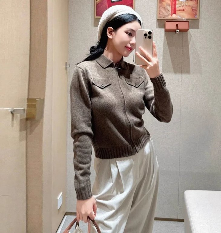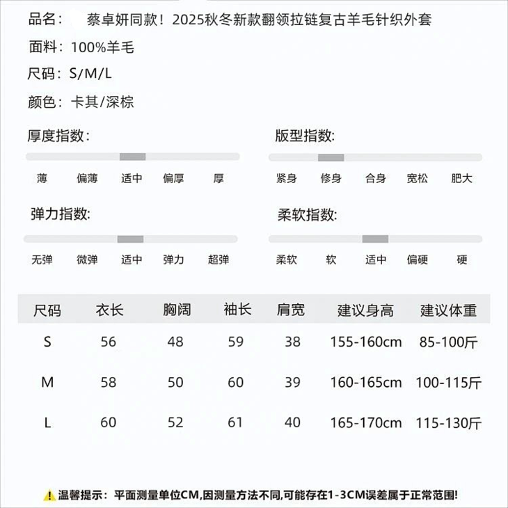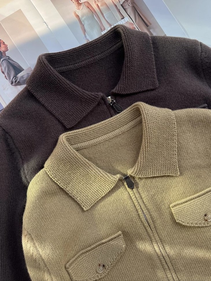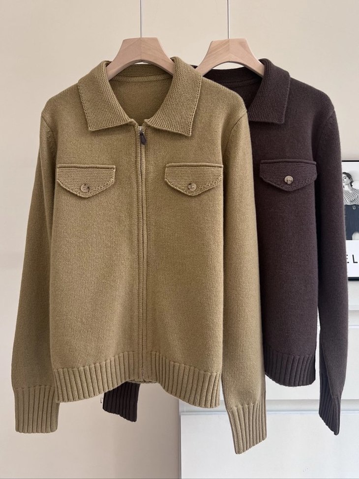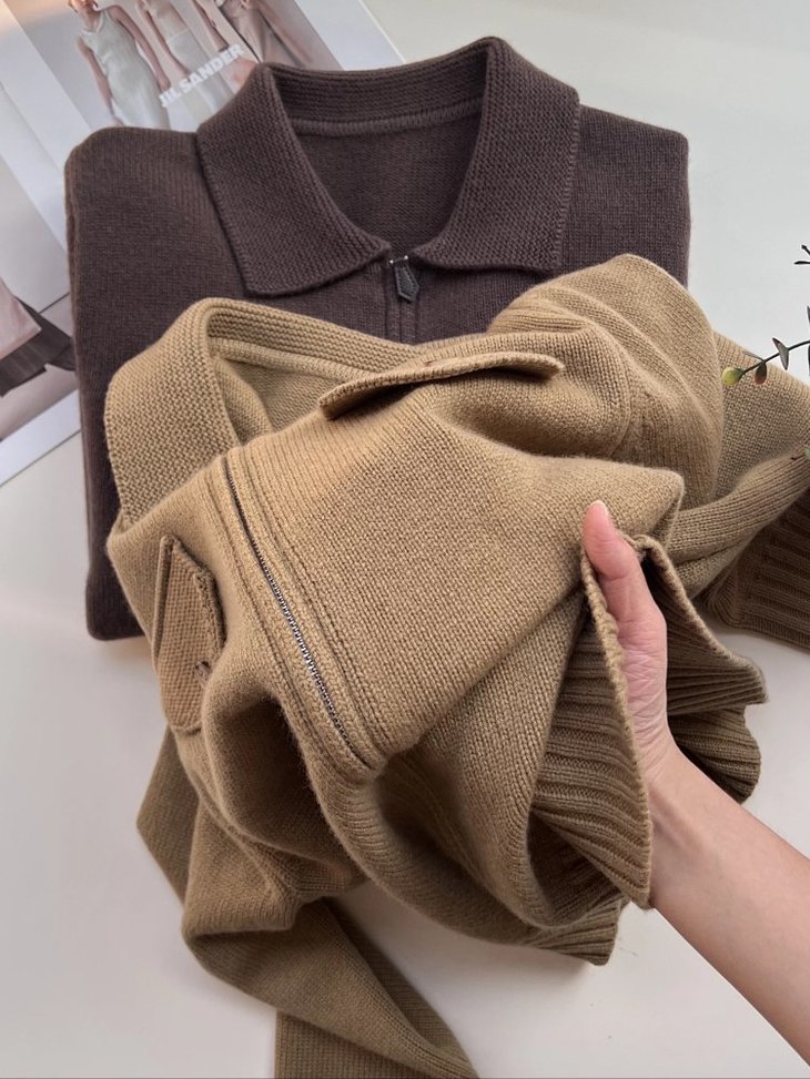 蔡卓妍同款【高奢感老钱风翻领拉链复古羊毛针织外套】2色可选~甄选100%羊毛,纤维柔糯细腻,亲肤性与垂坠感兼备,姐妹们闭眼入WD