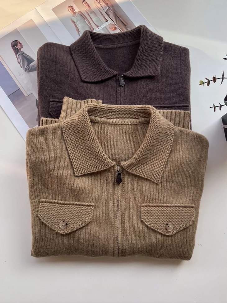 【品名】高奢感老钱风翻领拉链复古羊毛针织外套82118