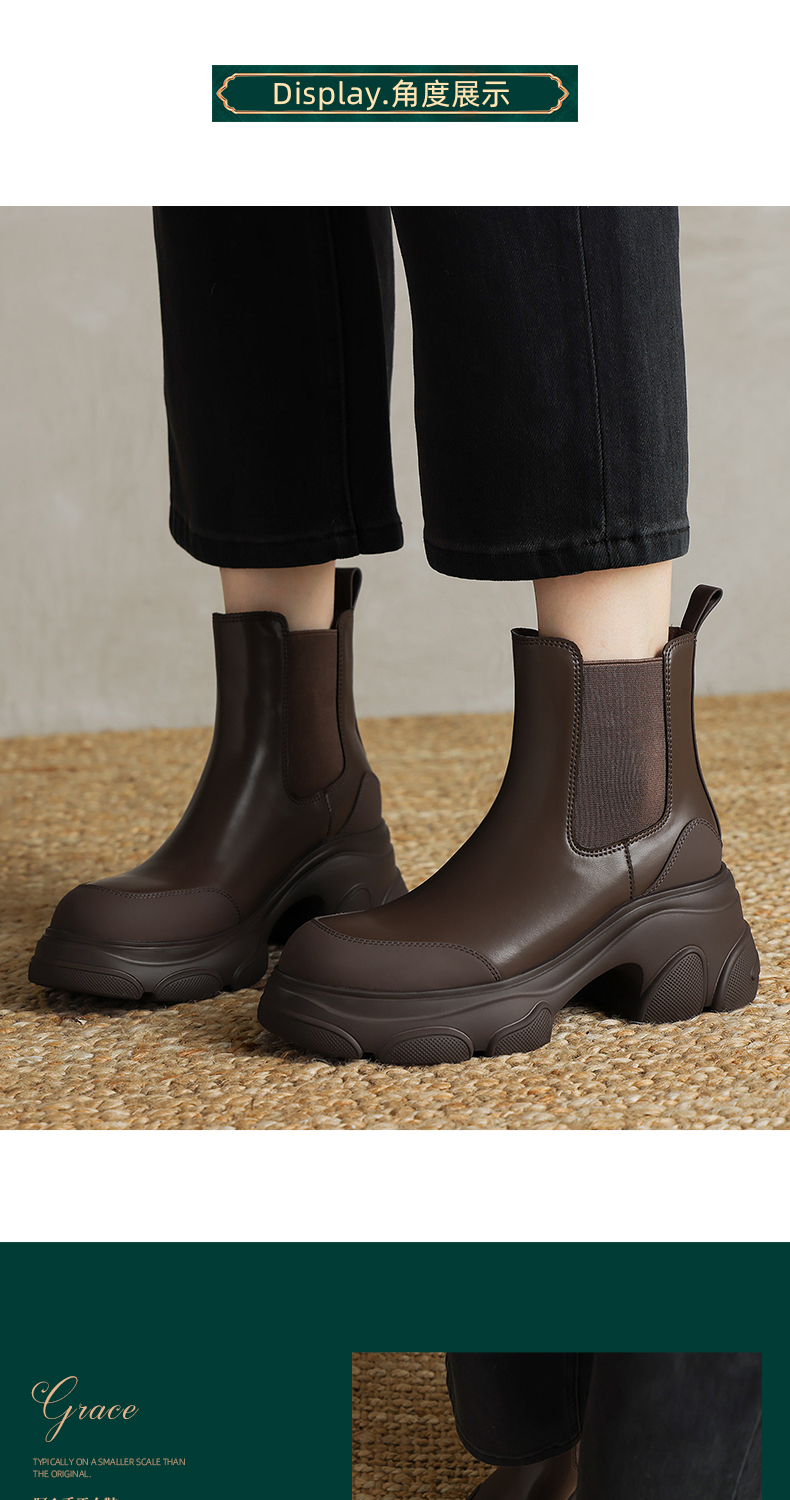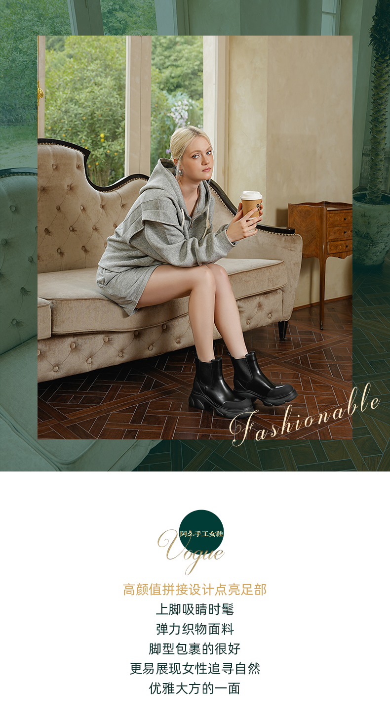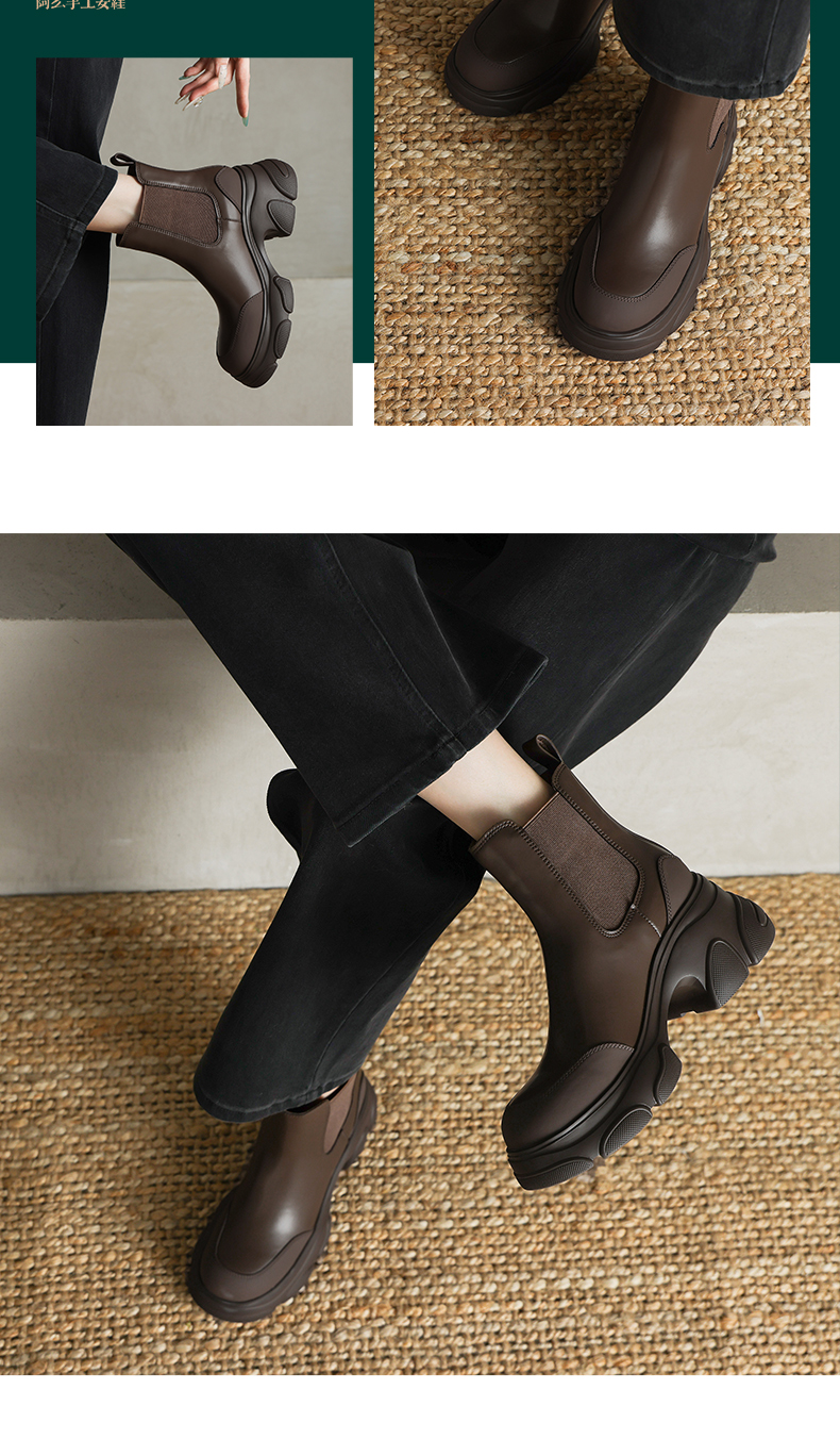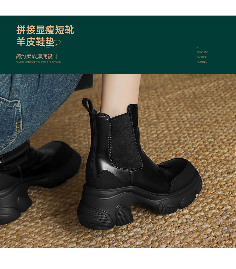 阿么手工女鞋低帮厚底切尔西靴冬季新款女英伦风舒适休闲短靴7CM