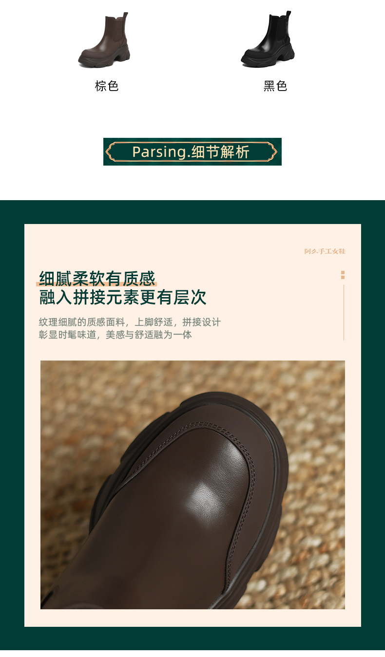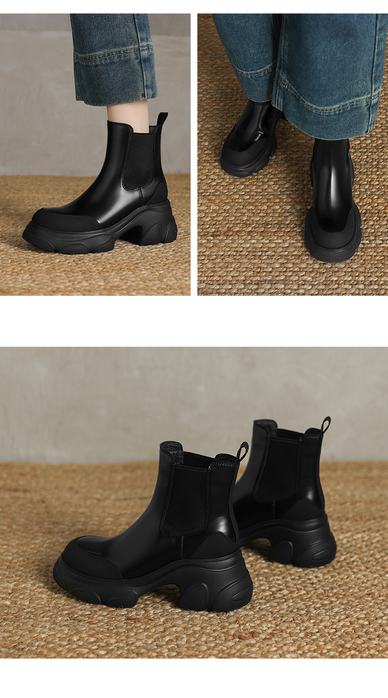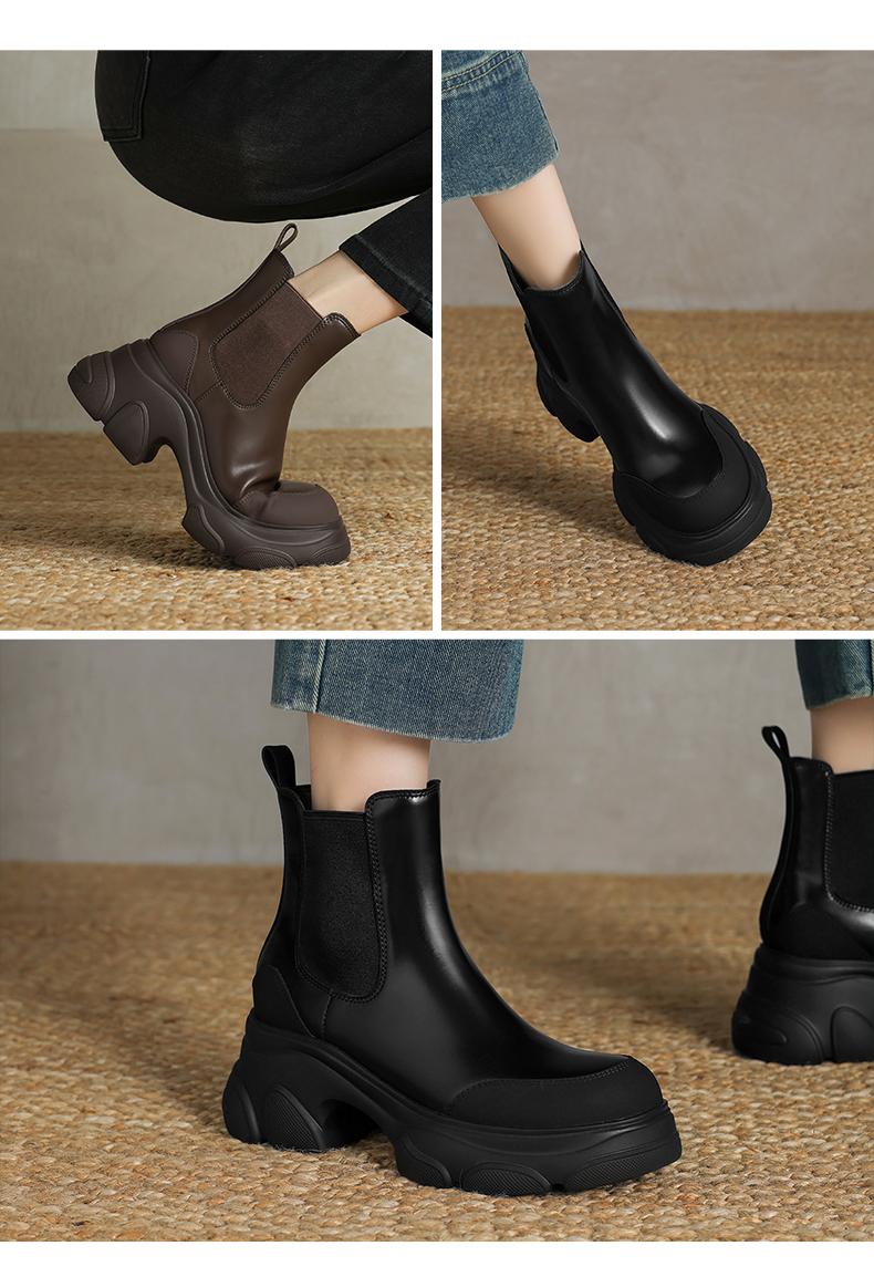 阿么手工女鞋低帮厚底切尔西靴冬季新款女英伦风舒适休闲短靴7CM