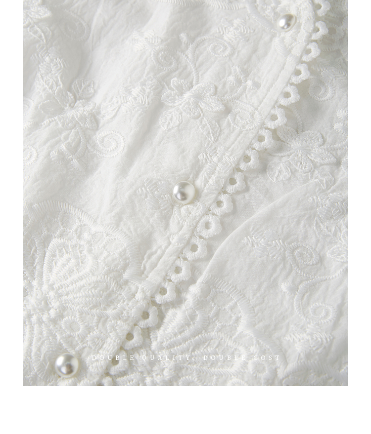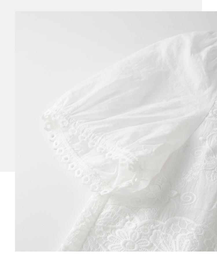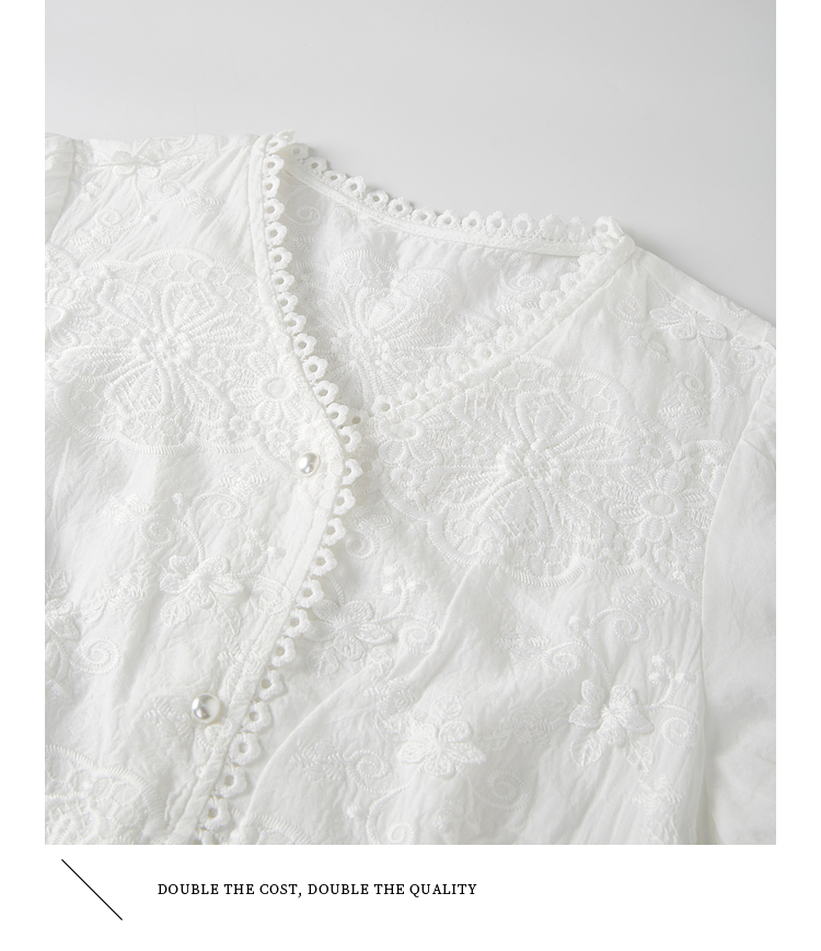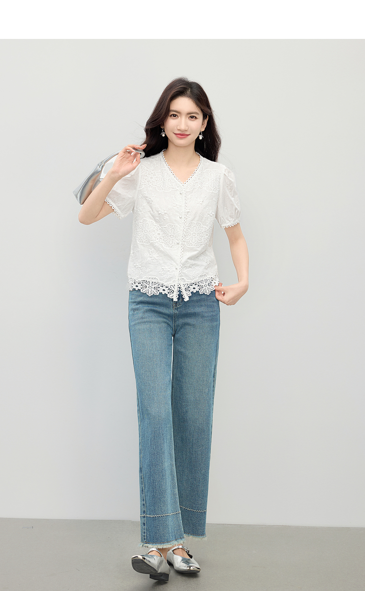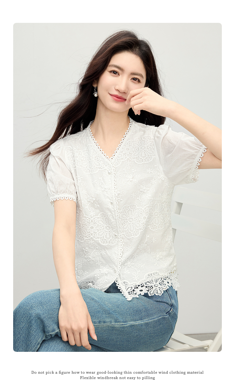 熙世界法式白色蕾丝衫女夏季2025新款设计感下摆花边拼接V领上衣