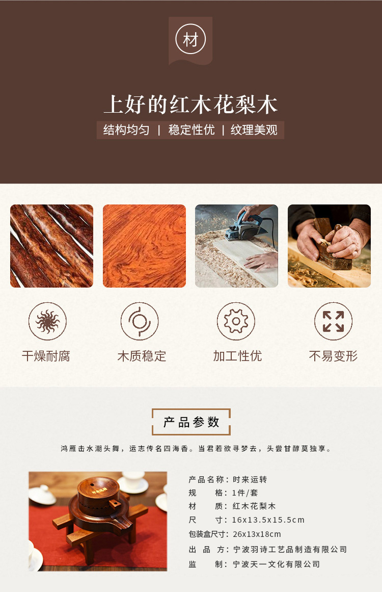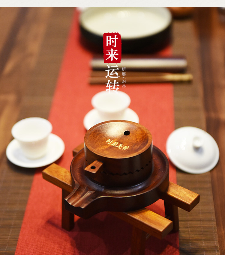 天一书局出品 时来运转石磨工艺品 红木手工家居摆件