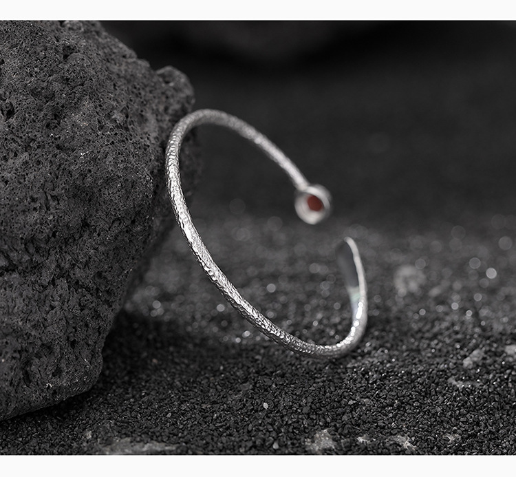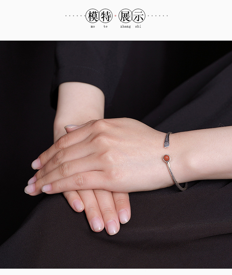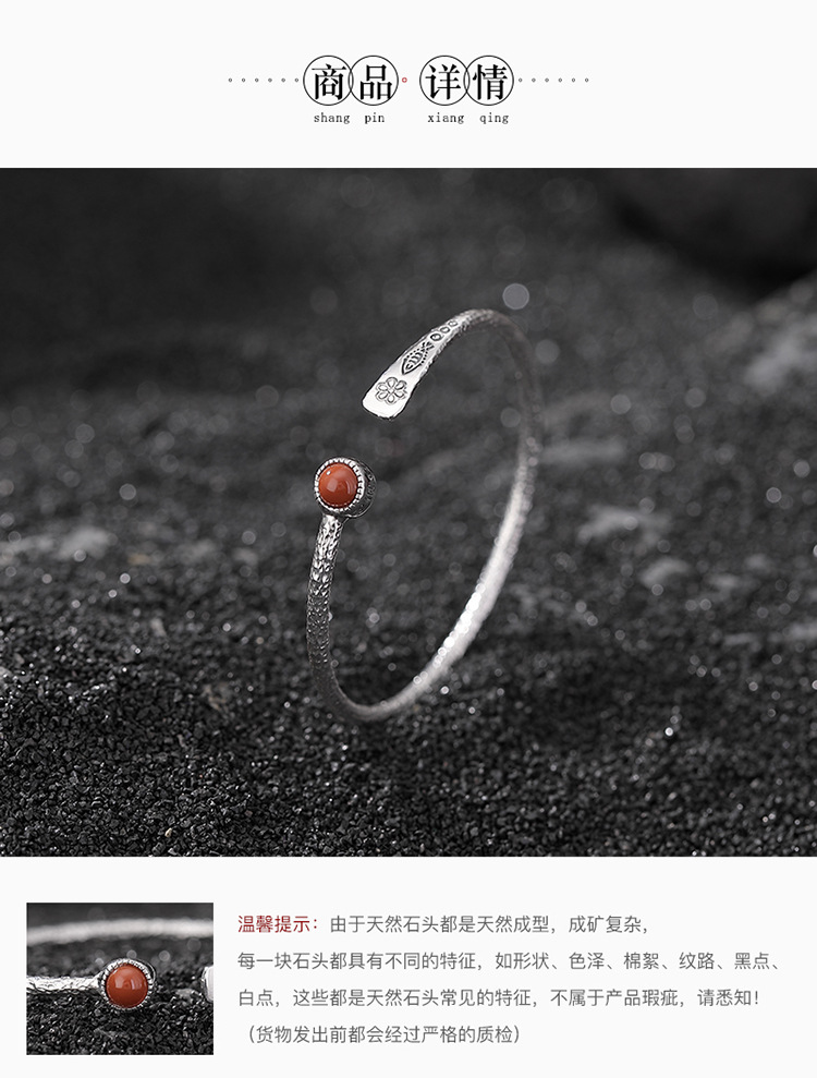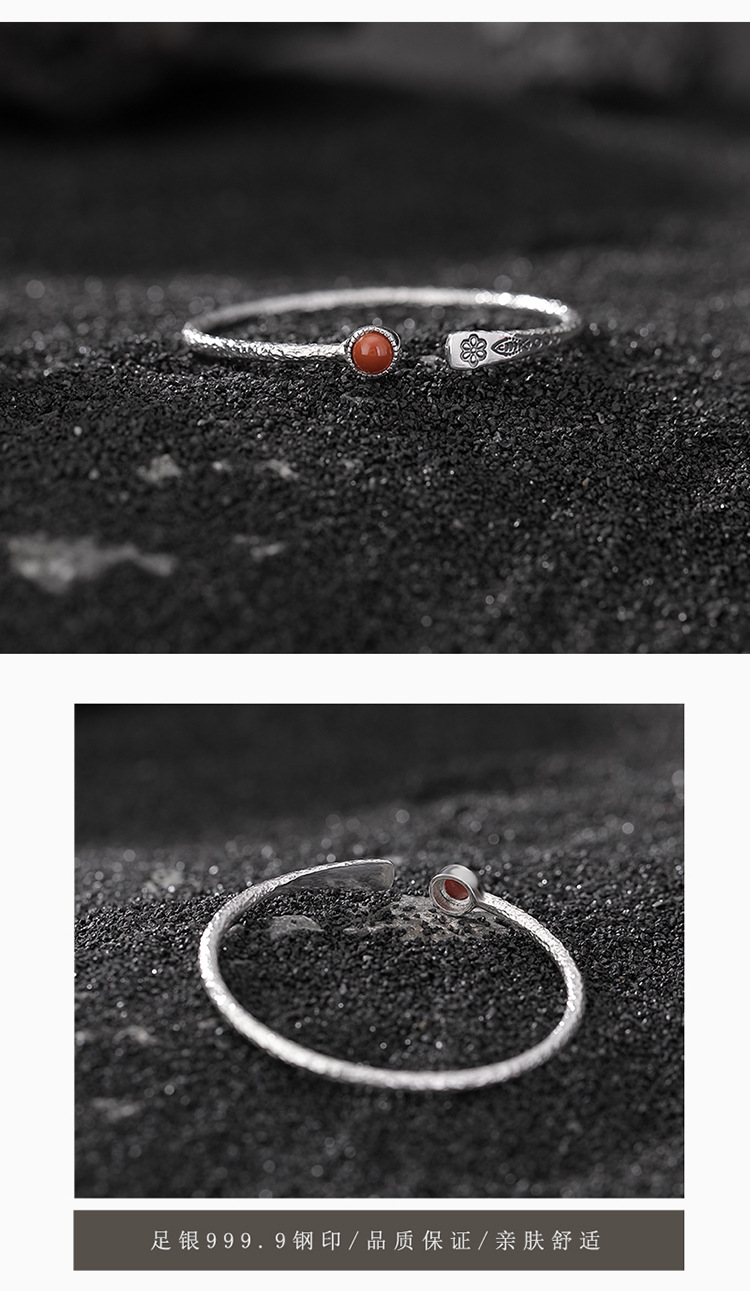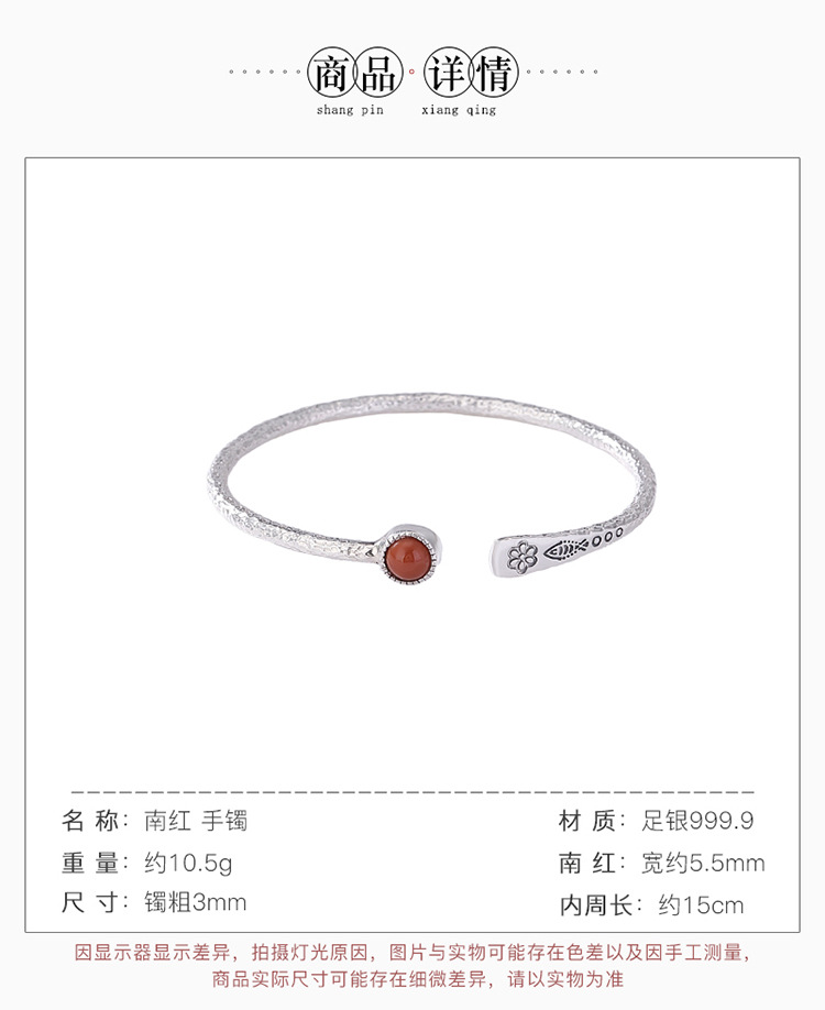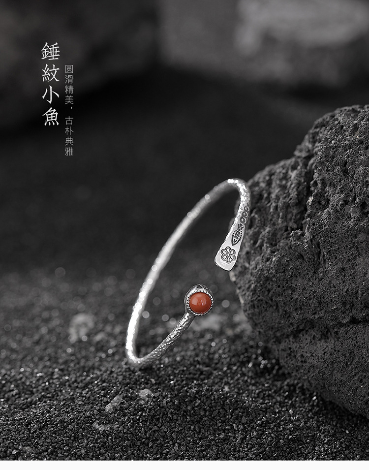 【锤纹小鱼】S999.9足银南红玛瑙开口手镯【CW-SZ01999】