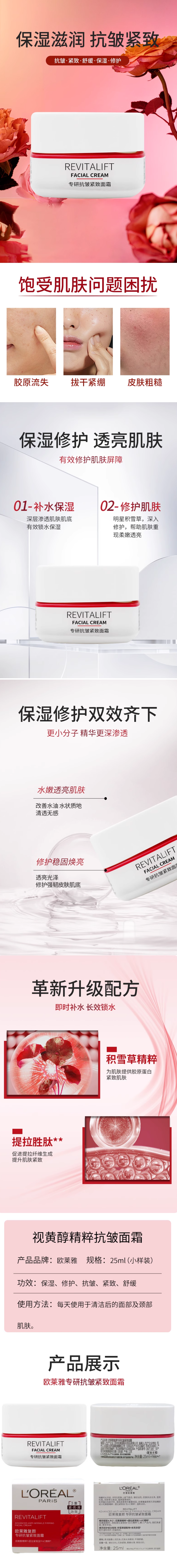 【45元会员福利】欧莱雅复颜专研抗皱紧致面霜25ml(中小样)