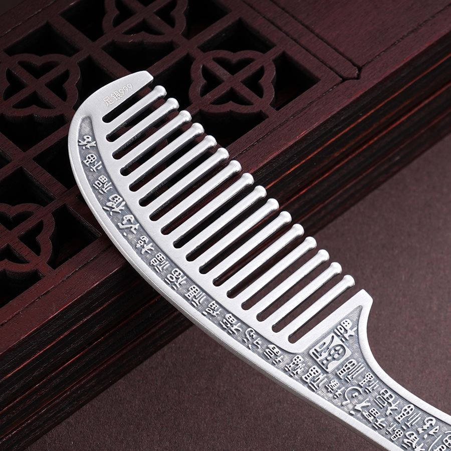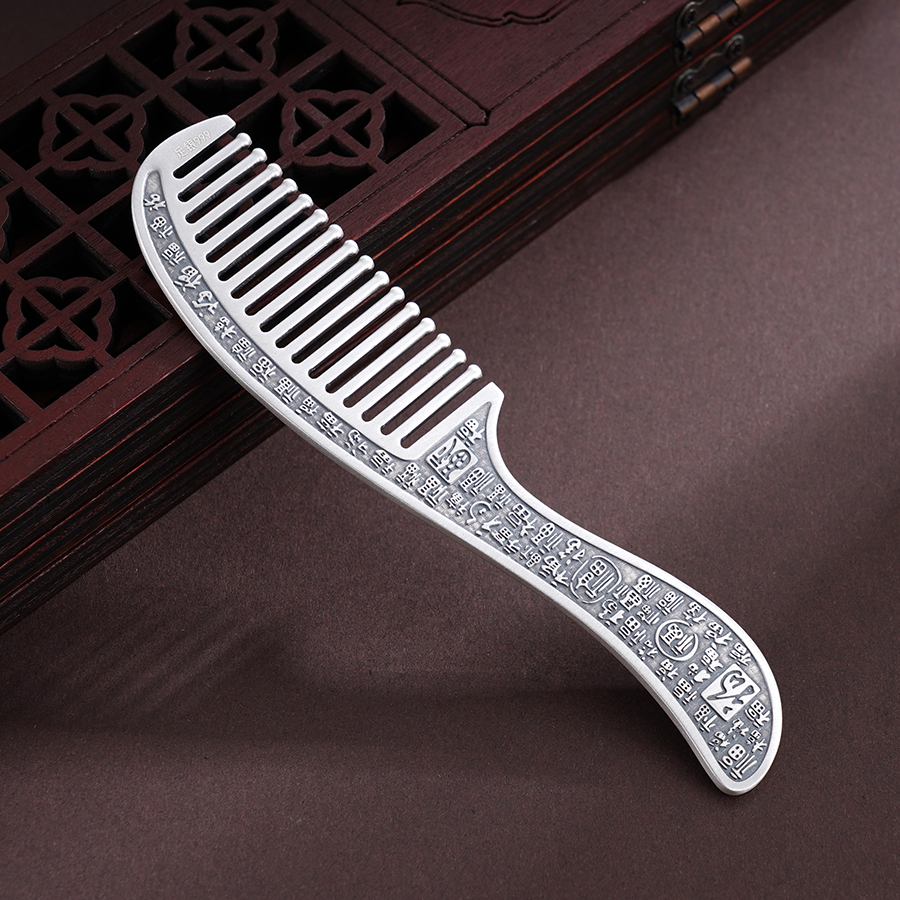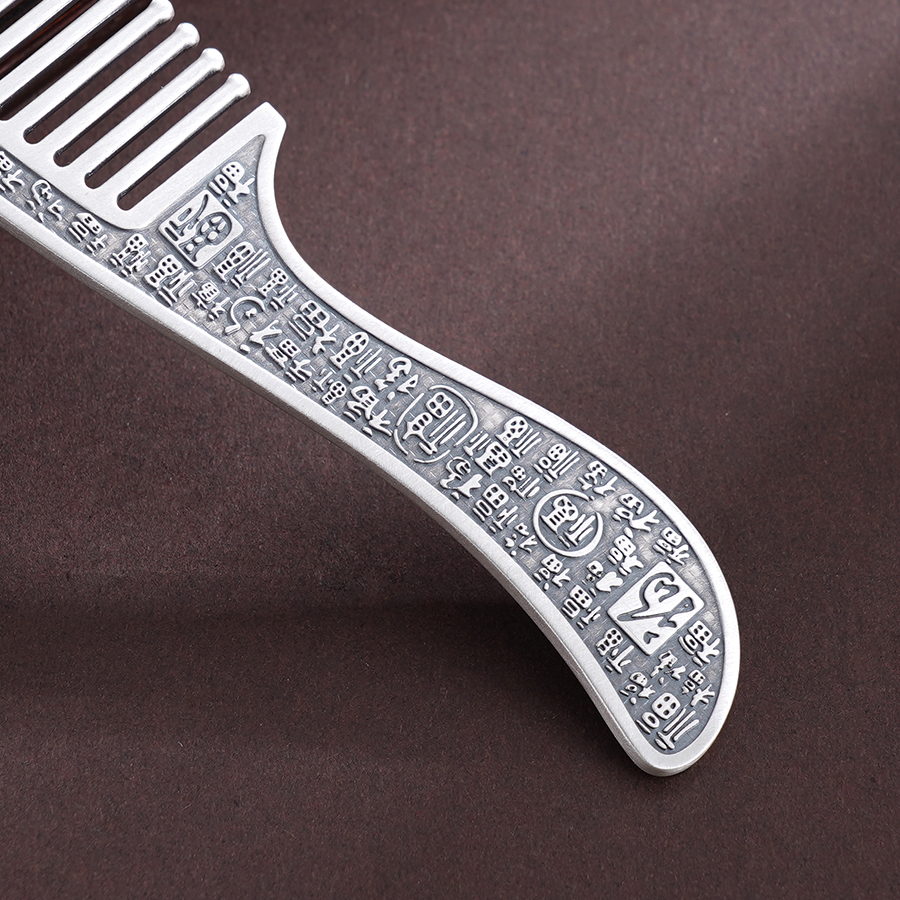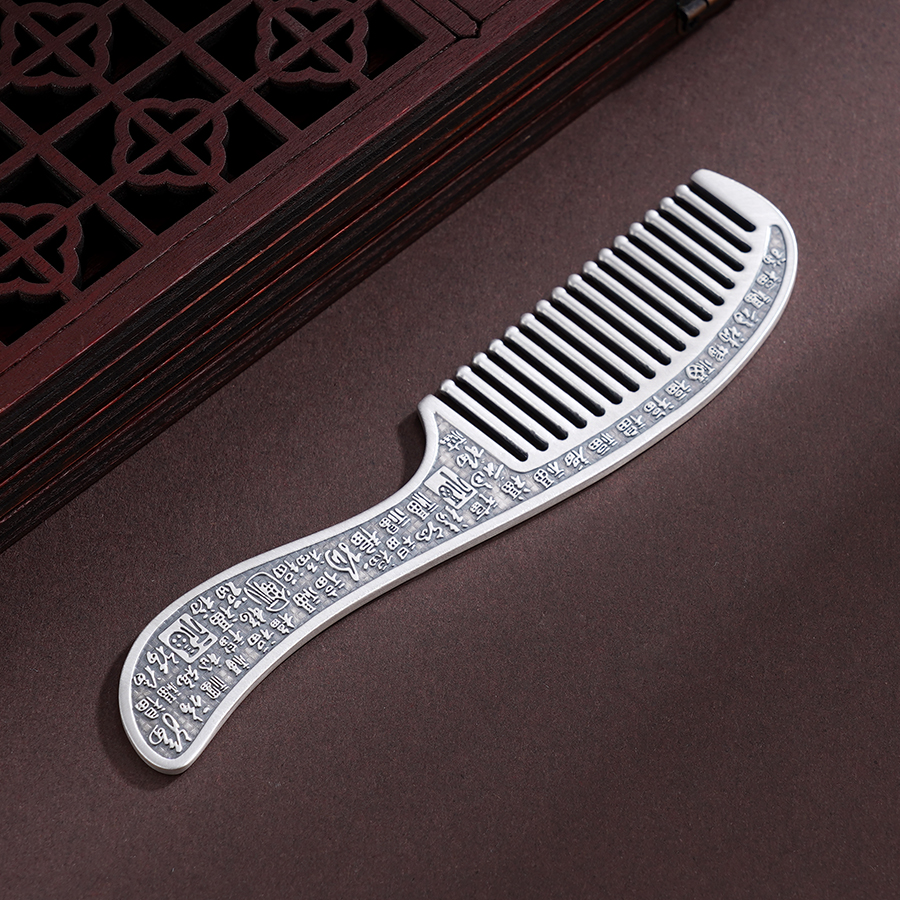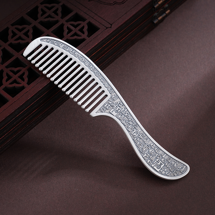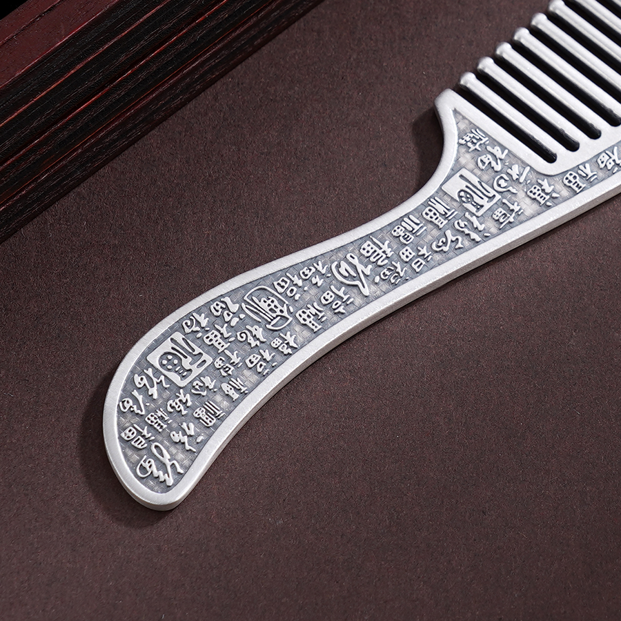 【寓意】:百福银梳,除梳齿外,周身錾刻百福图腾,古朴典雅,福韵悠长。每梳一次,祥瑞留存,福泽满盈。