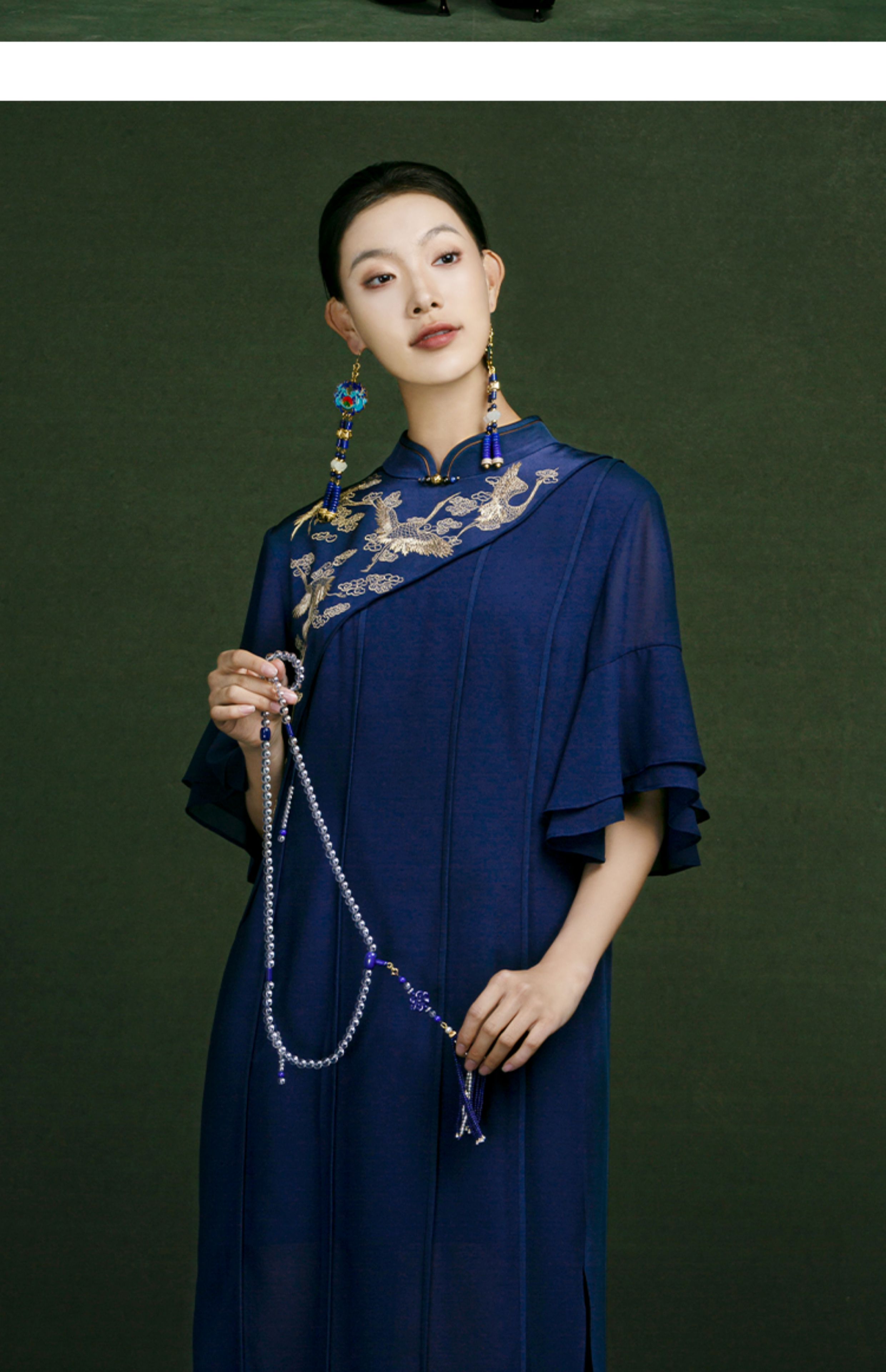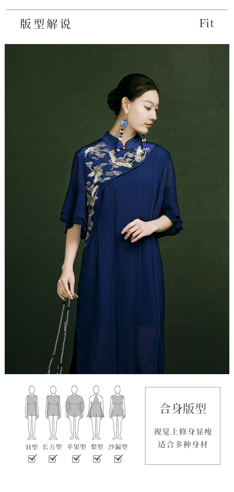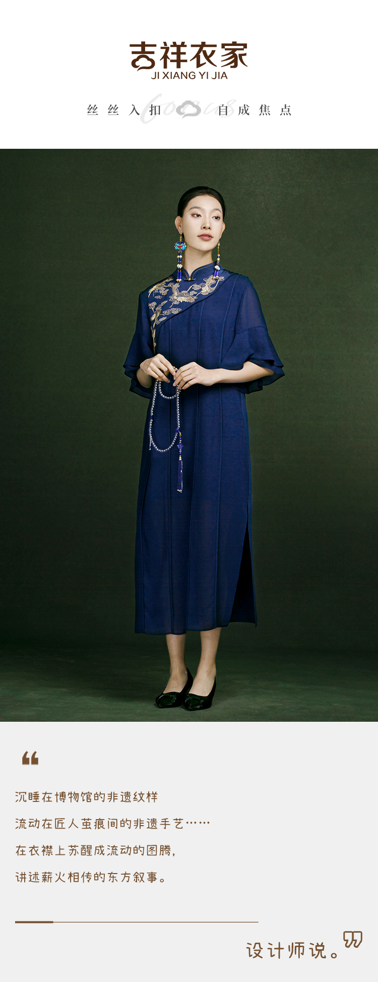 吉祥衣家新中式国风高定真丝高端气质显瘦修身女装楼笙连衣裙