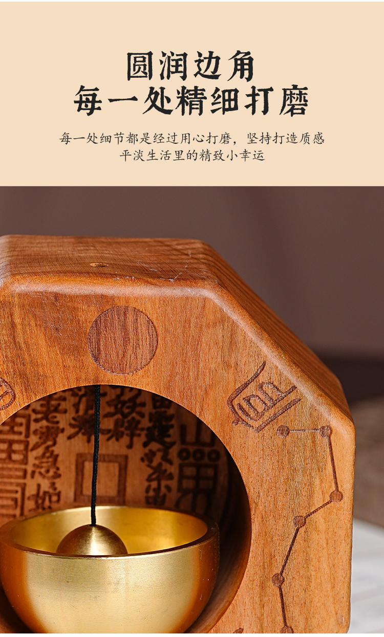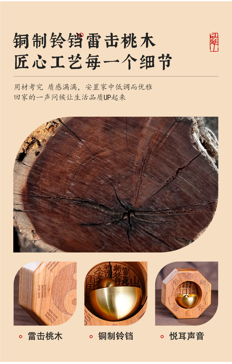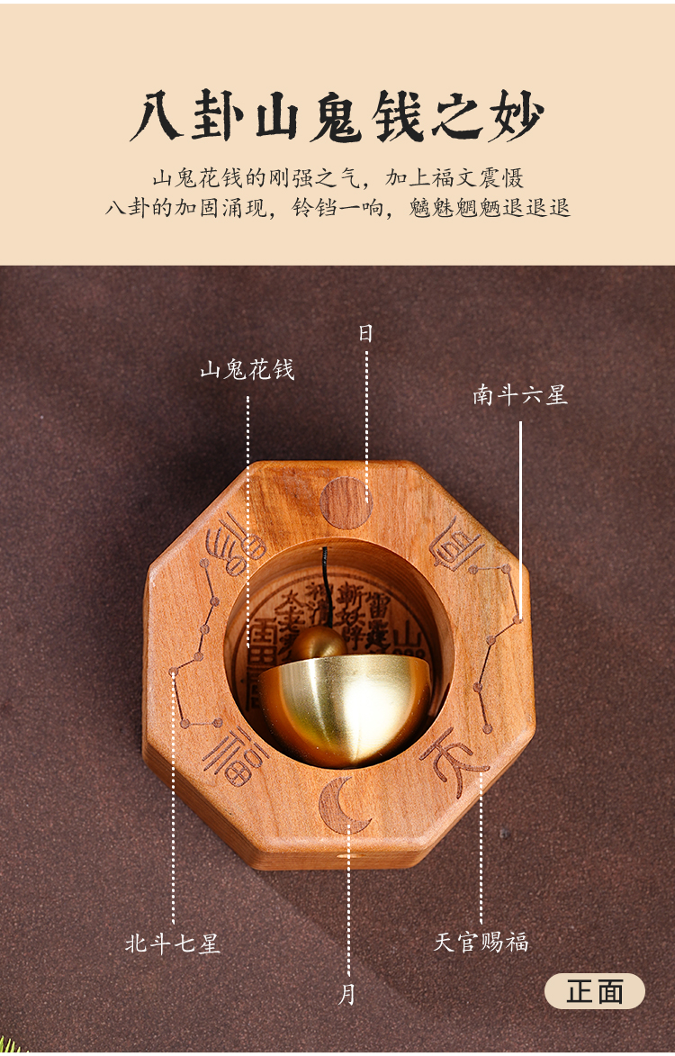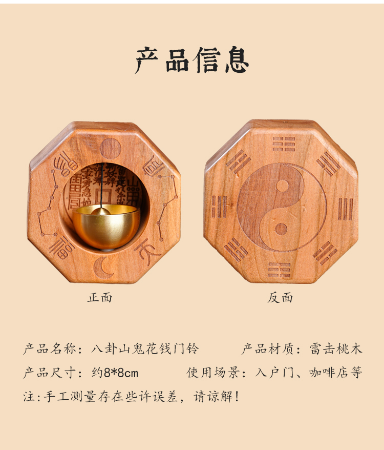 雷桃木山gui花钱铃铛门挂木雕太极八gua复古门铃家居摆件