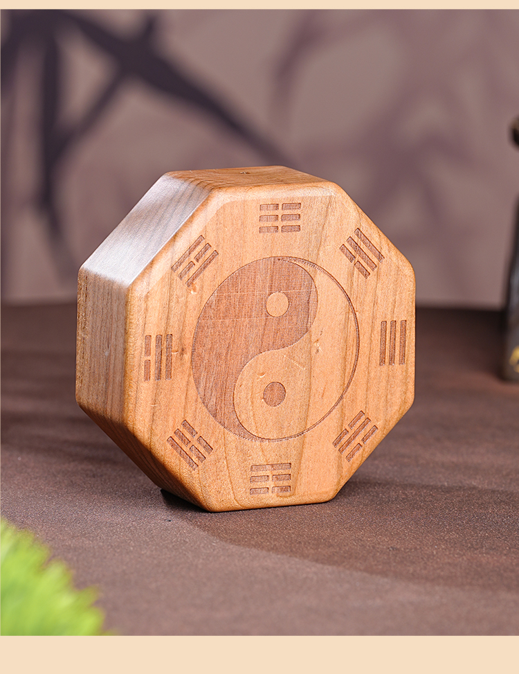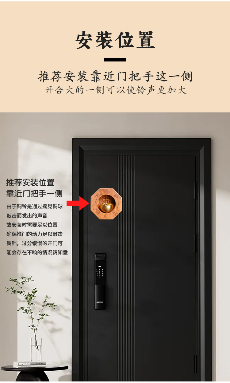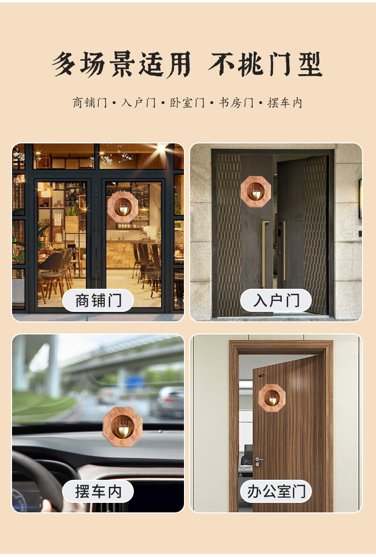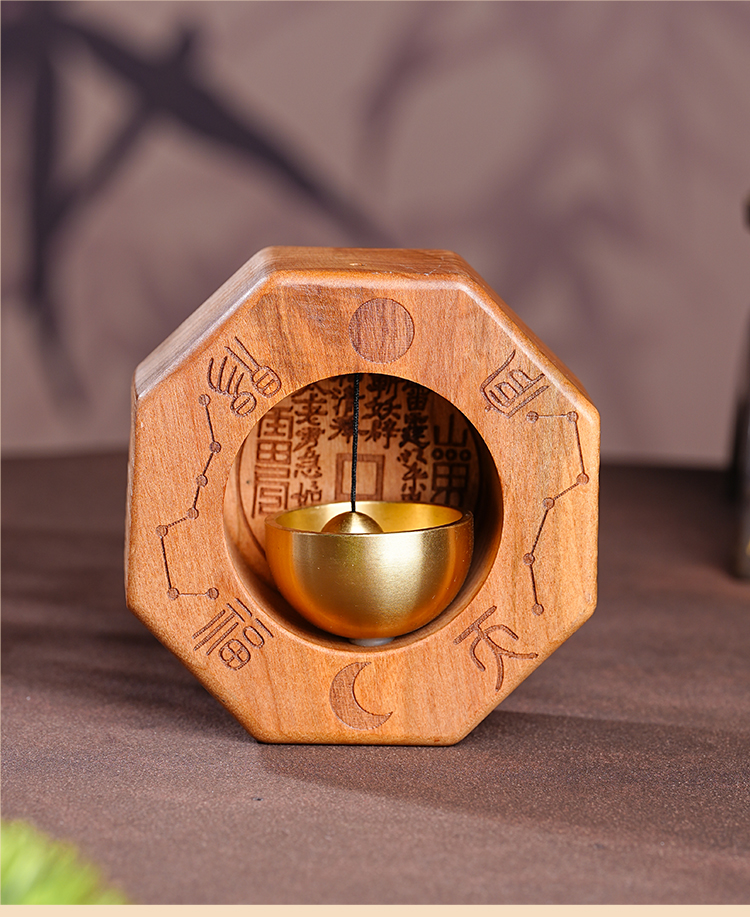 雷桃木山gui花钱铃铛门挂木雕太极八gua复古门铃家居摆件