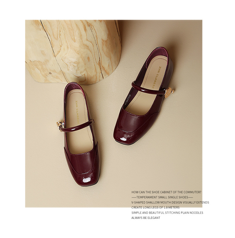 ZHR法式复古浅口方头小皮鞋2024春夏新款百搭外穿玛丽珍鞋配裙子