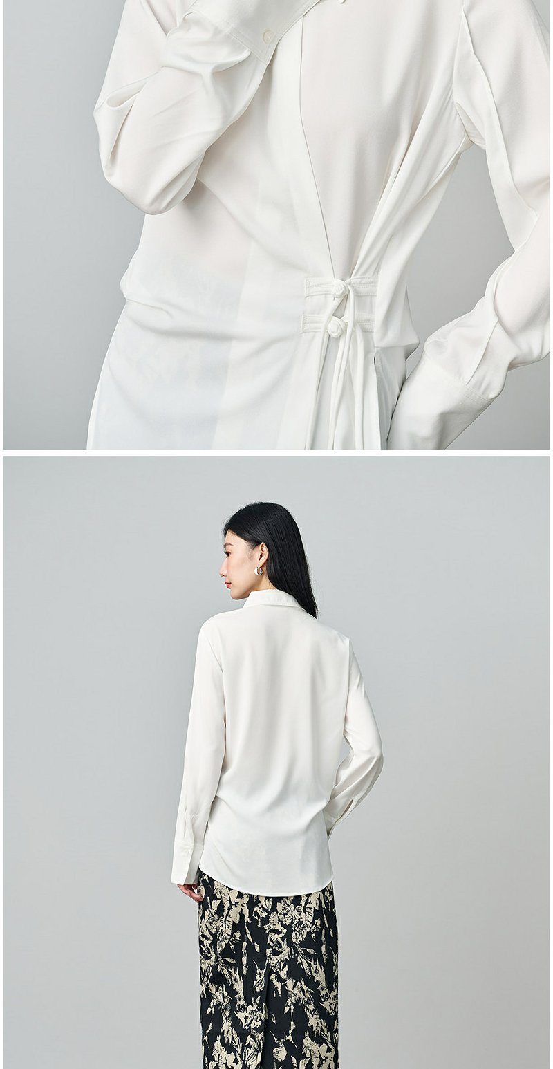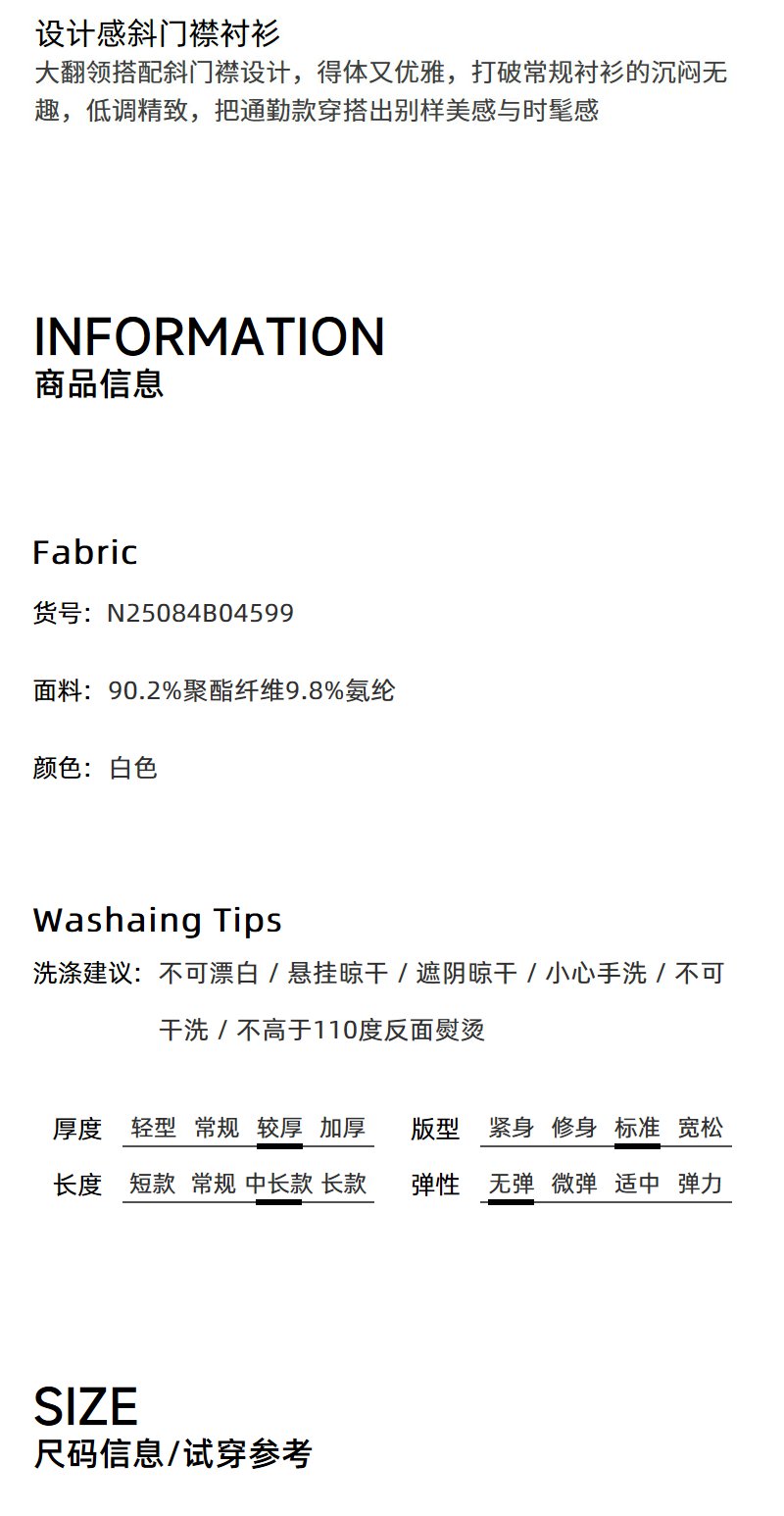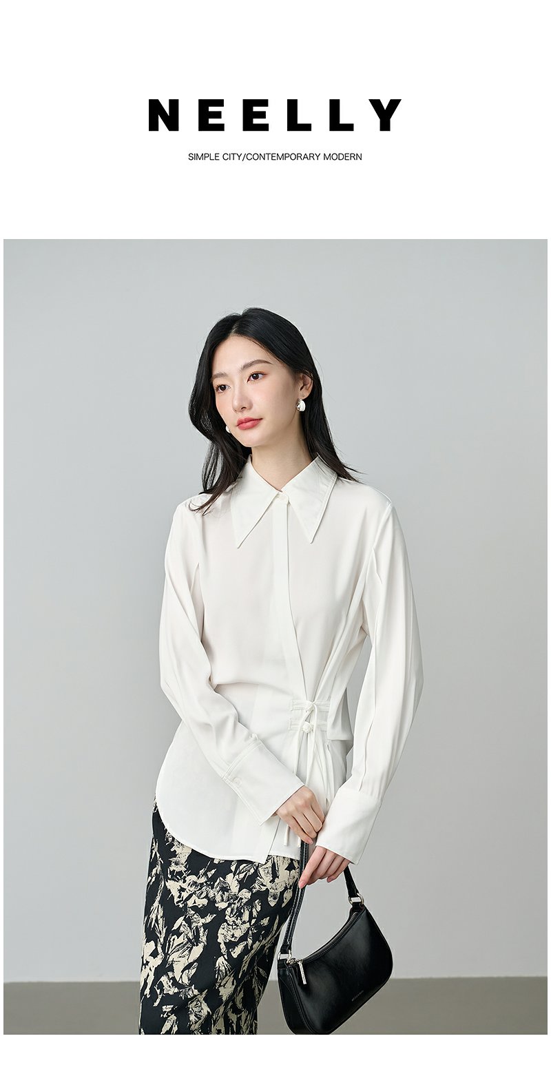 NEELLY纳俪商场同款秋季新款设计感斜门襟收腰长袖衬衫女显瘦上衣N25084B04599