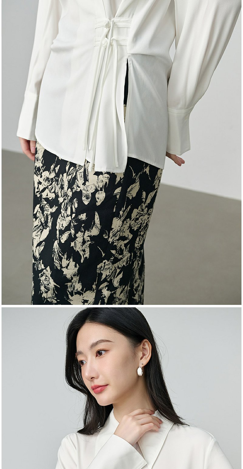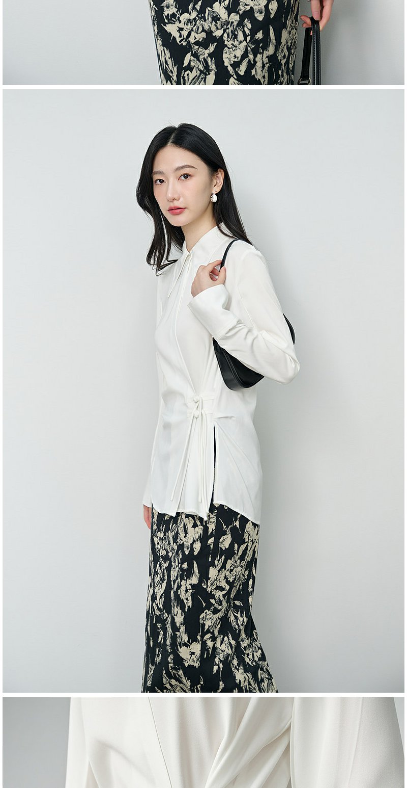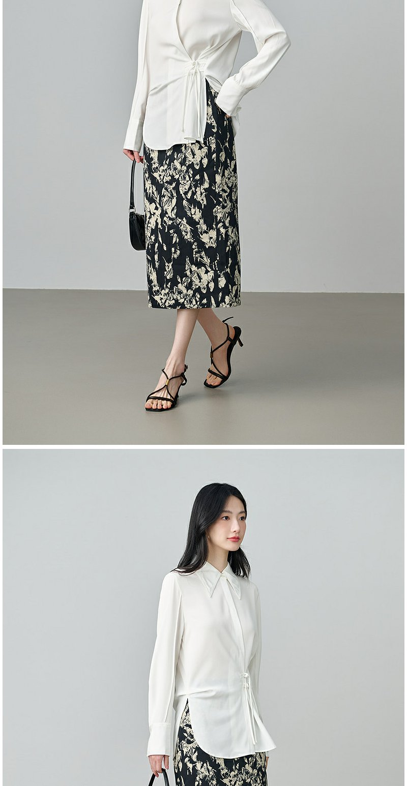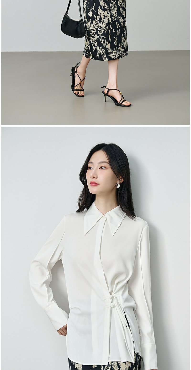 NEELLY纳俪商场同款秋季新款设计感斜门襟收腰长袖衬衫女显瘦上衣N25084B04599