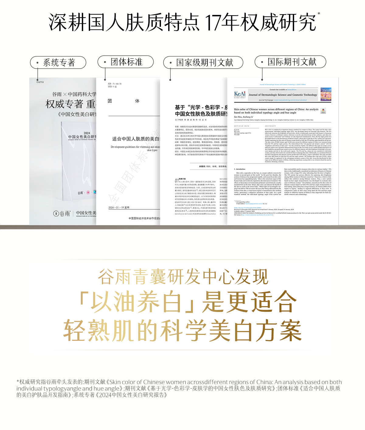 - 谷雨,更适合中国人肤质的植萃美白。专研中华珍稀美白植萃光甘草定,深入研究中国人肤质特点,打造中国女性独有的仙气白。