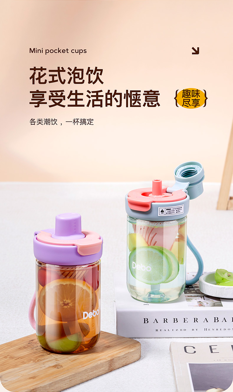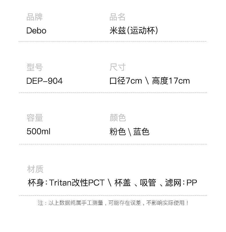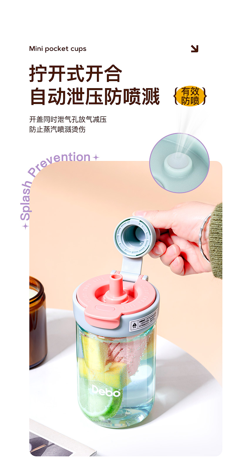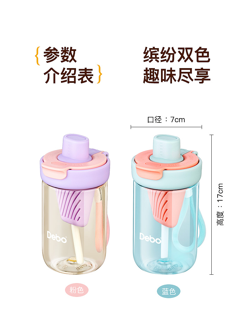 Debo德铂米兹/摩卡运动休闲杯 tritan母婴级别材质.-盖双饮茶水分离 大容量塑料杯500ML/850ML可 分享选