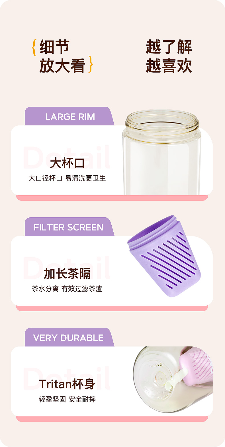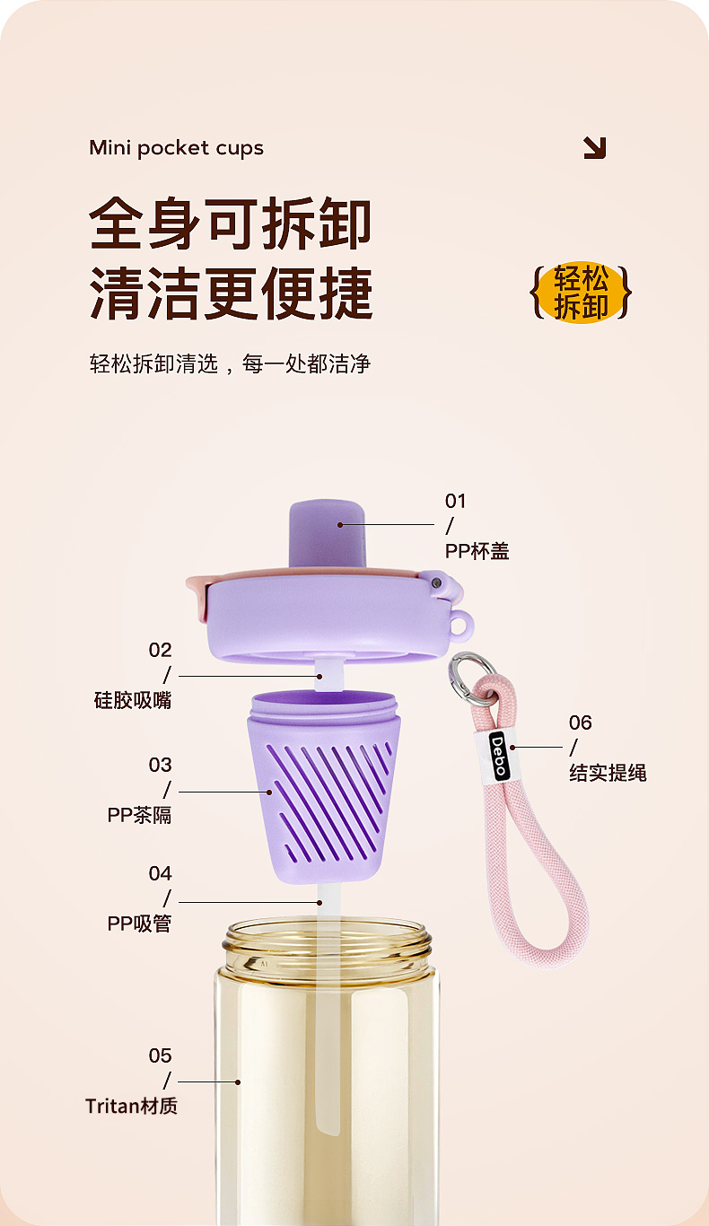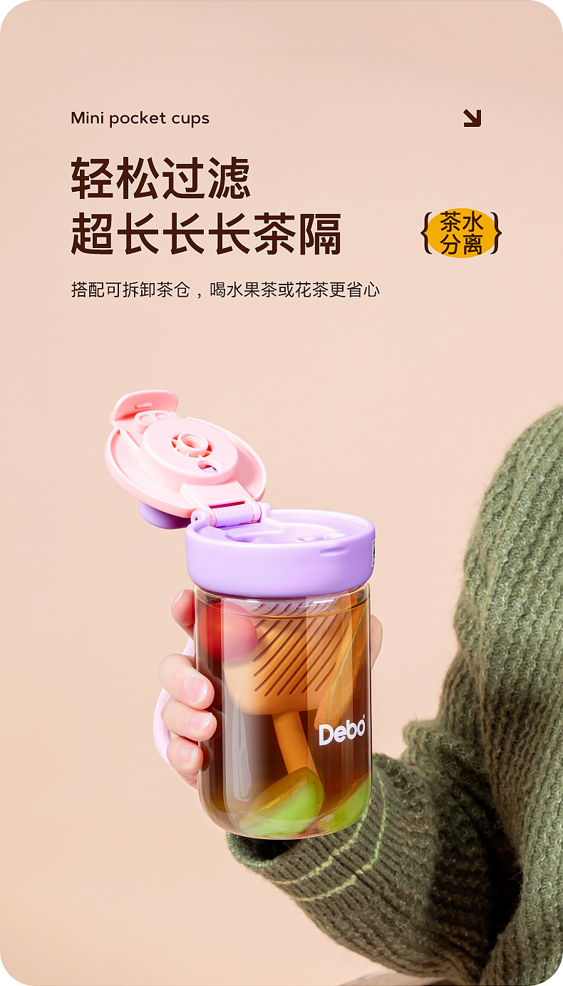 Debo德铂米兹/摩卡运动休闲杯 tritan母婴级别材质.-盖双饮茶水分离 大容量塑料杯500ML/850ML可 分享选