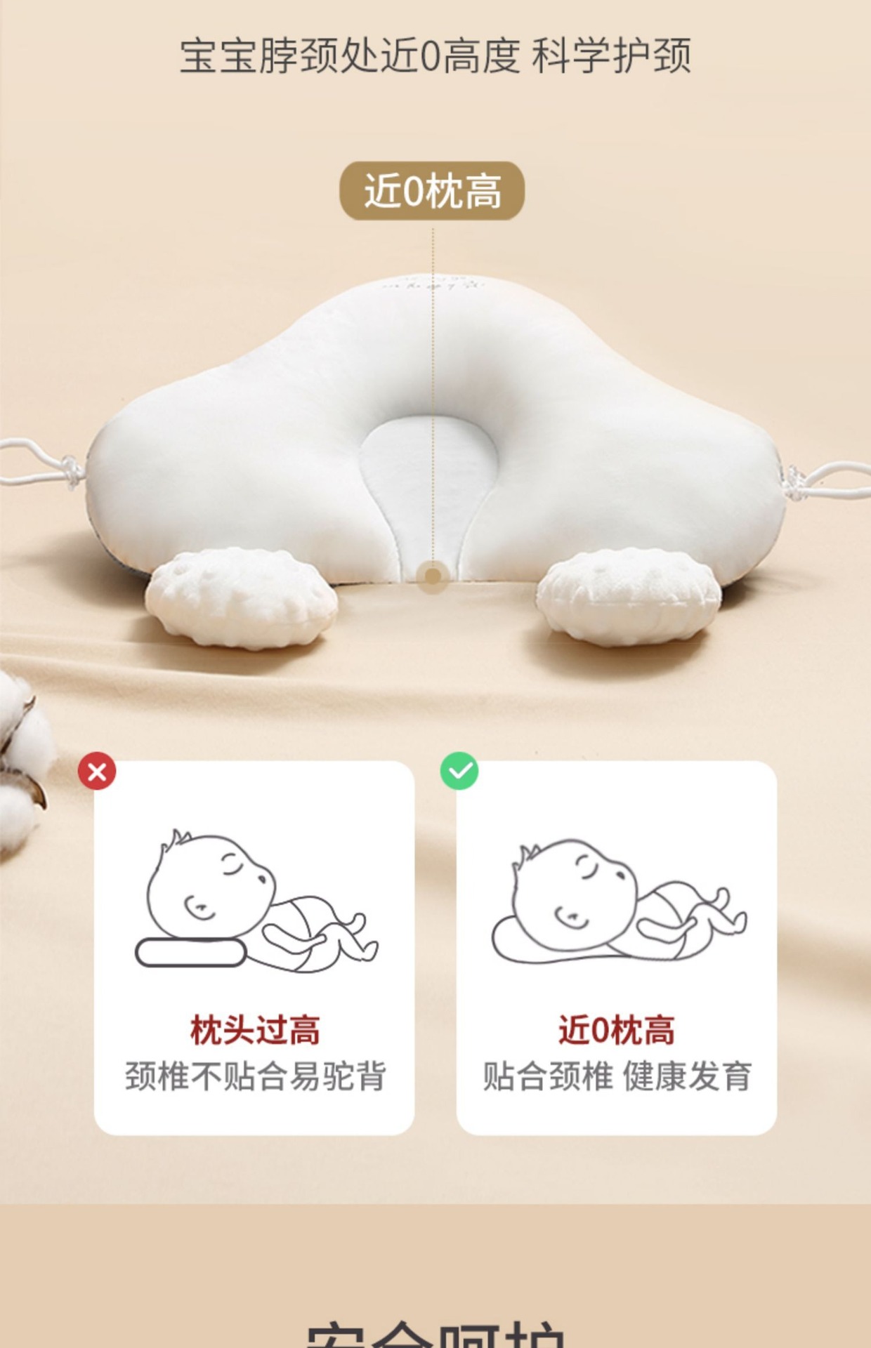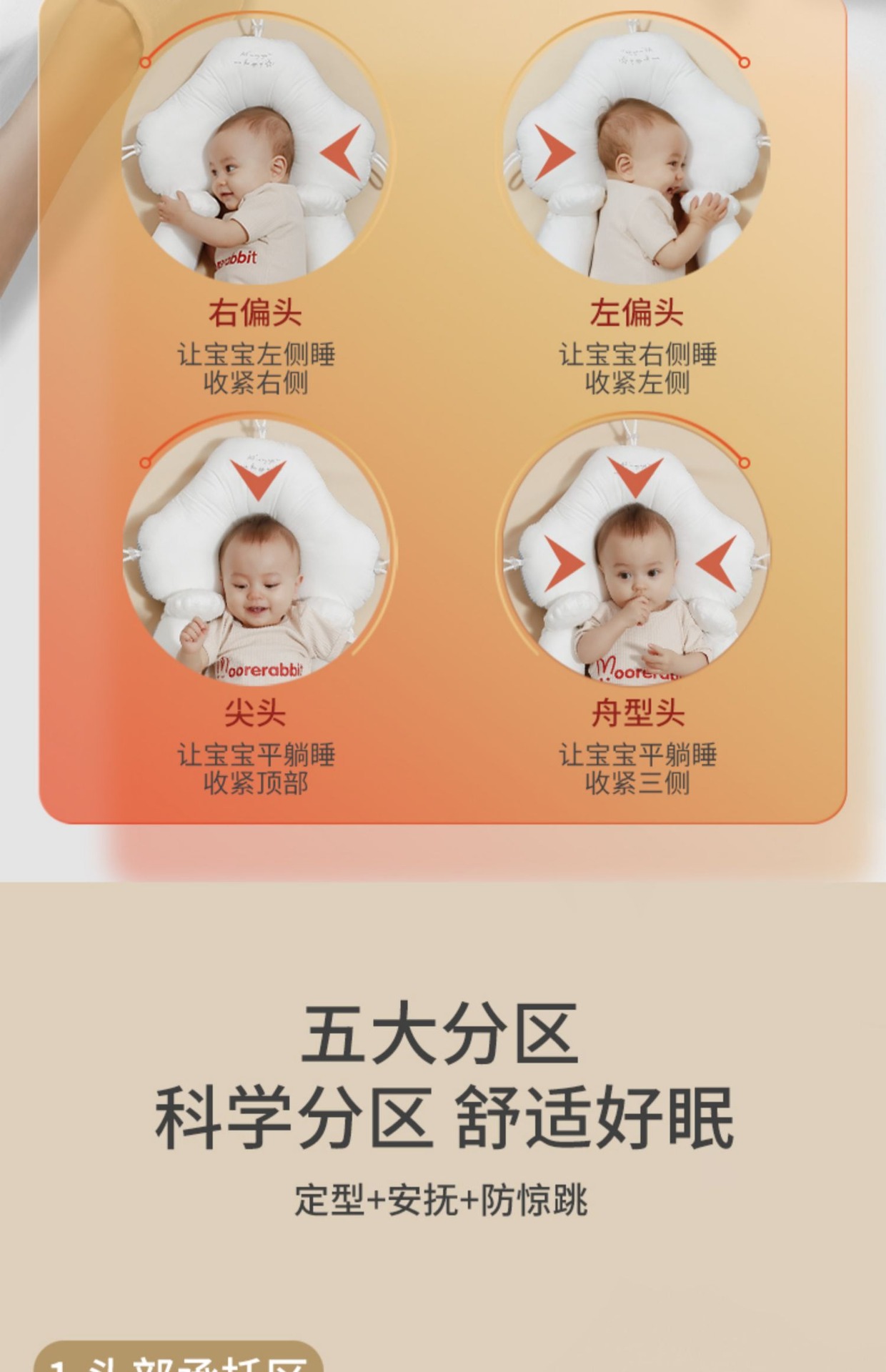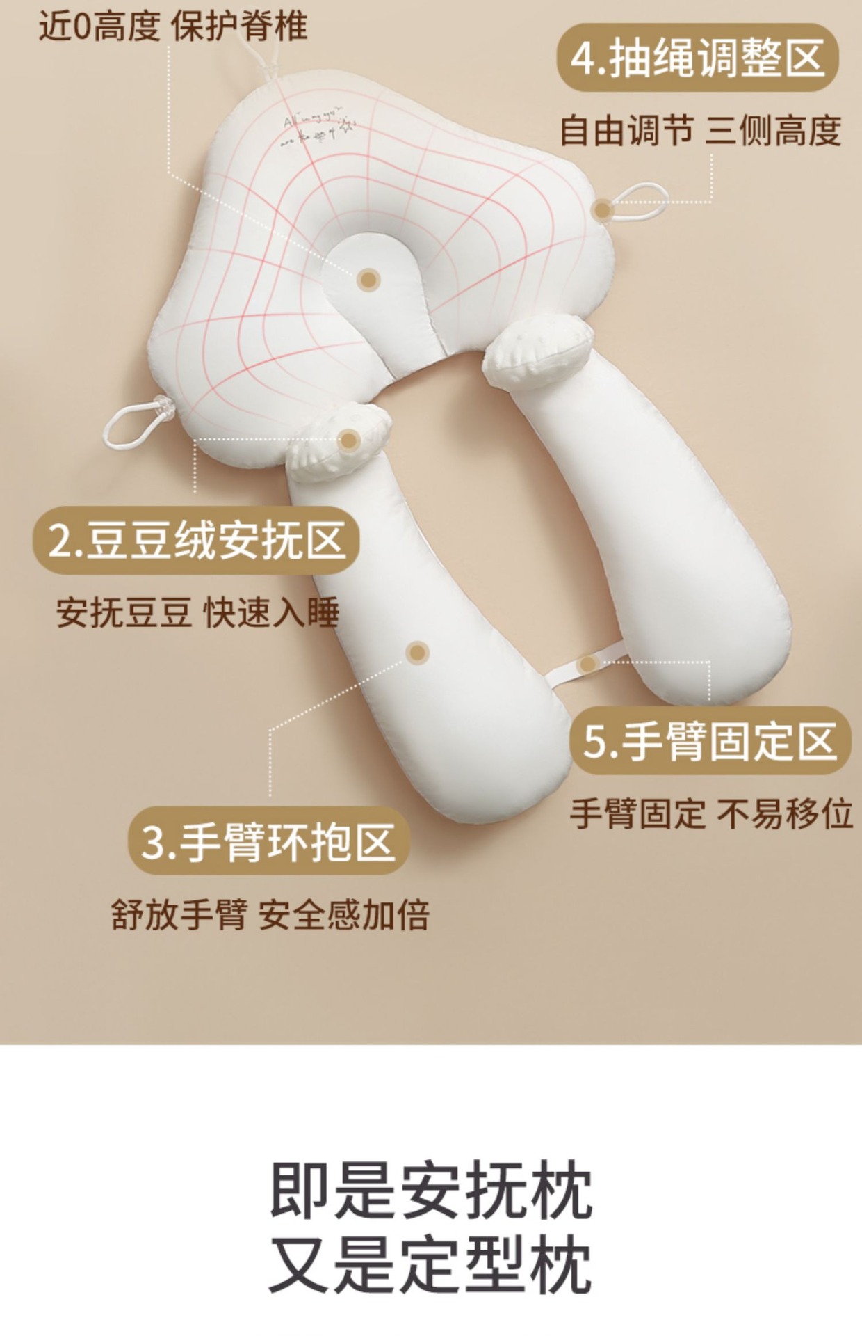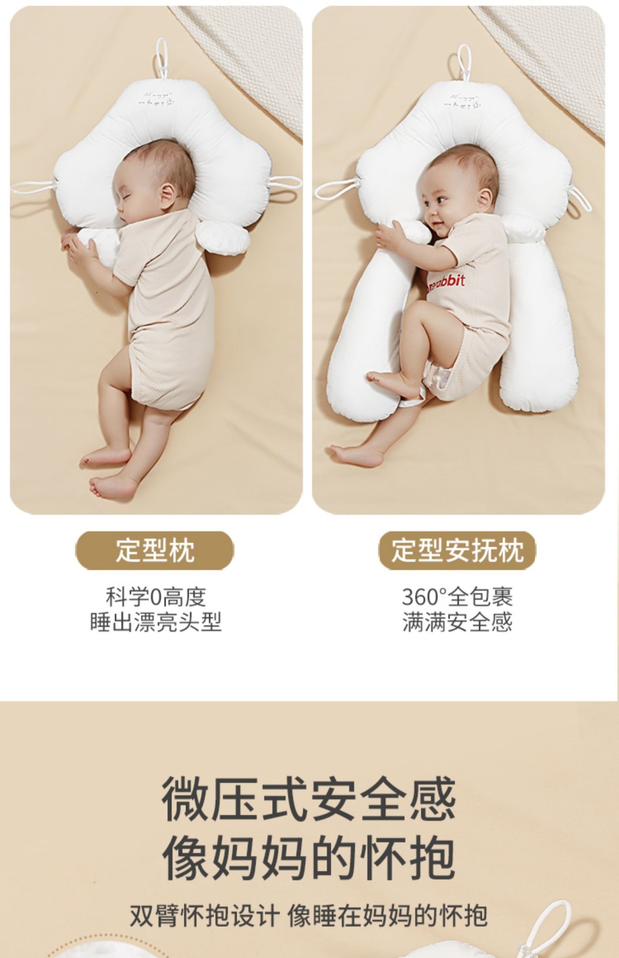 婴儿定型枕头纠正头型矫正防偏头新生夏透气宝宝0到6月-安抚睡觉